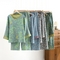 (总)洛兰沙家居馆 2025新款云涧全棉女士家居服七分袖九分裤套装夏季薄款睡衣宽松休闲简约风,云涧粉色,云涧绿色,组合图仅供参考不可下单