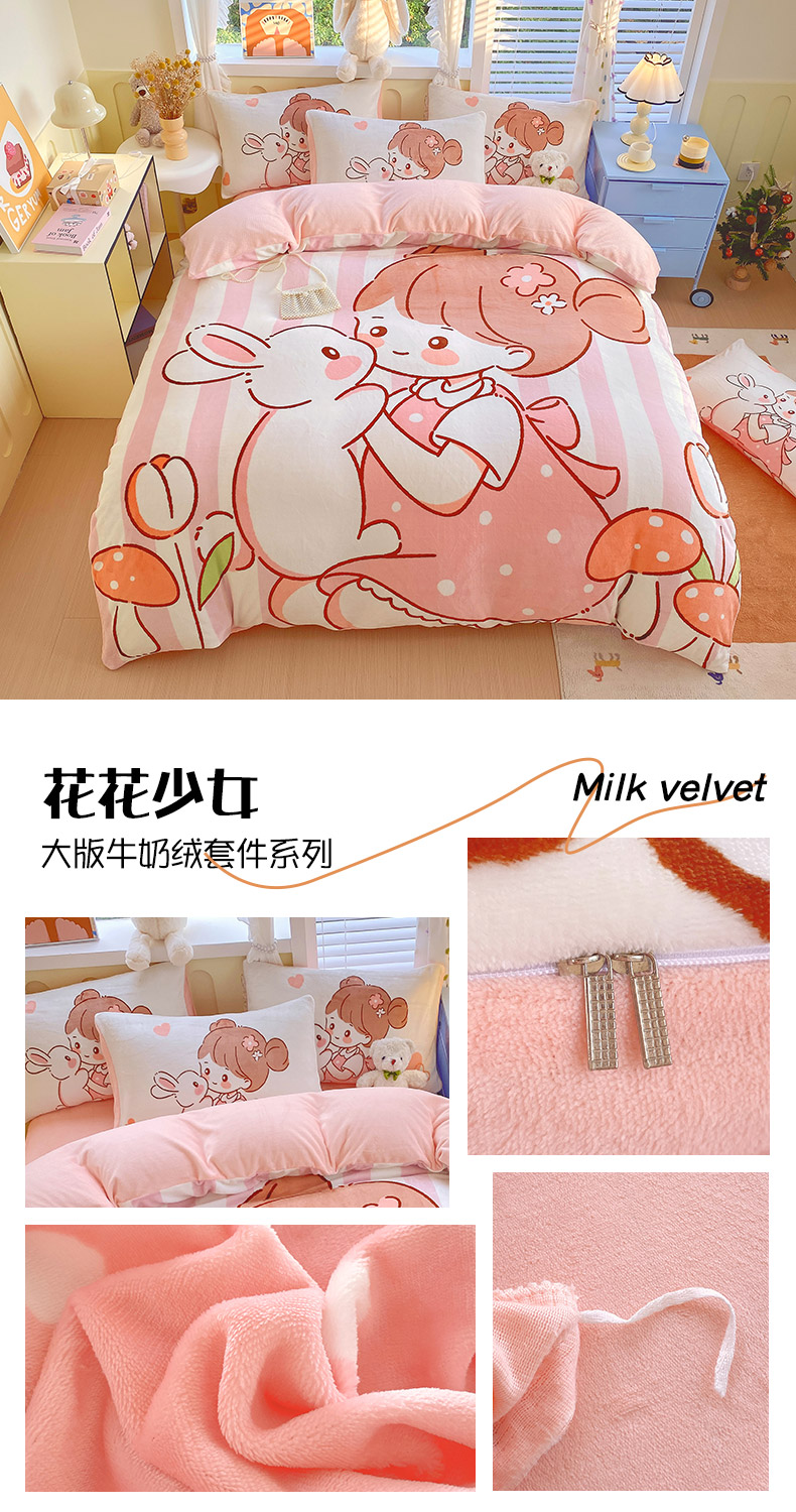 商品名称:莱米家纺 2024新款大版牛奶绒卡通四件套 花花少女