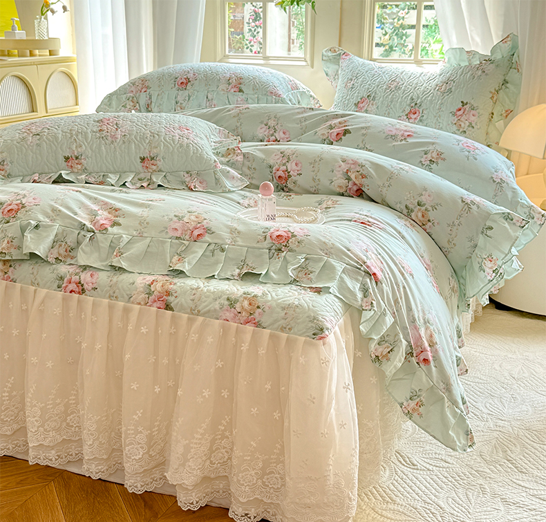 当前位置: 91家纺网 > 商品网购 > 床品套件 > 四件套 > 全棉普通四件套 > 花香四季家纺 2024新款全棉夹棉绗缝床裙款四件套纯棉印花法式套件蕾丝公主风 绿野仙踪