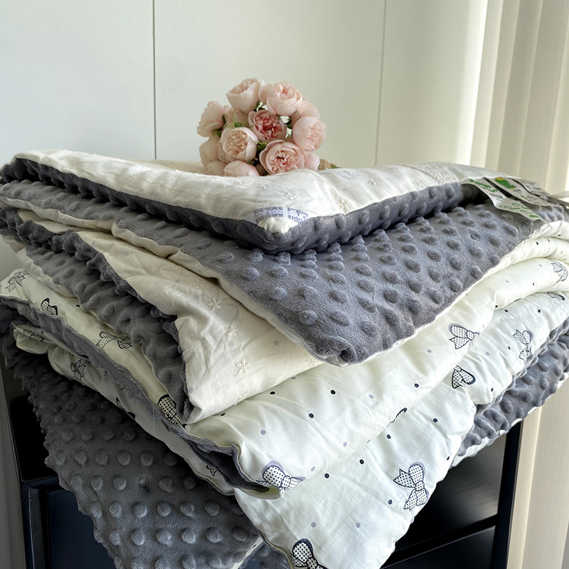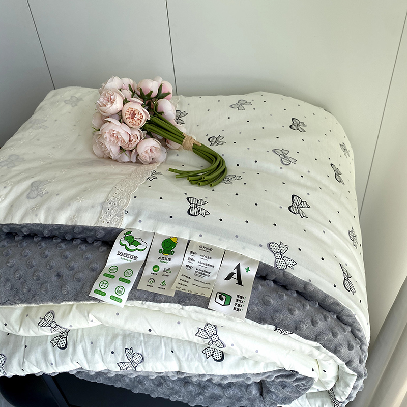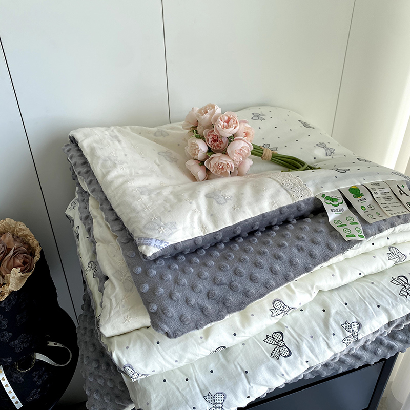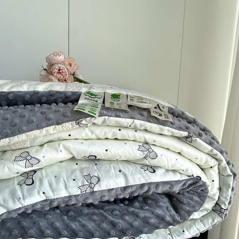 商品名称:2025新款秋冬季棉加豆豆绒法式花边款豆豆被被芯 灰色蝴蝶结
