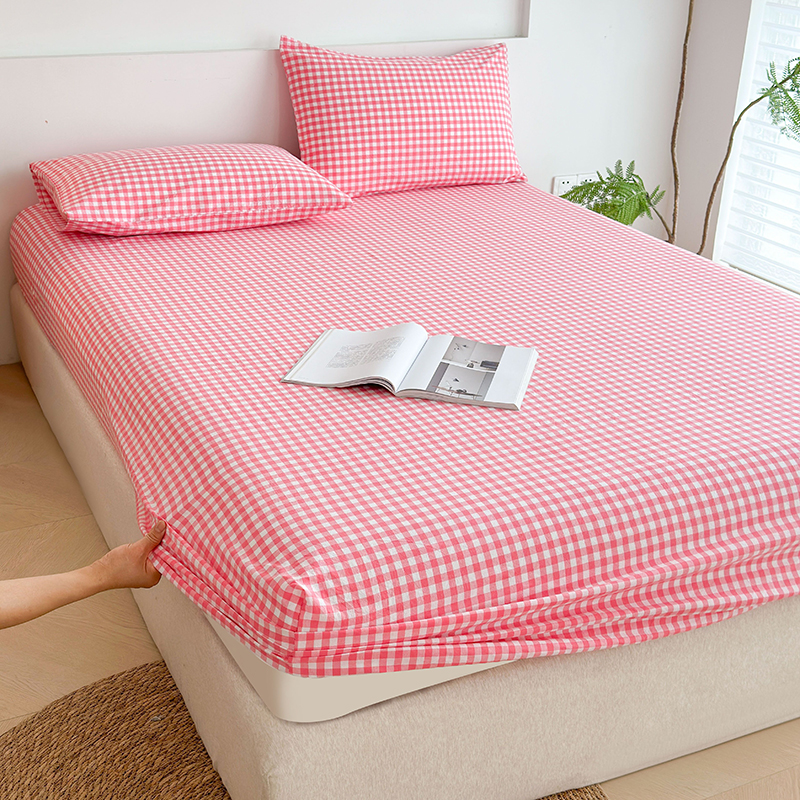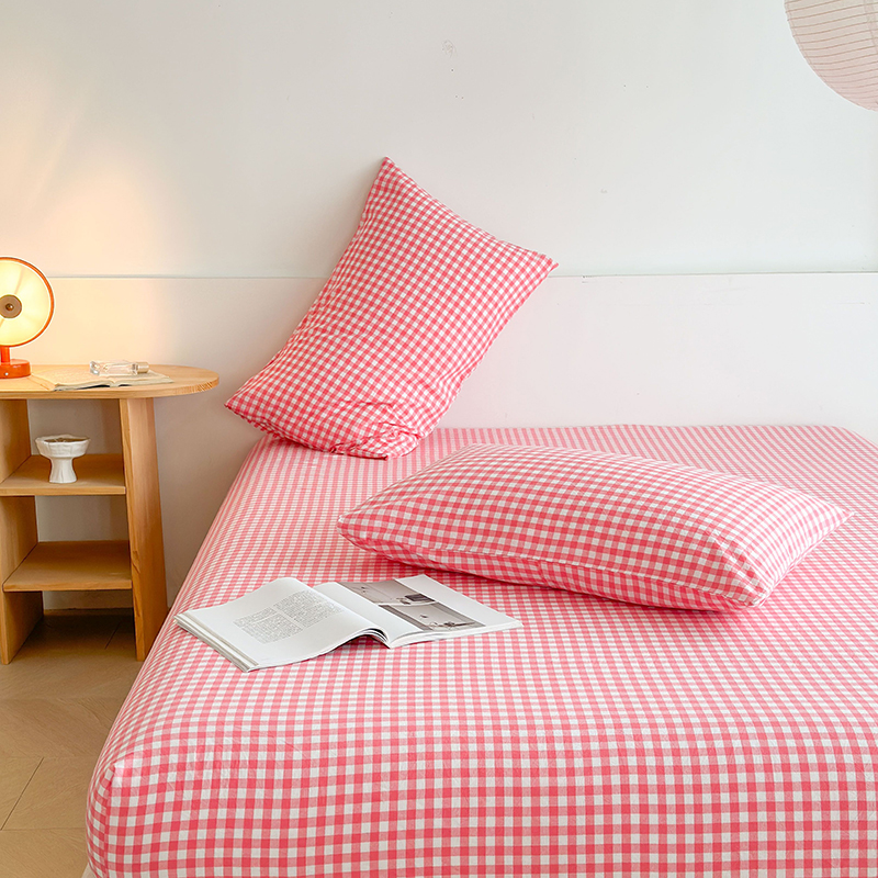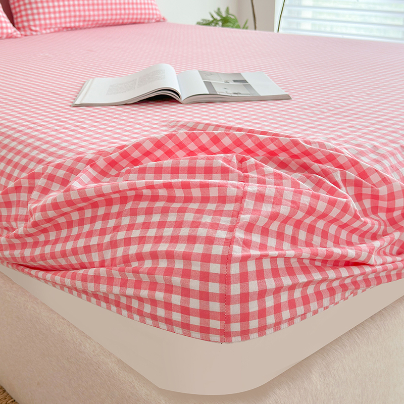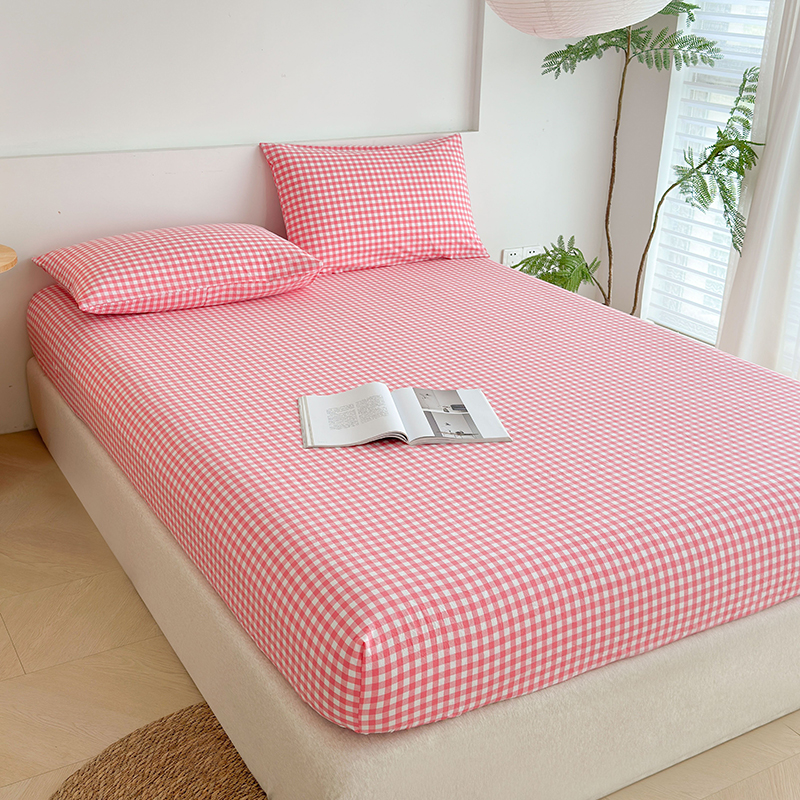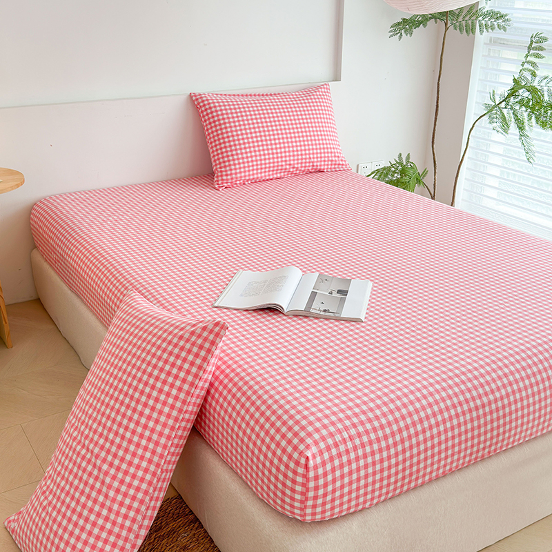 慕莎家纺 2024新款亲肤水洗色织床笠三件套 粉白格