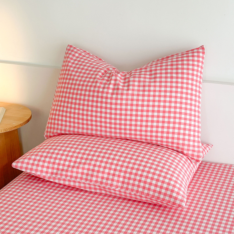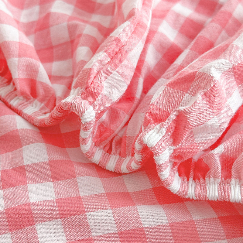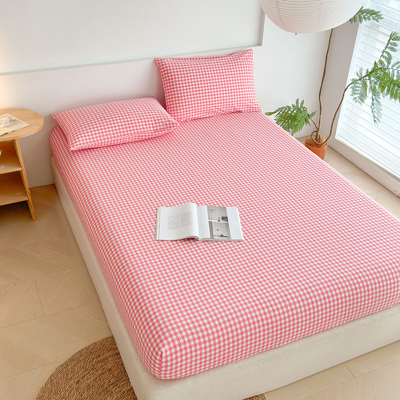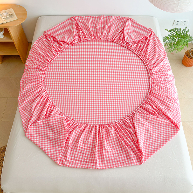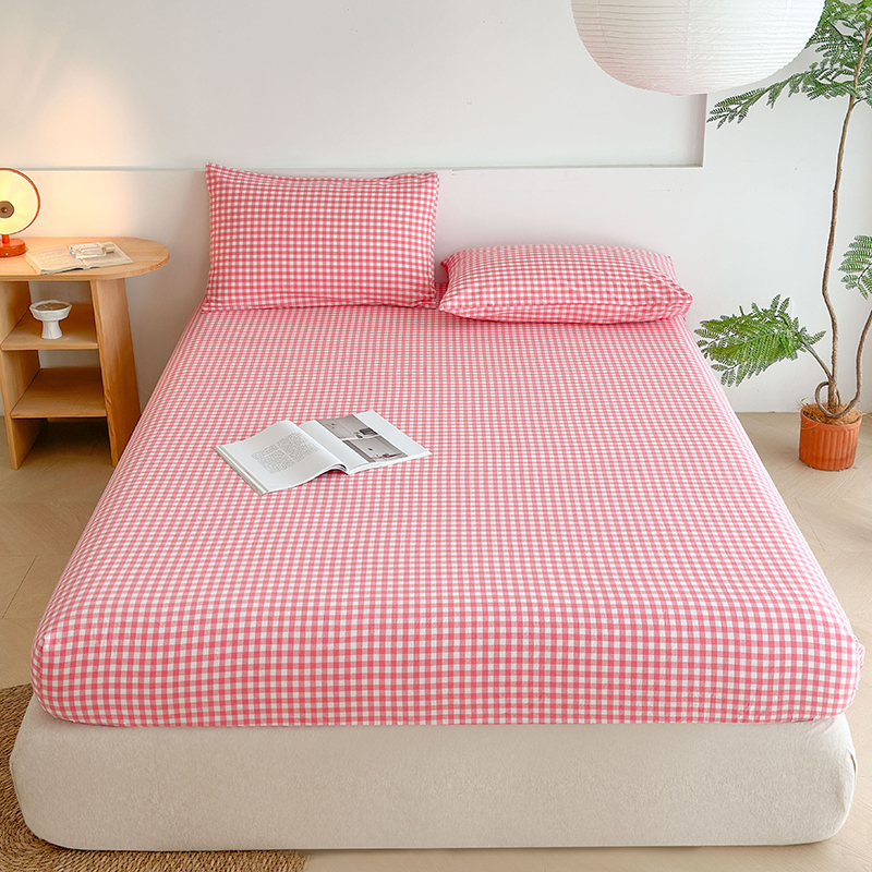 慕莎家纺 2024新款亲肤水洗色织床笠三件套 粉白格