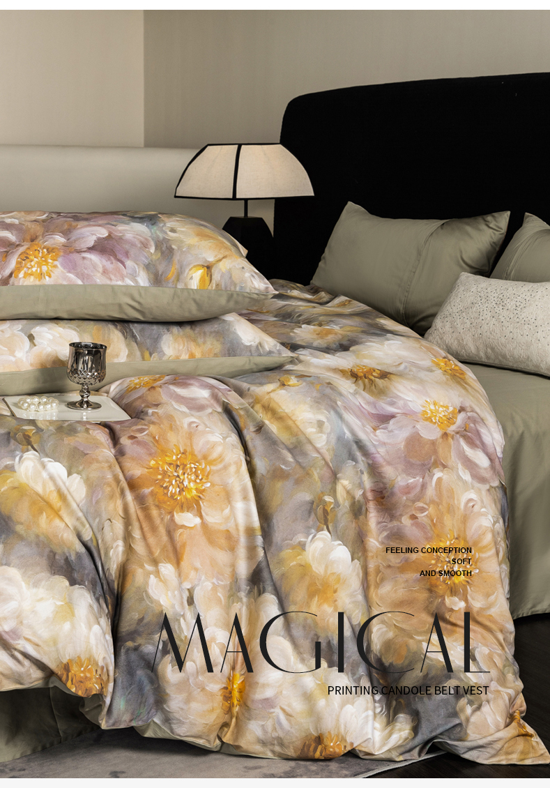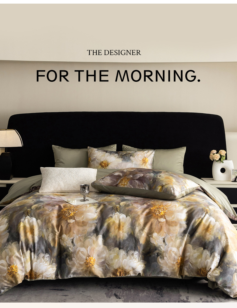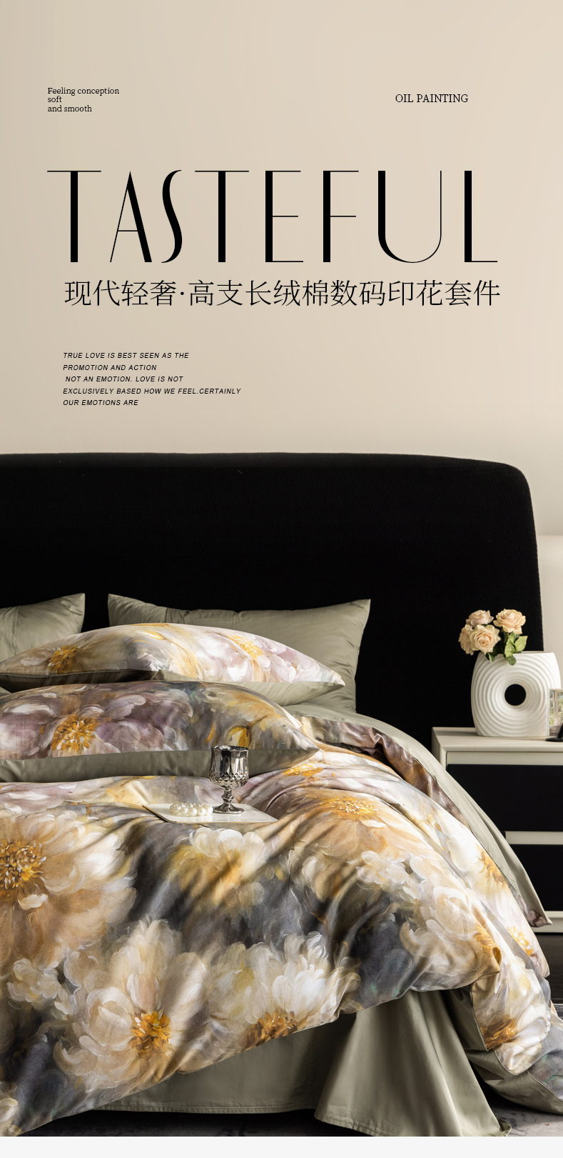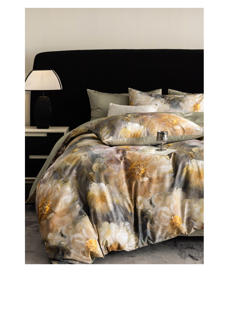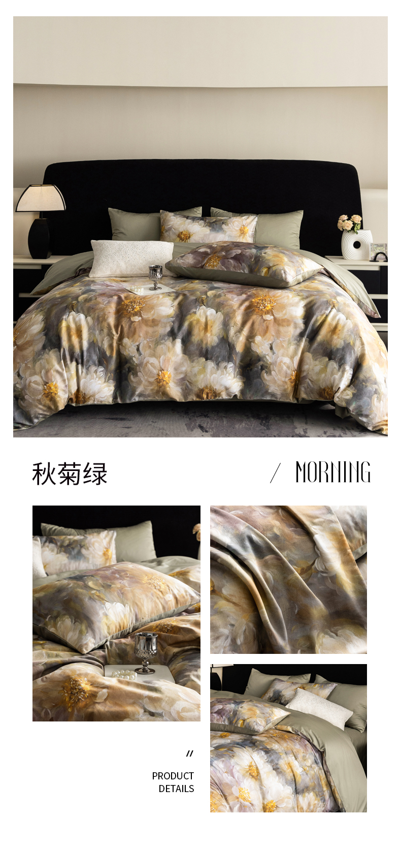 立奥被业 2024新款60*60数码印花四件套全棉四件套 秋菊绿