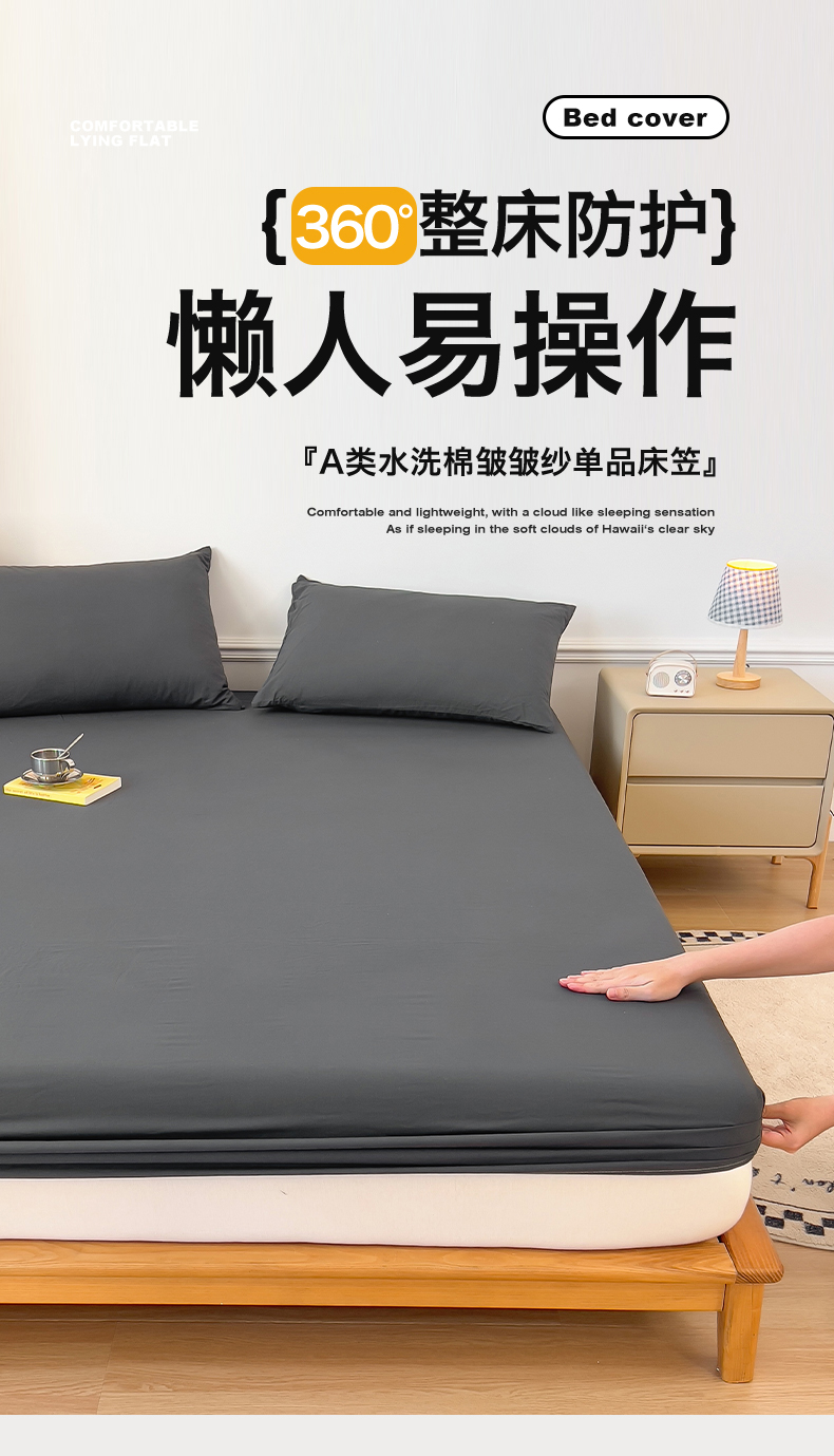 • 91家纺网 家纺一手货源 找家纺 多品 2024新款水洗棉皱皱纱单品床笠 深灰