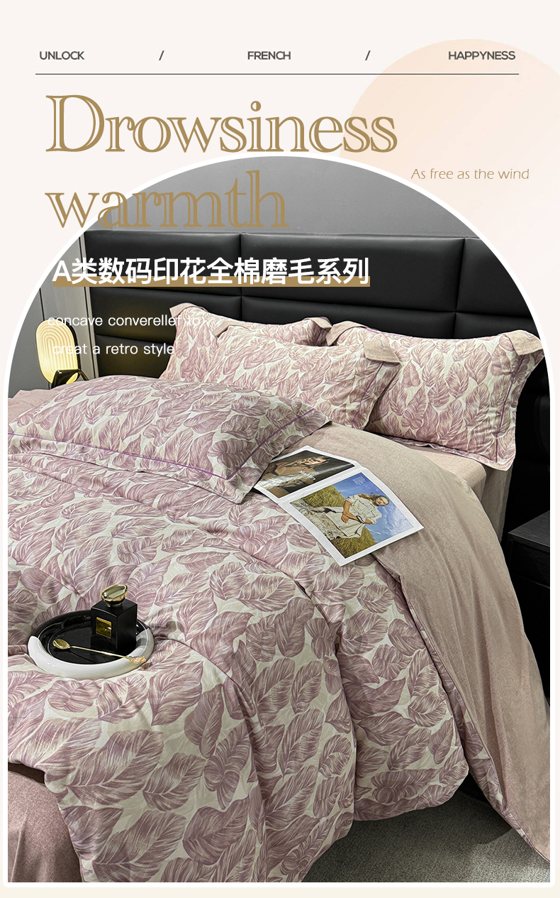 当前位置: 91家纺网 > 商品网购 > 床品套件 > 四件套 > 全棉普通四件套 > 2024新款A类全棉磨毛数码印花系列四件套 如伊咖