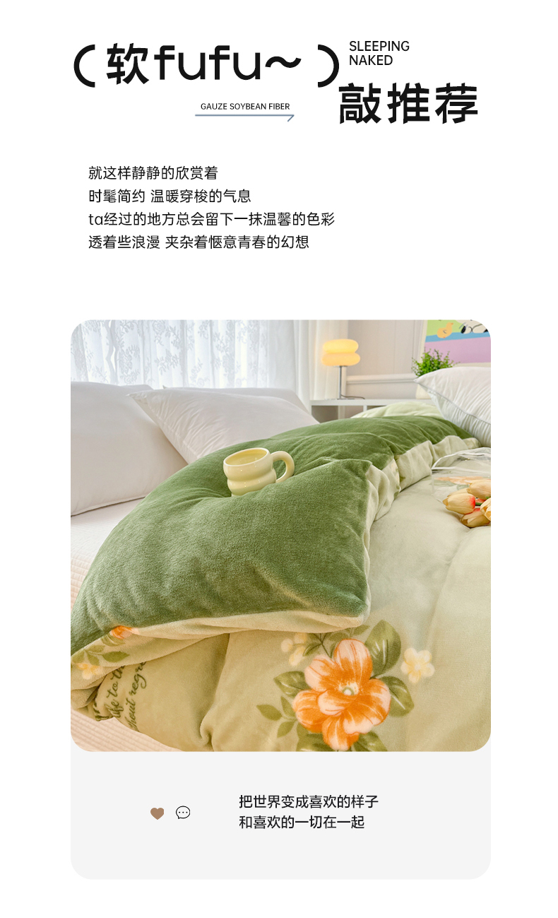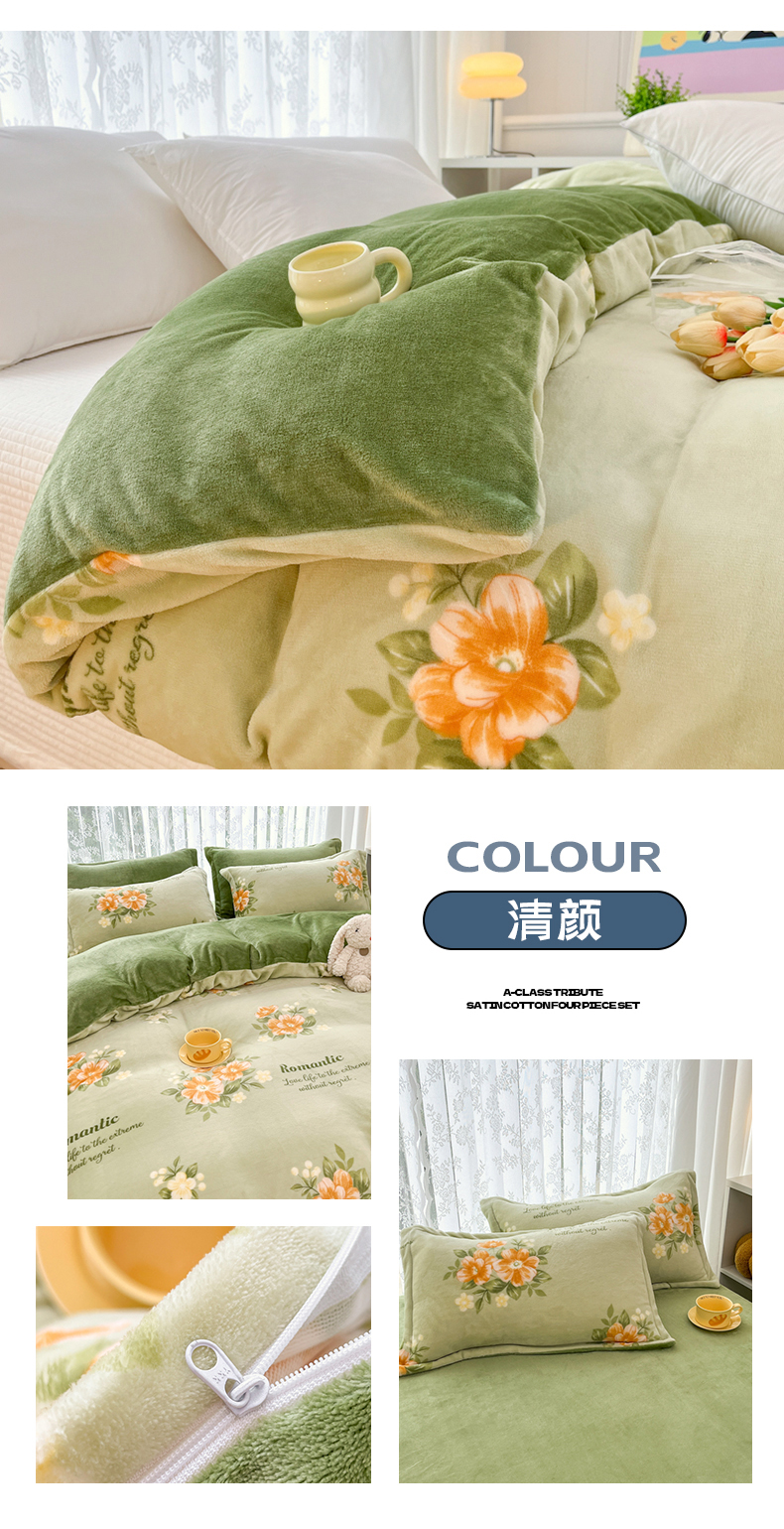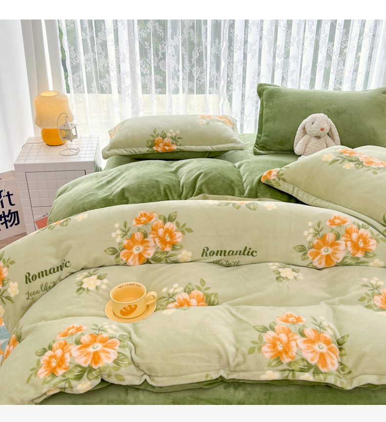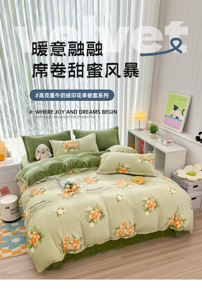 青螺家纺 2024加厚高克重保暖爆款小清新牛奶绒印花双面绒单被套 清颜