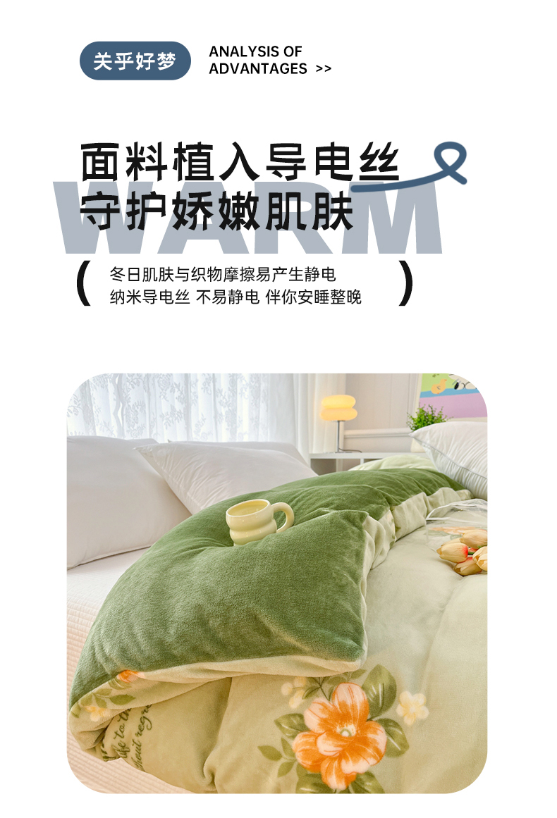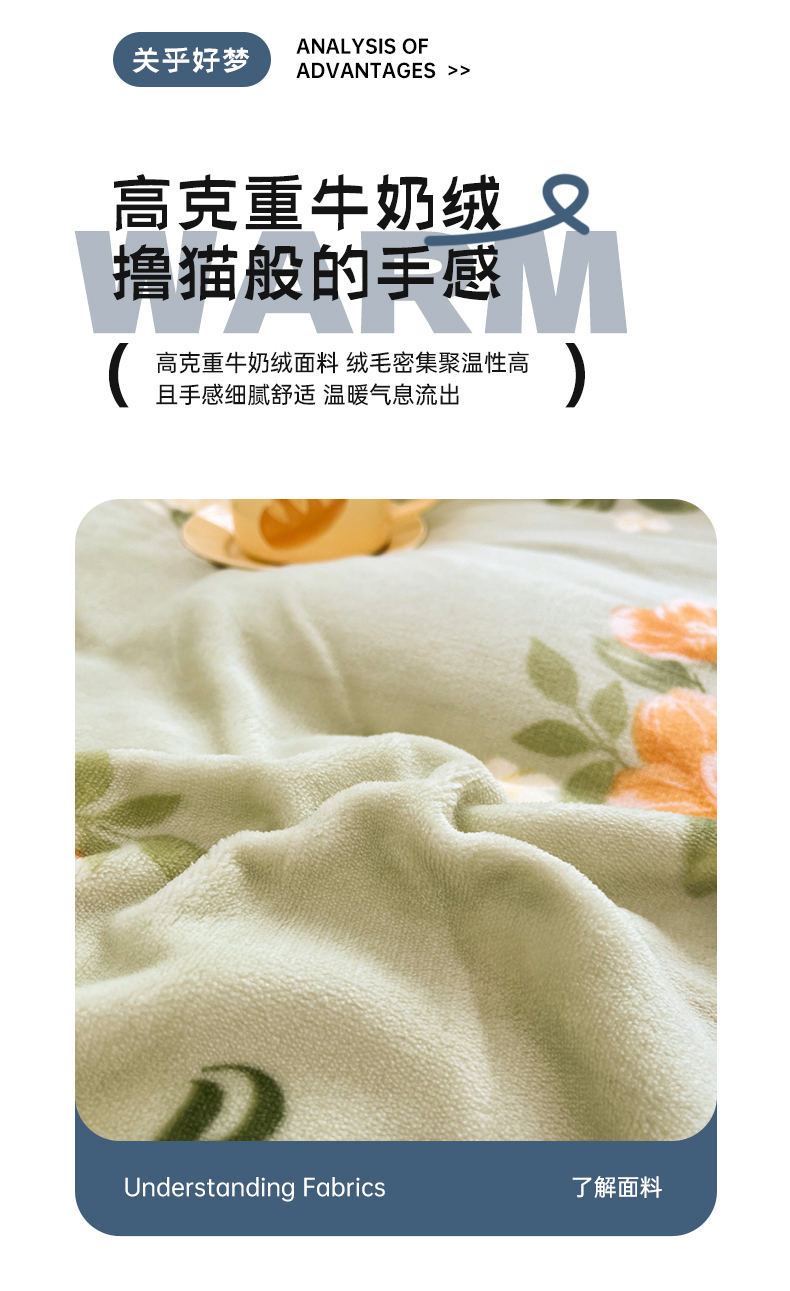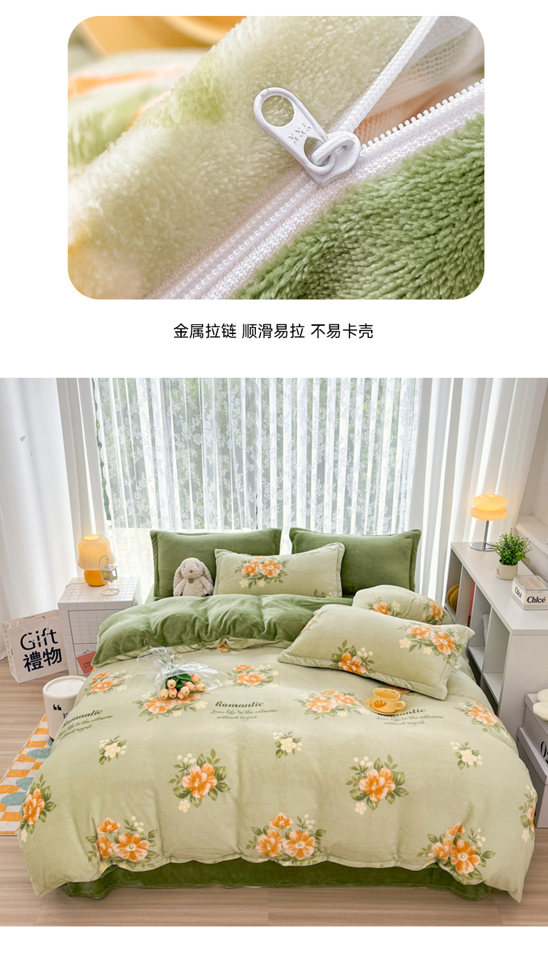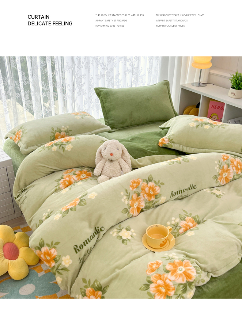 青螺家纺 2024加厚高克重保暖爆款小清新牛奶绒印花双面绒单被套 清颜