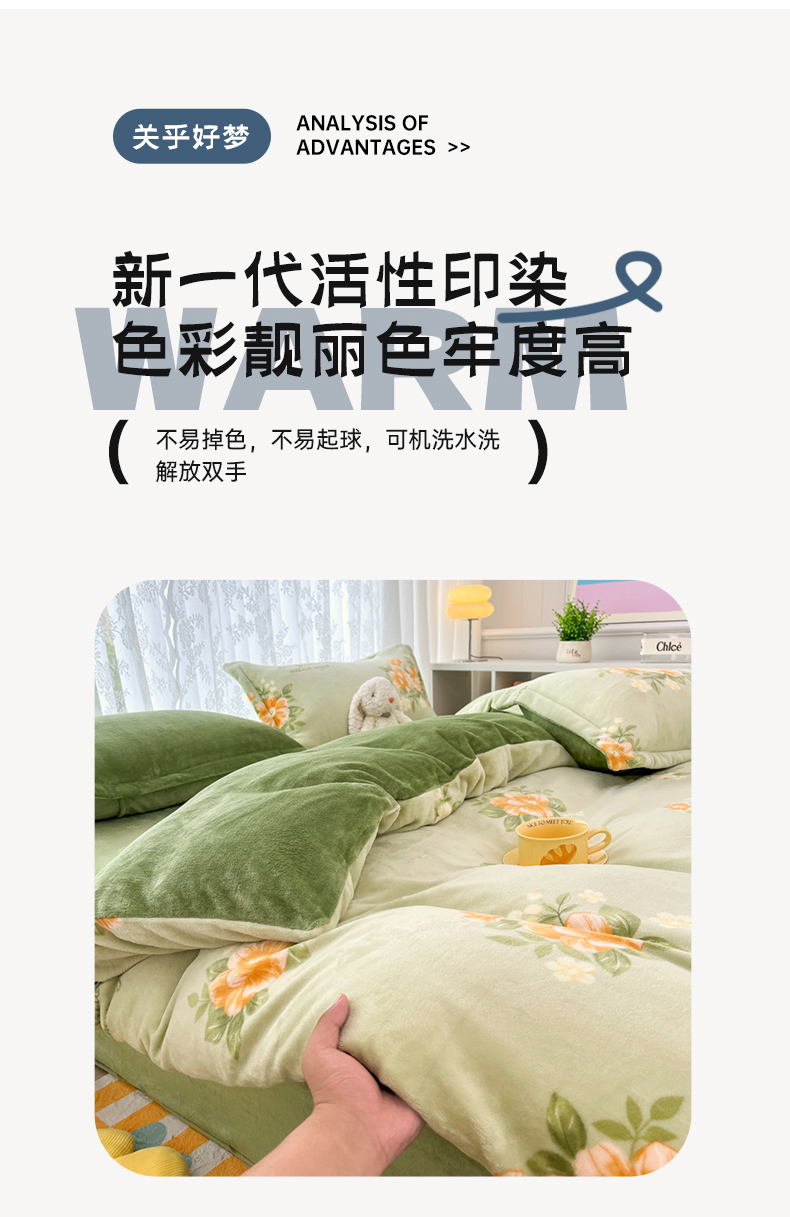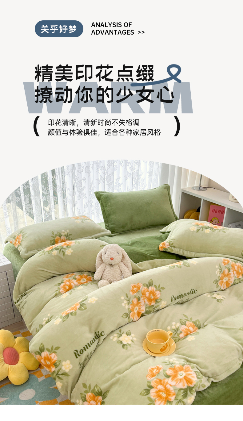 商品名称:青螺家纺 2024加厚高克重保暖爆款小清新牛奶绒印花双面绒单被套 清颜