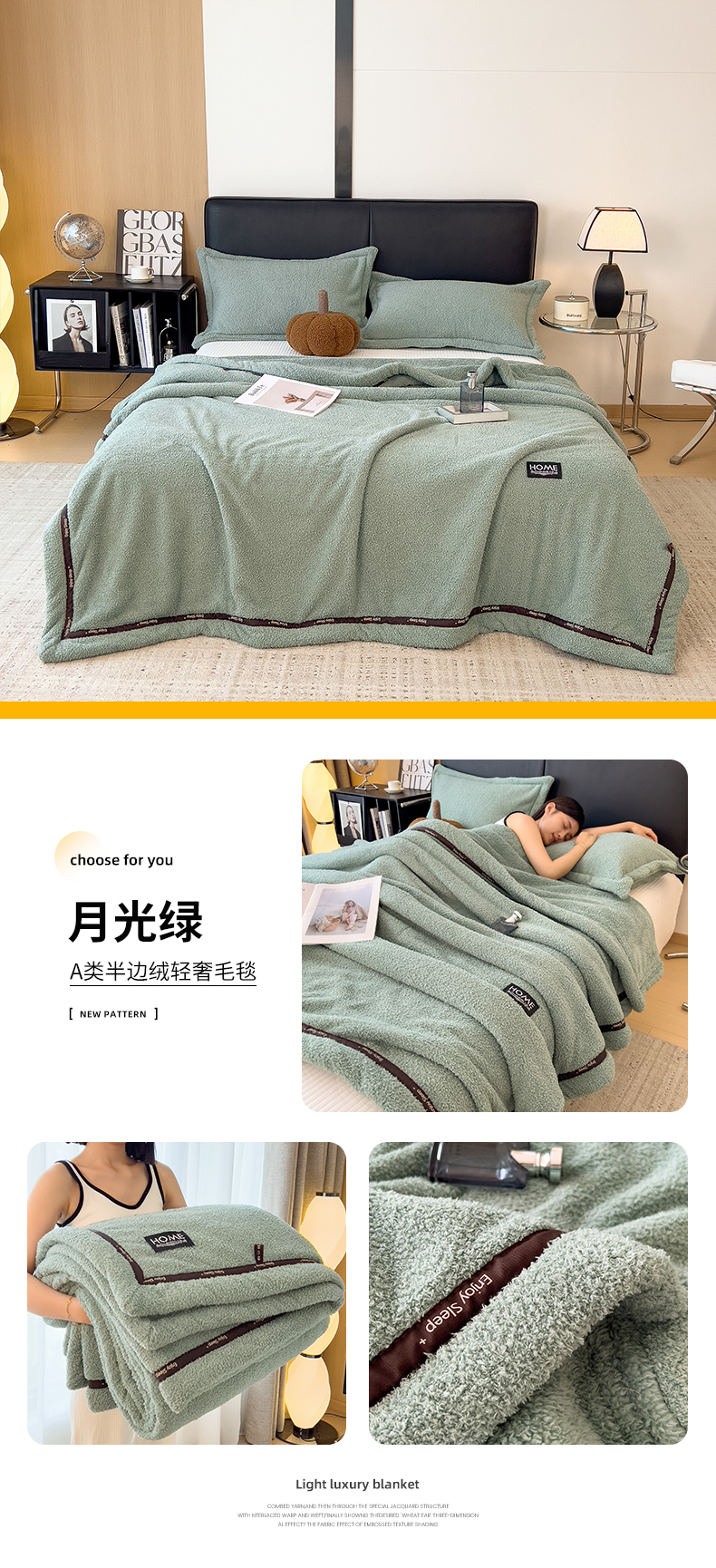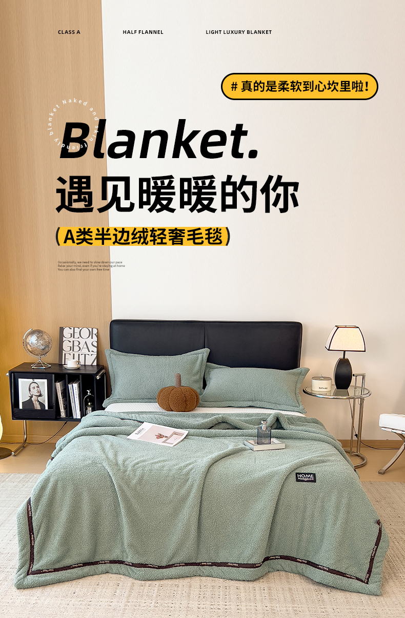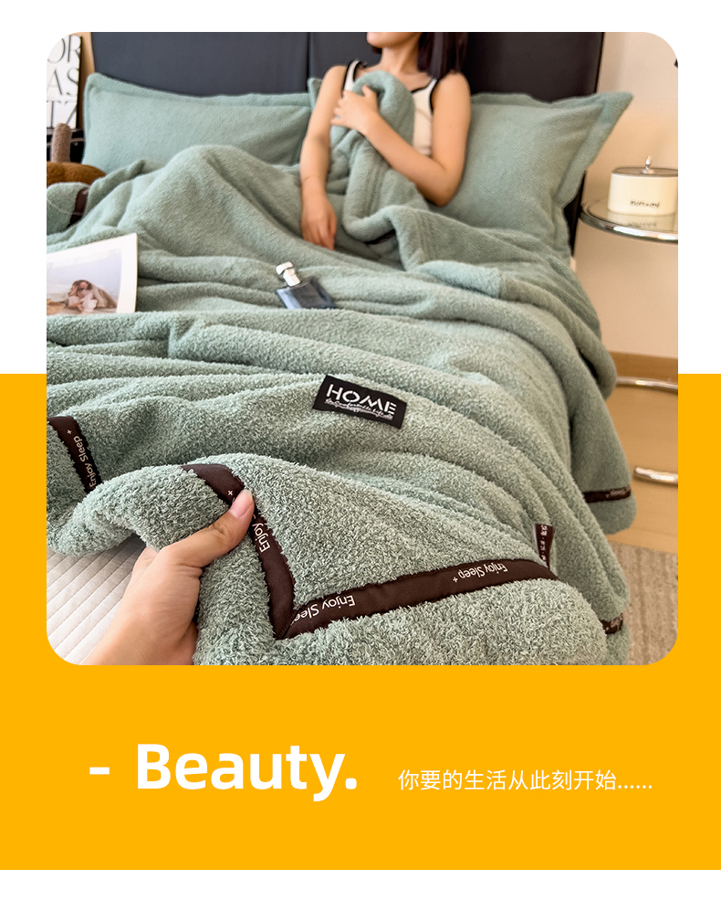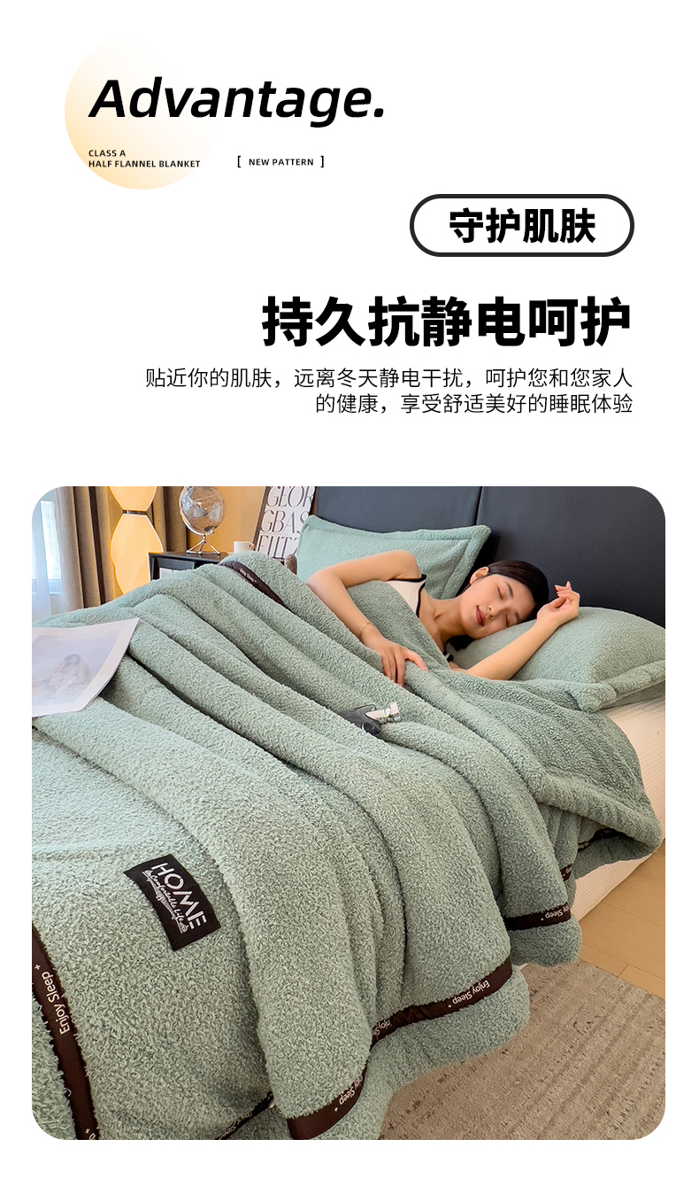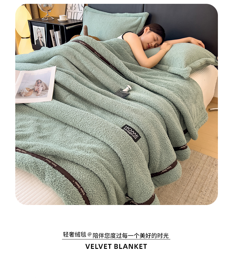 当前位置: 91家纺网 > 商品网购 > 毛毯休闲毯绒毯 > 毛毯 > 慕木家纺 2025新款纯色A类轻奢半边绒多功能毛毯直播爆款 月光绿