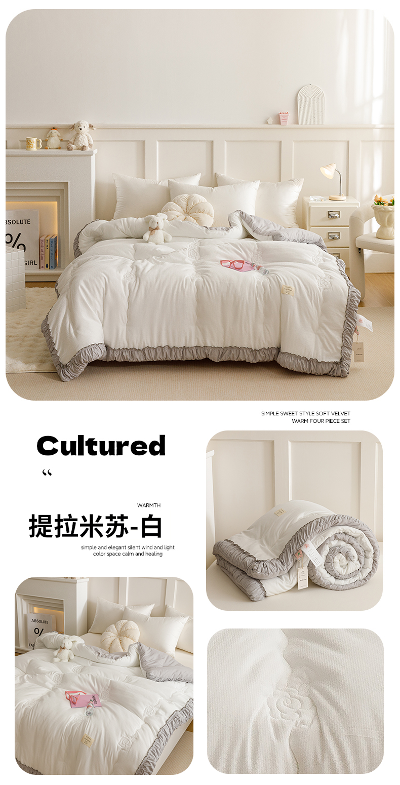 商品名称:有货 2024新款韩版提拉米苏一体被冬被春秋被被子被芯 提拉米苏-白