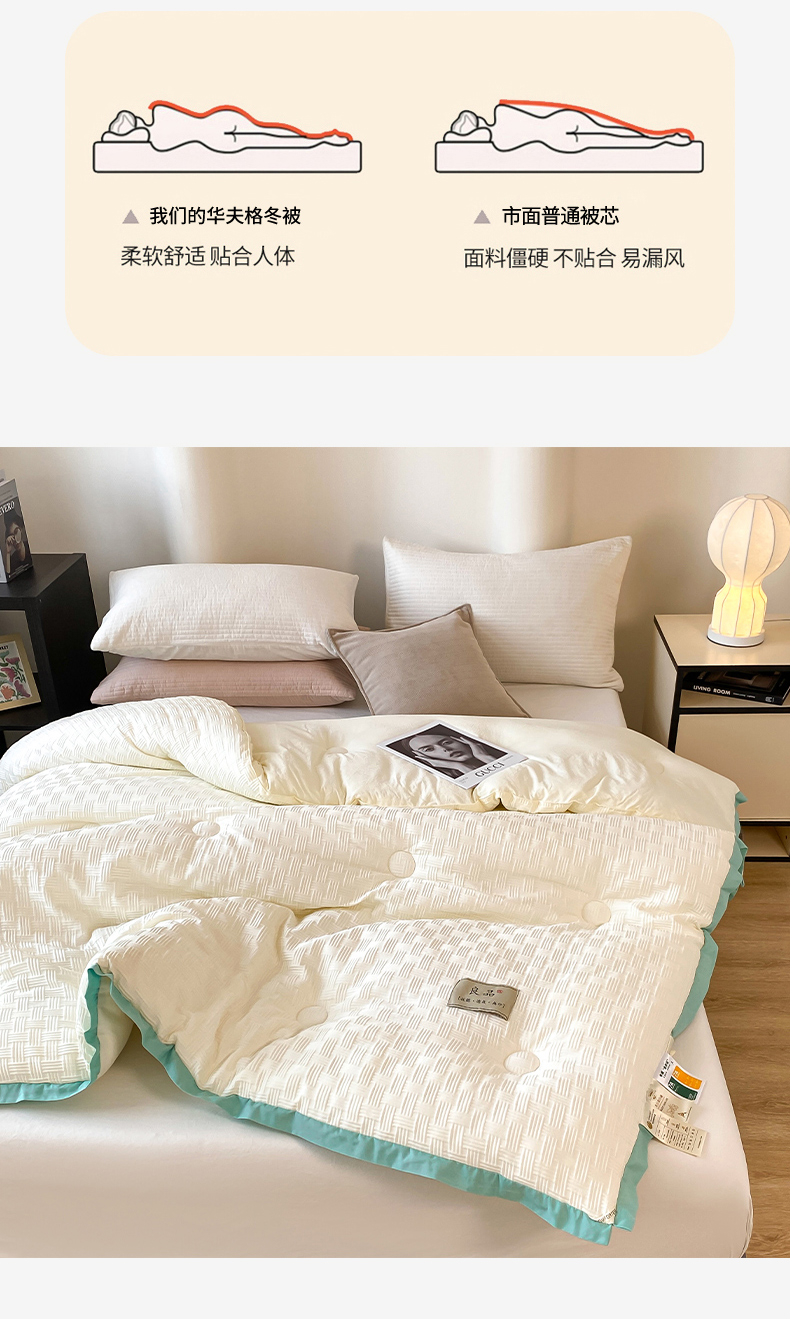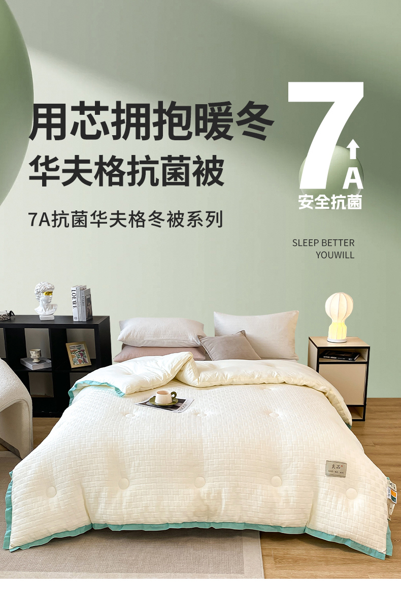 • 91家纺网 家纺一手货源 找家纺 欢乐季 2025新款 7A抗菌华夫格冬被四季被+被芯春秋保暖被子被芯 华夫格-白