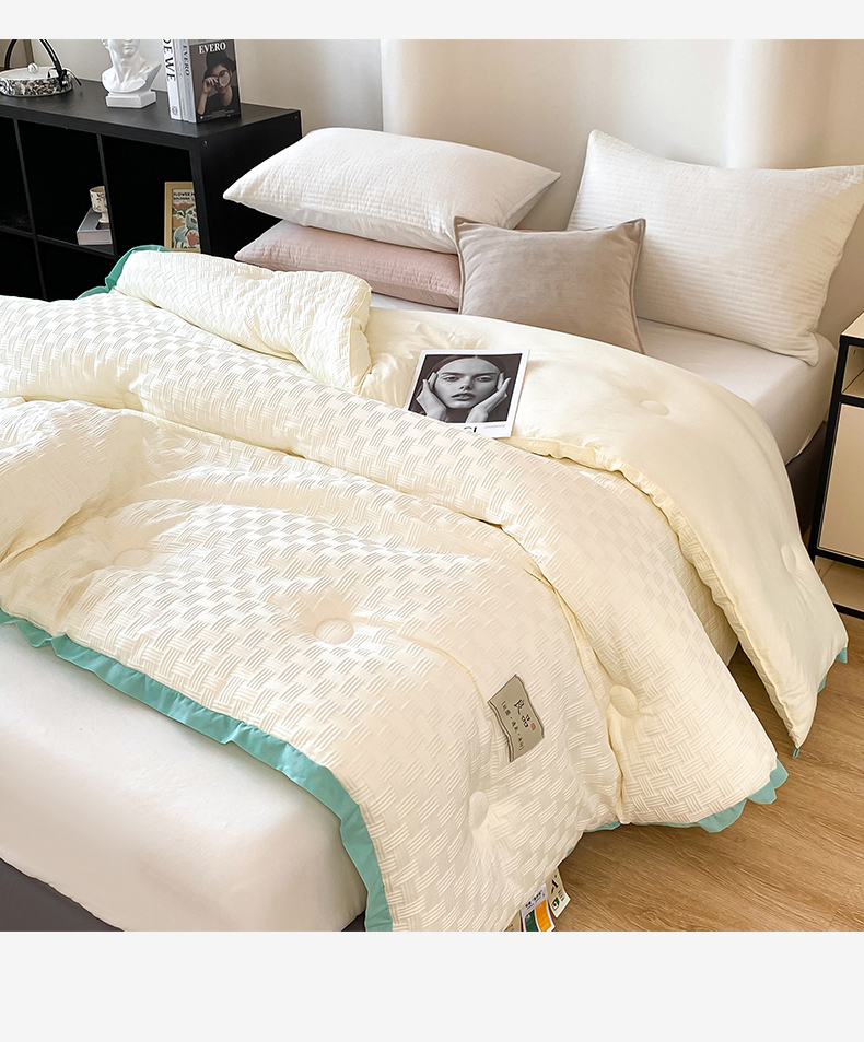 • 91家纺网 家纺一手货源 找家纺 (总)欢乐季2025新款7A抗菌A类提花皱皱纱大豆纤维被四季被+被芯,高级灰,海冰蓝,蜜桃粉,月光白,香草绿