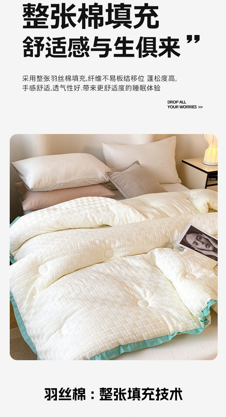 • 91家纺网 家纺一手货源 找家纺 (总)欢乐季 2025新款贡缎浮雕提花棉花被 被子被芯,豆沙色,奶油白,香槟色