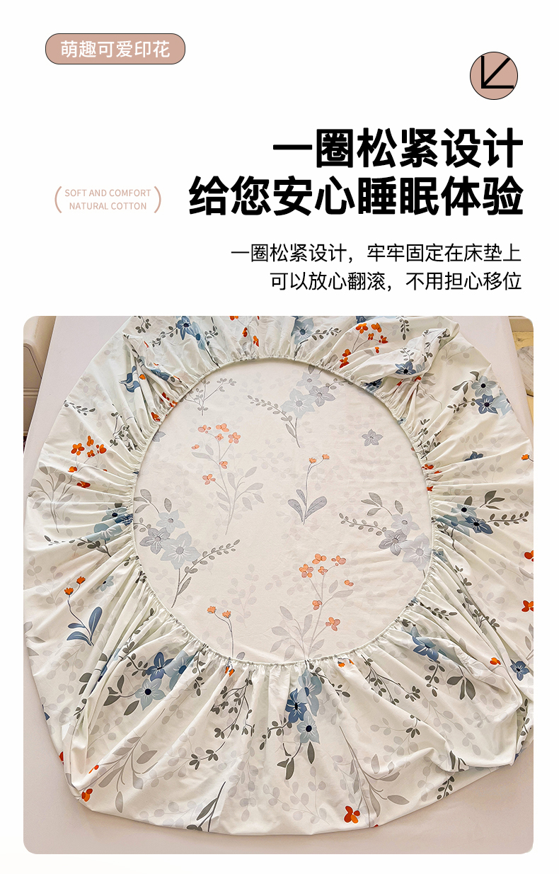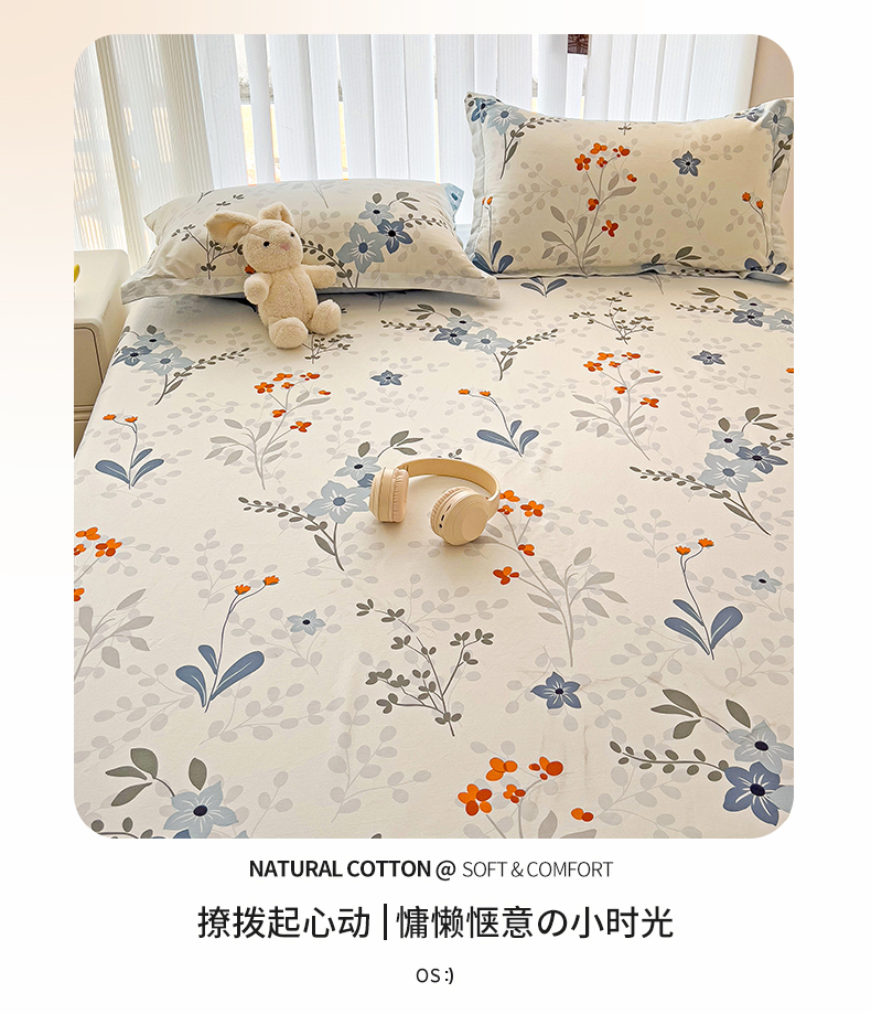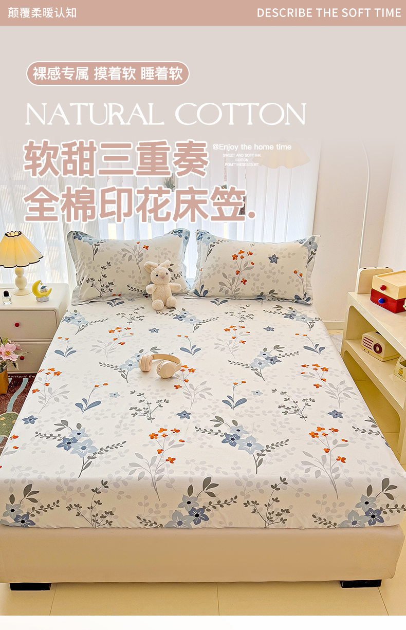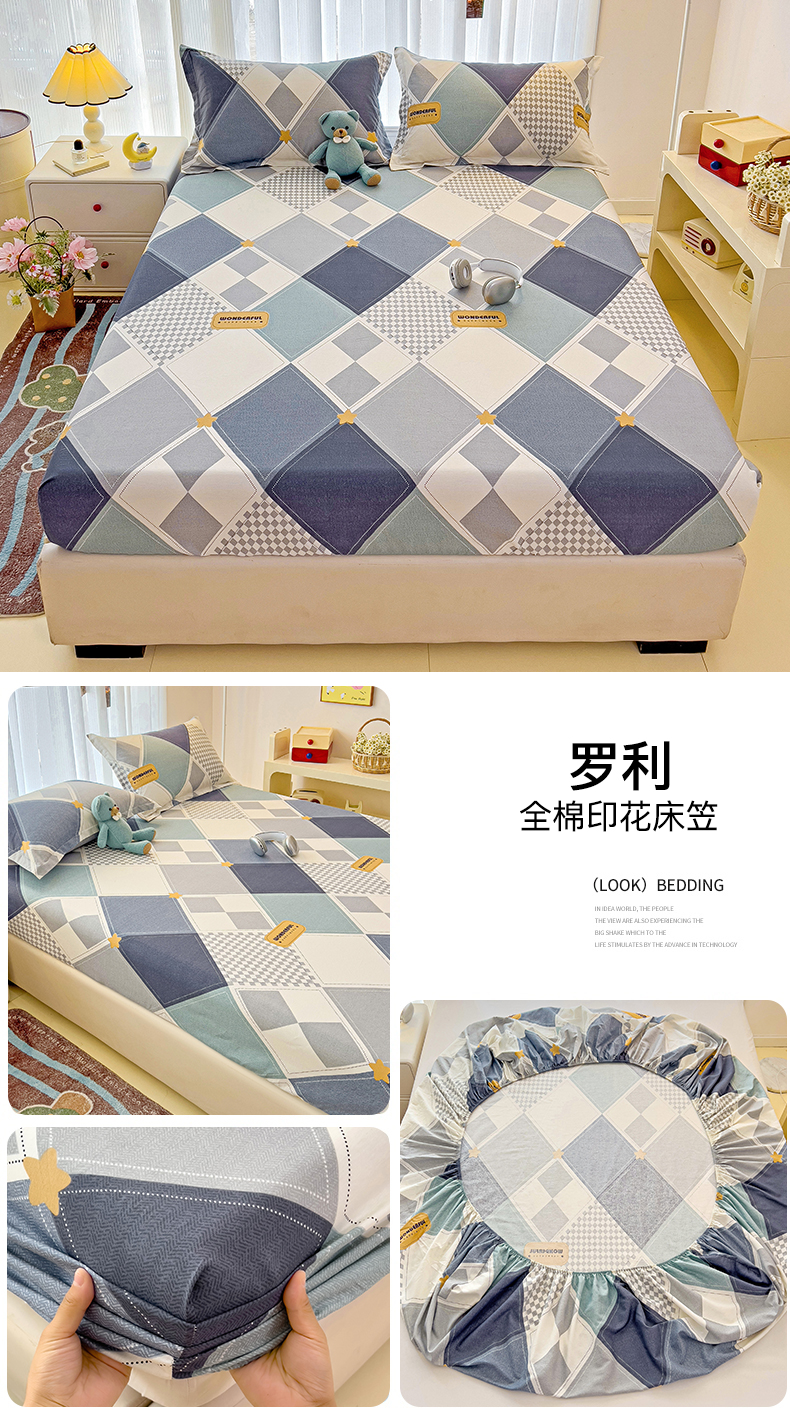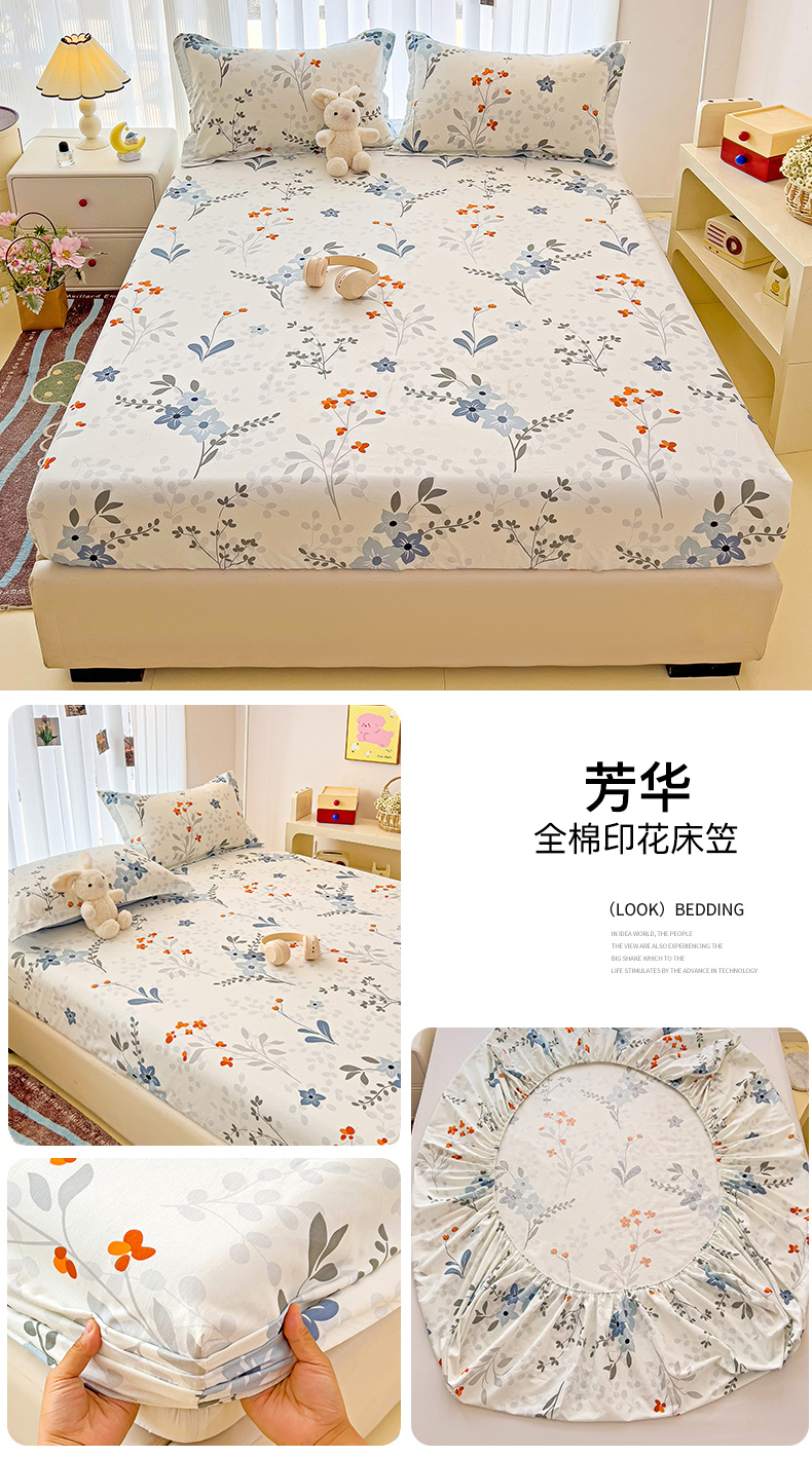 恩泽家纺 2024新款亲肤柔软全棉印花单品及套件--床笠 芳华