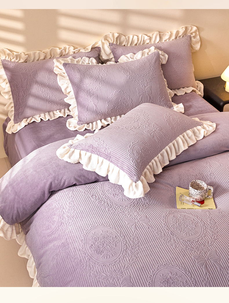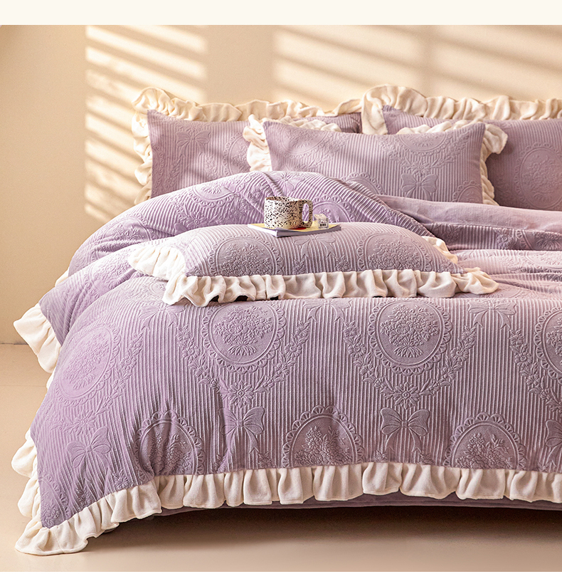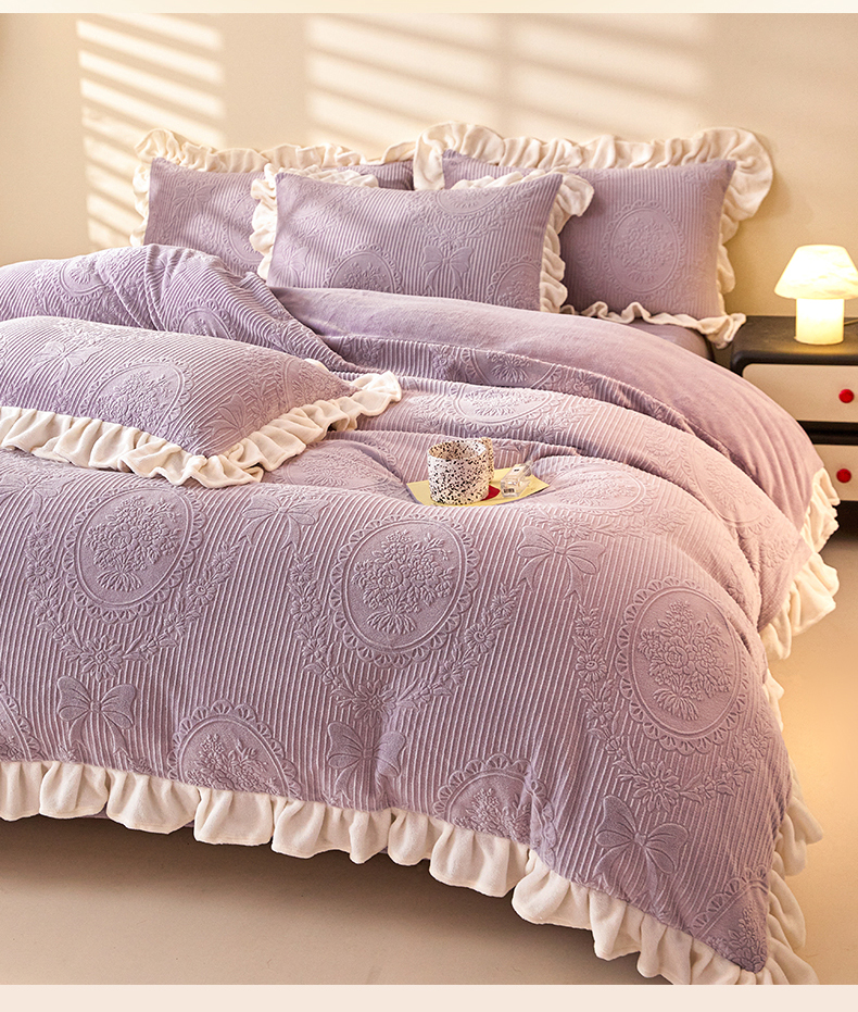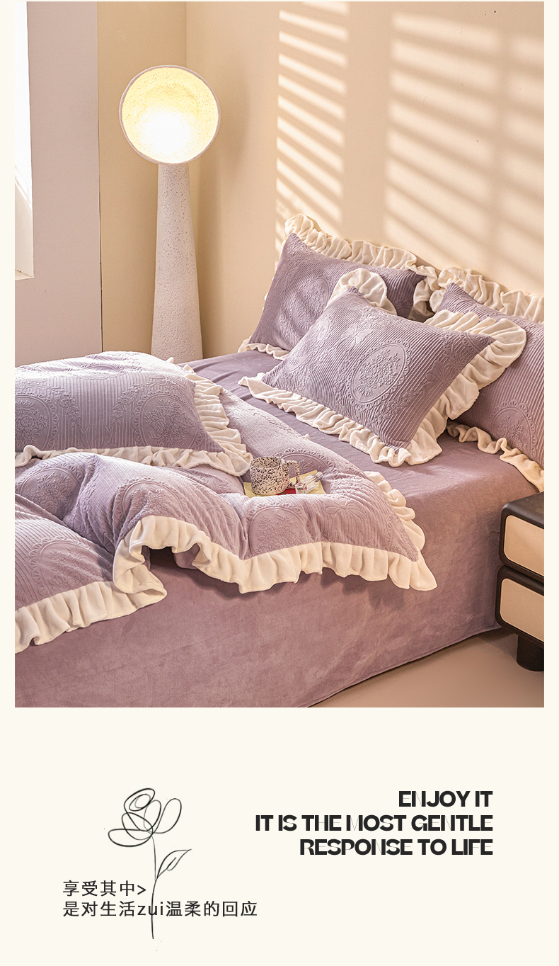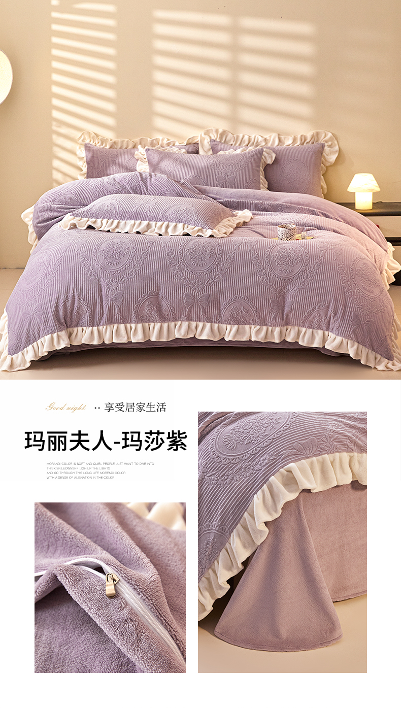 商品名称:2024新保暖-秋冬A类韩版婴肤绒提花四件套-玛丽夫人系列 玛丽夫人-玛莎紫