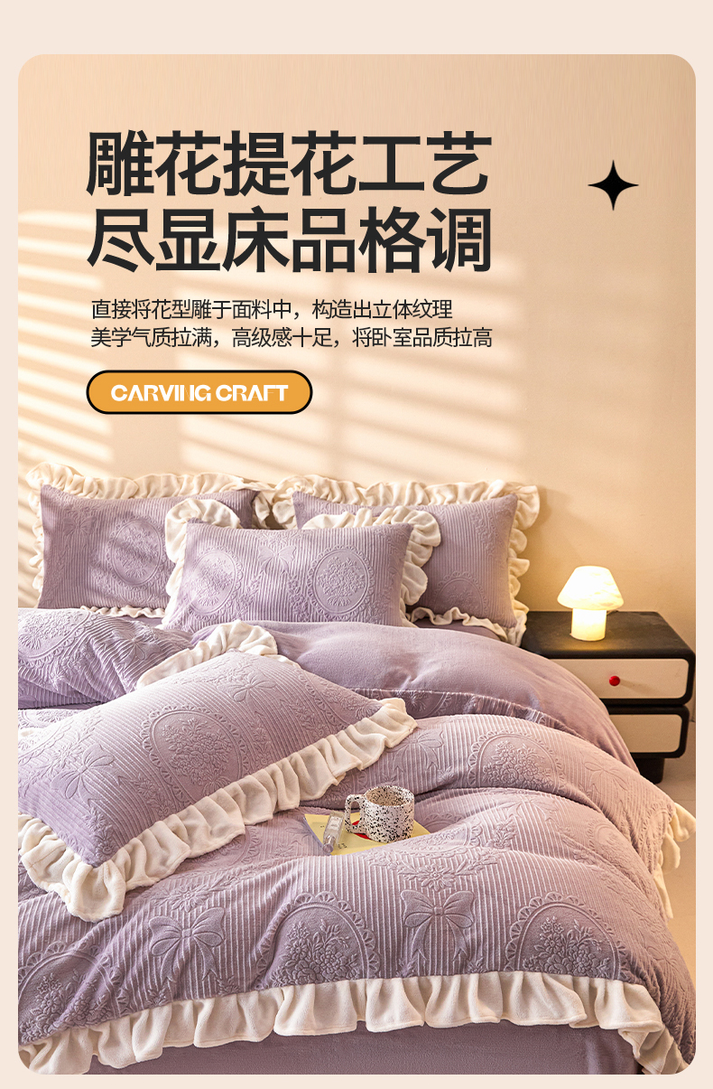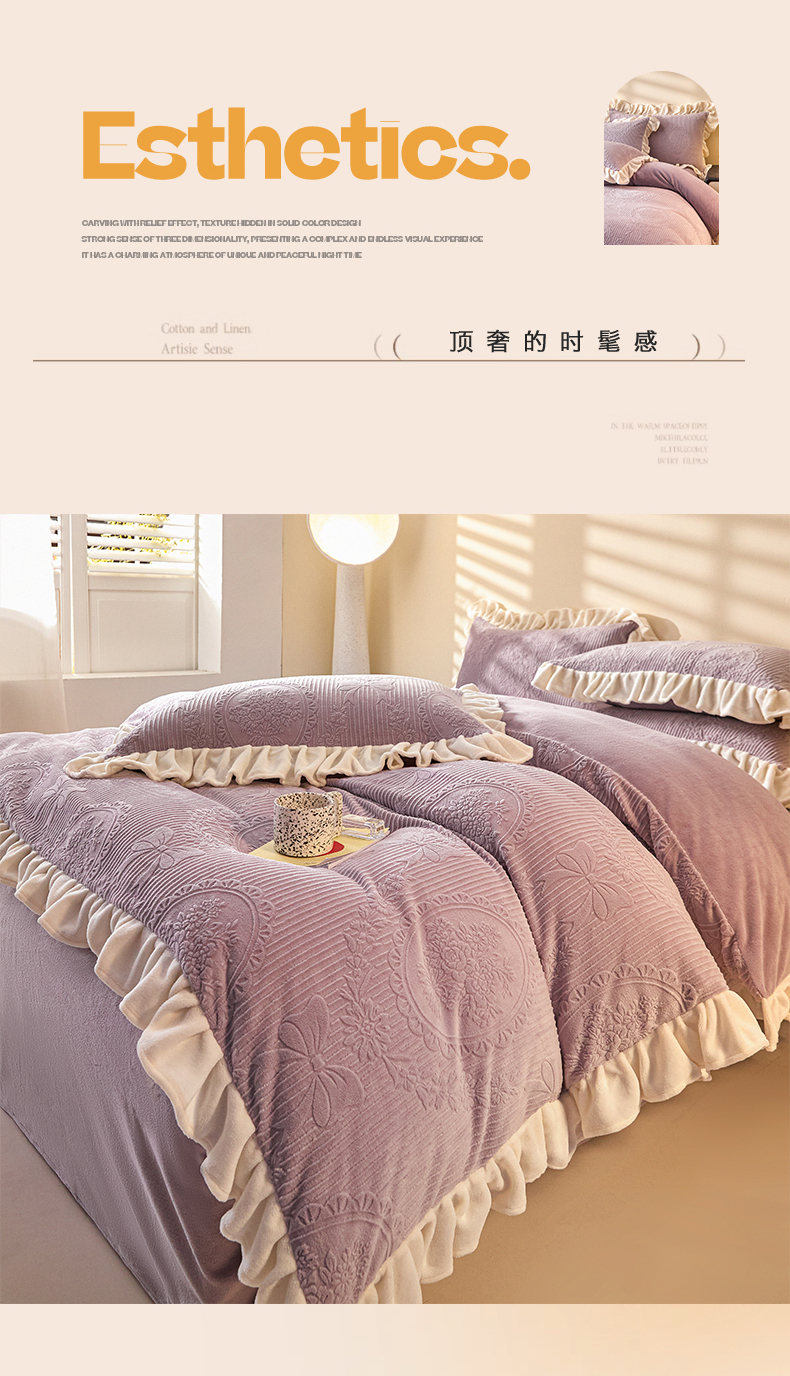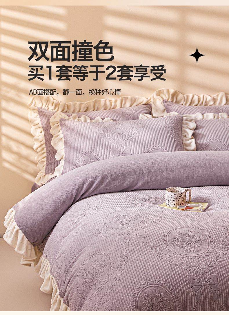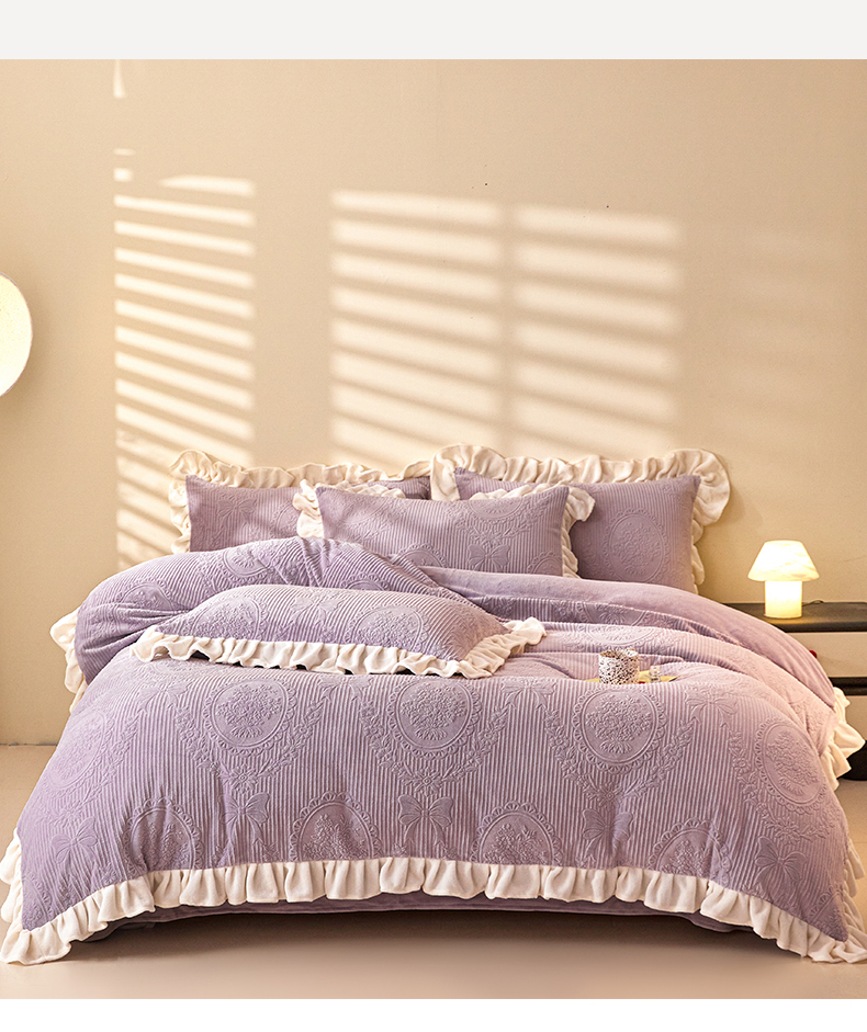 商品名称:2024新保暖-秋冬A类韩版婴肤绒提花四件套-玛丽夫人系列 玛丽夫人-玛莎紫