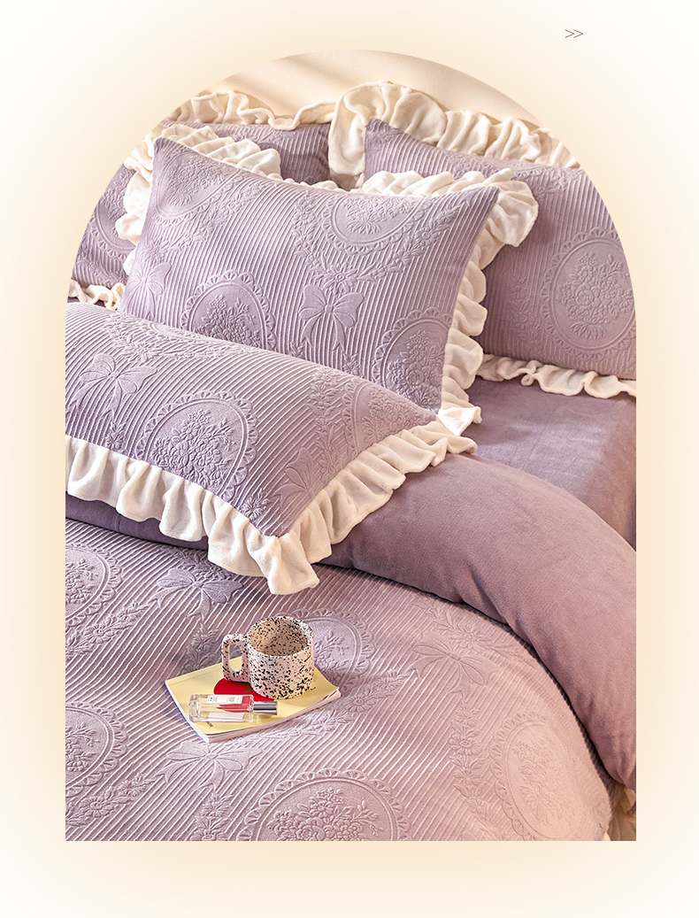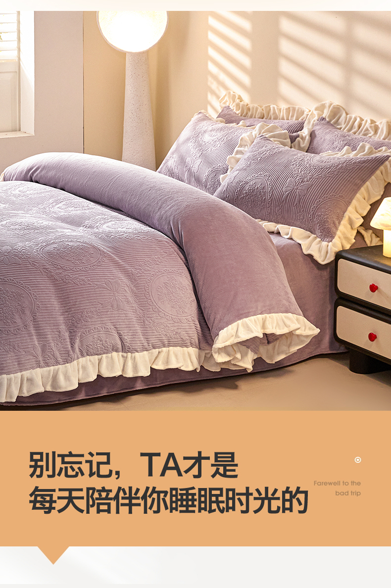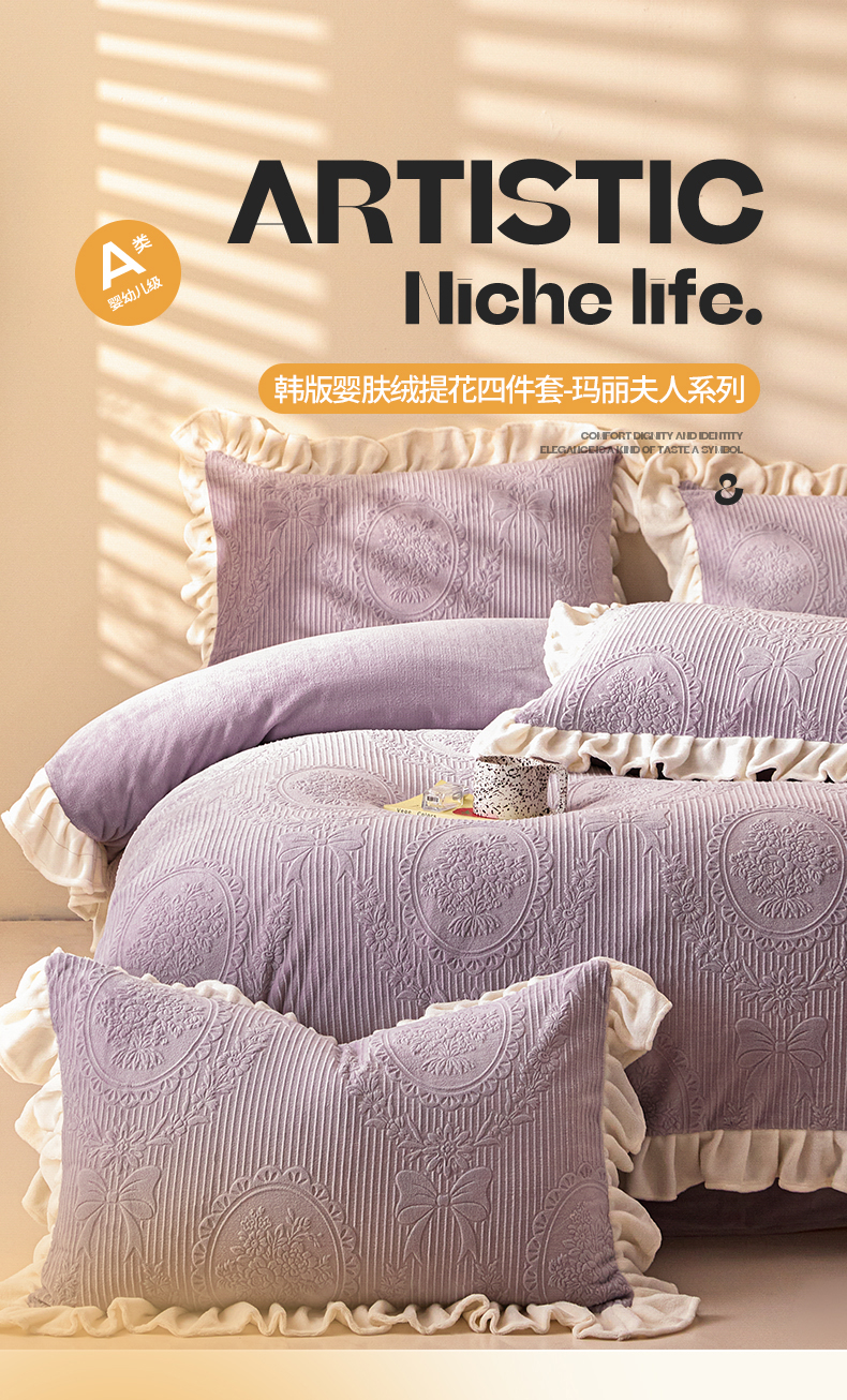 2024新保暖-秋冬A类韩版婴肤绒提花四件套-玛丽夫人系列 玛丽夫人-玛莎紫