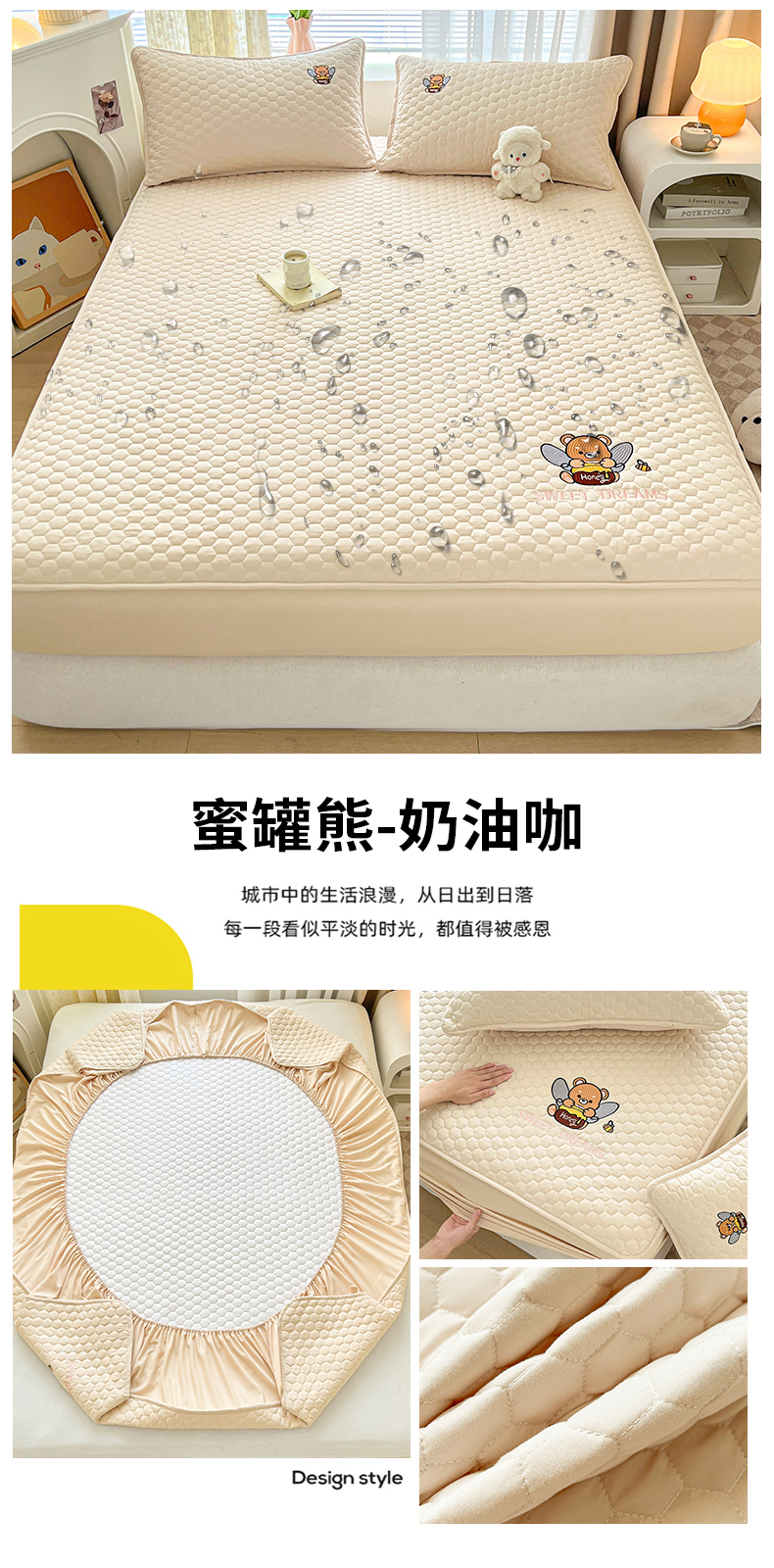 九亭家纺 2024新款A类水洗刺绣夹棉防水床笠床罩 防水防水无染-莱茵粉