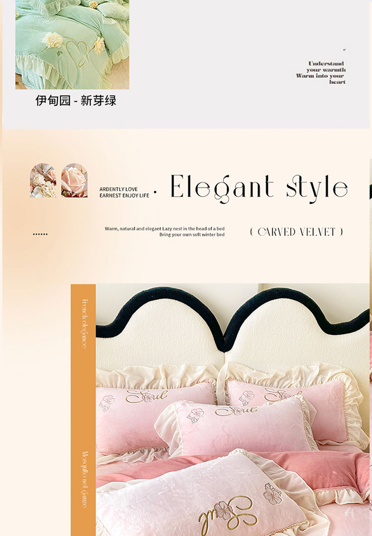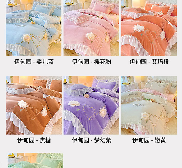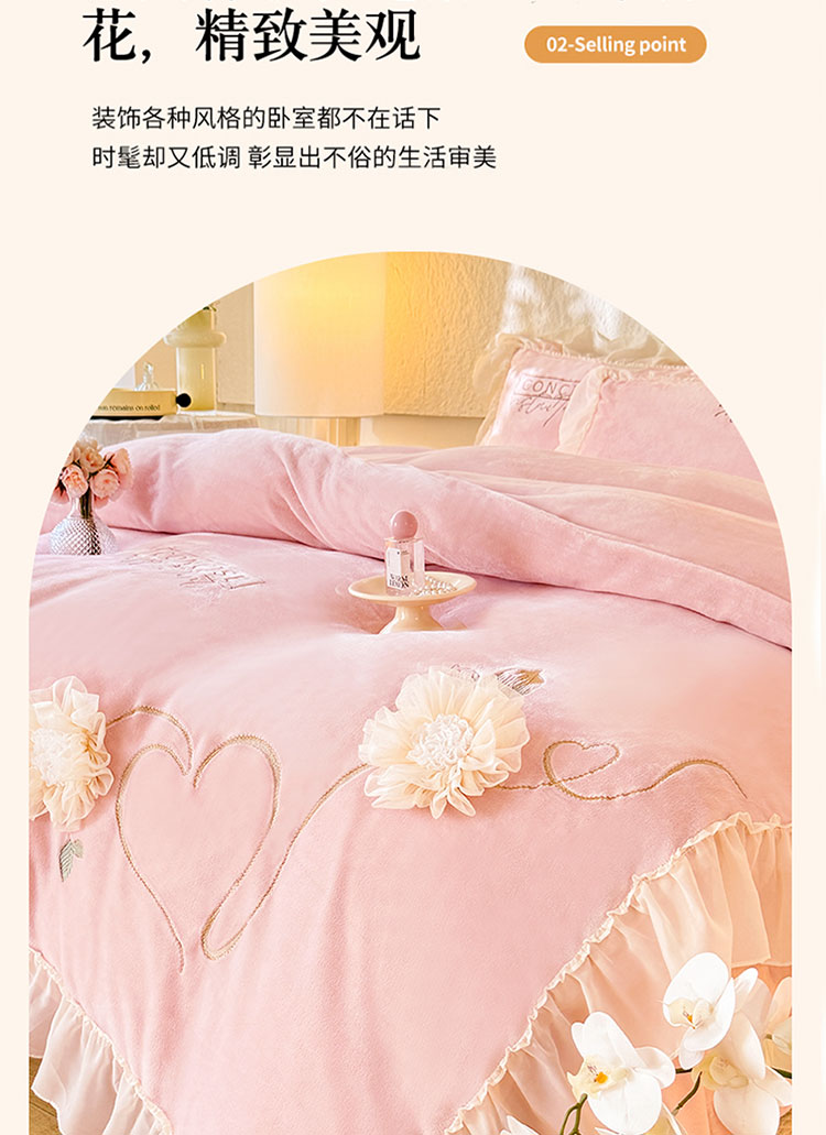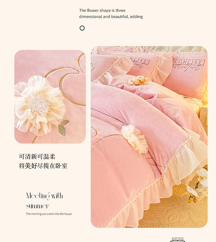 (总)2025秋冬新款230g法式公主粉少女心牛奶绒四件套法莱绒金貂绒兔兔绒牛奶绒床裙款四件套绒床盖款四件套