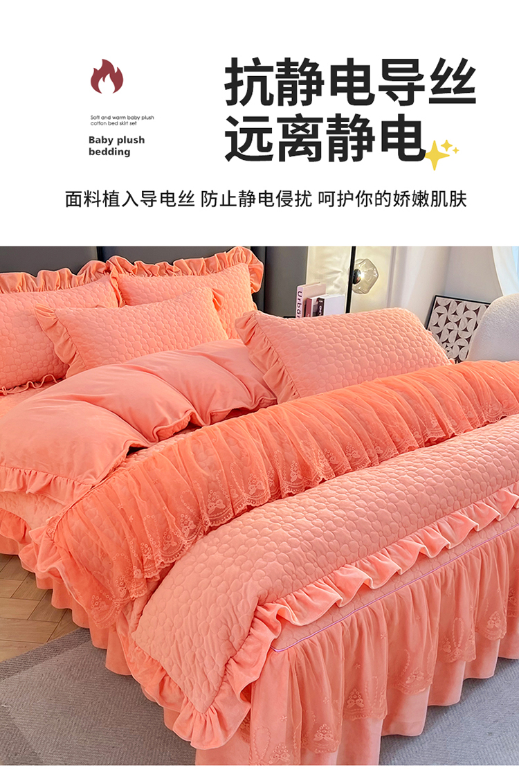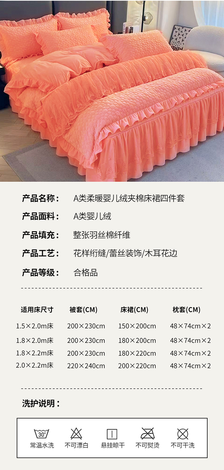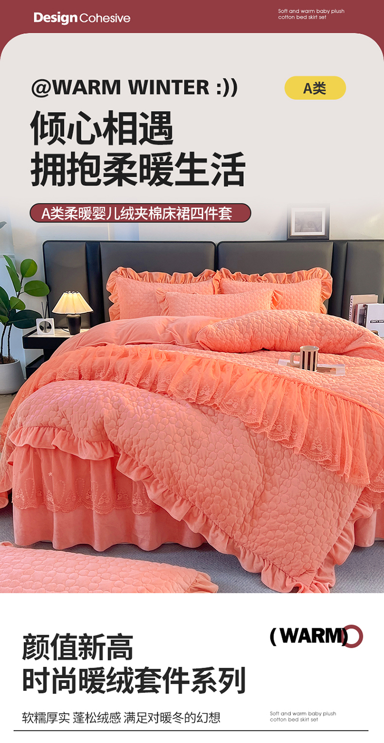 当前位置: 91家纺网 > 商品网购 > 床品套件 > 四件套 > 其它四件套 > 2024新款A类柔暖婴儿绒夹棉床裙四件套-倾世温柔 倾世温柔 柔玉