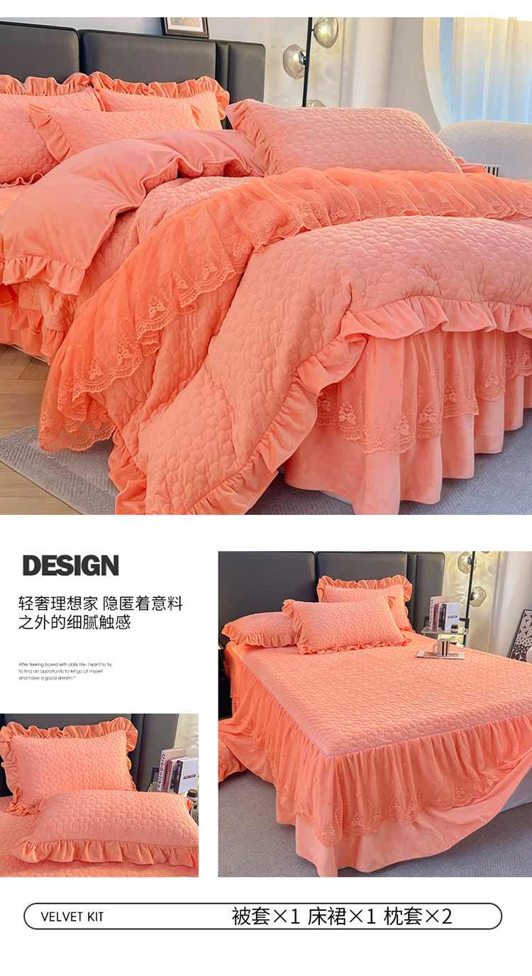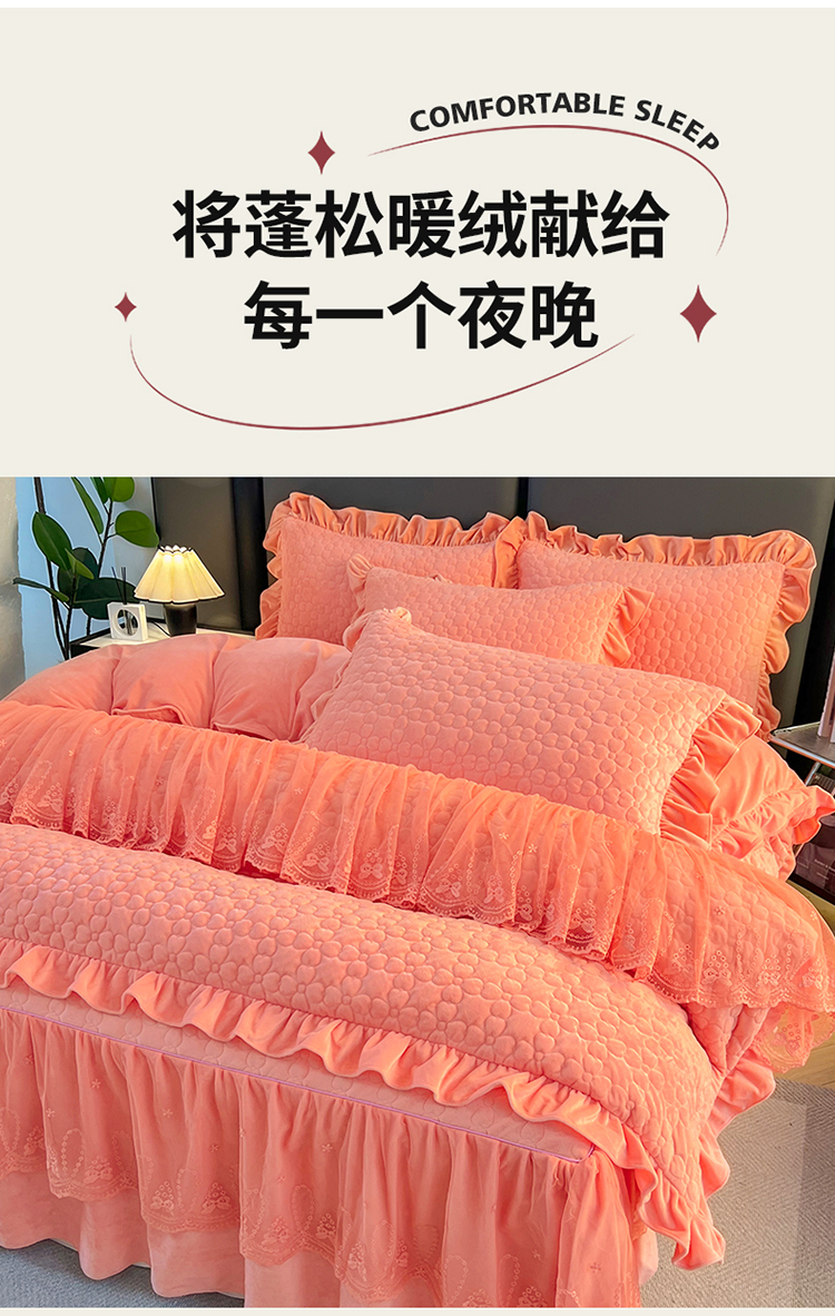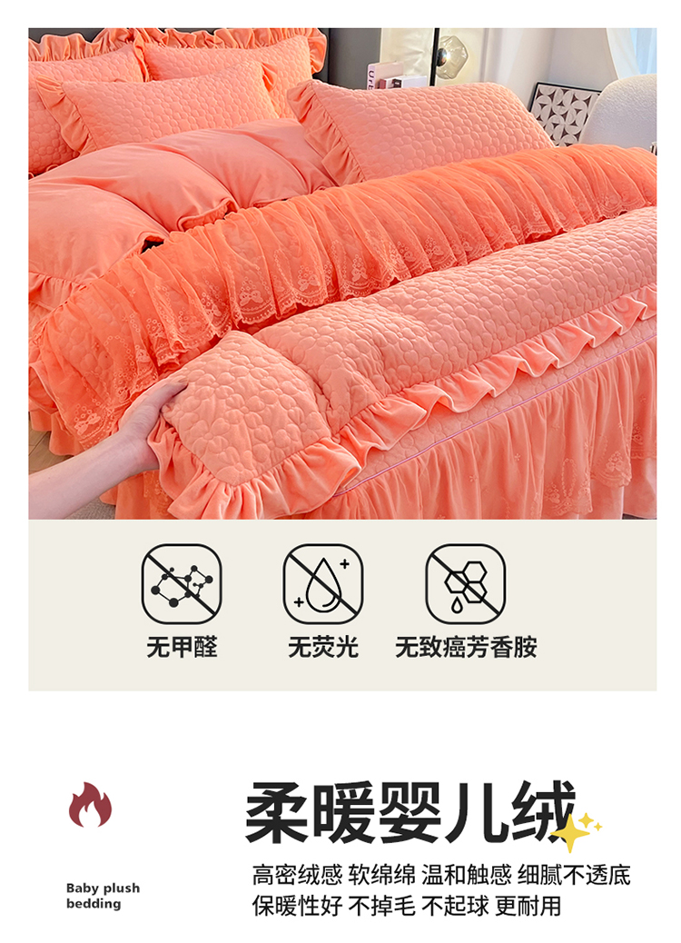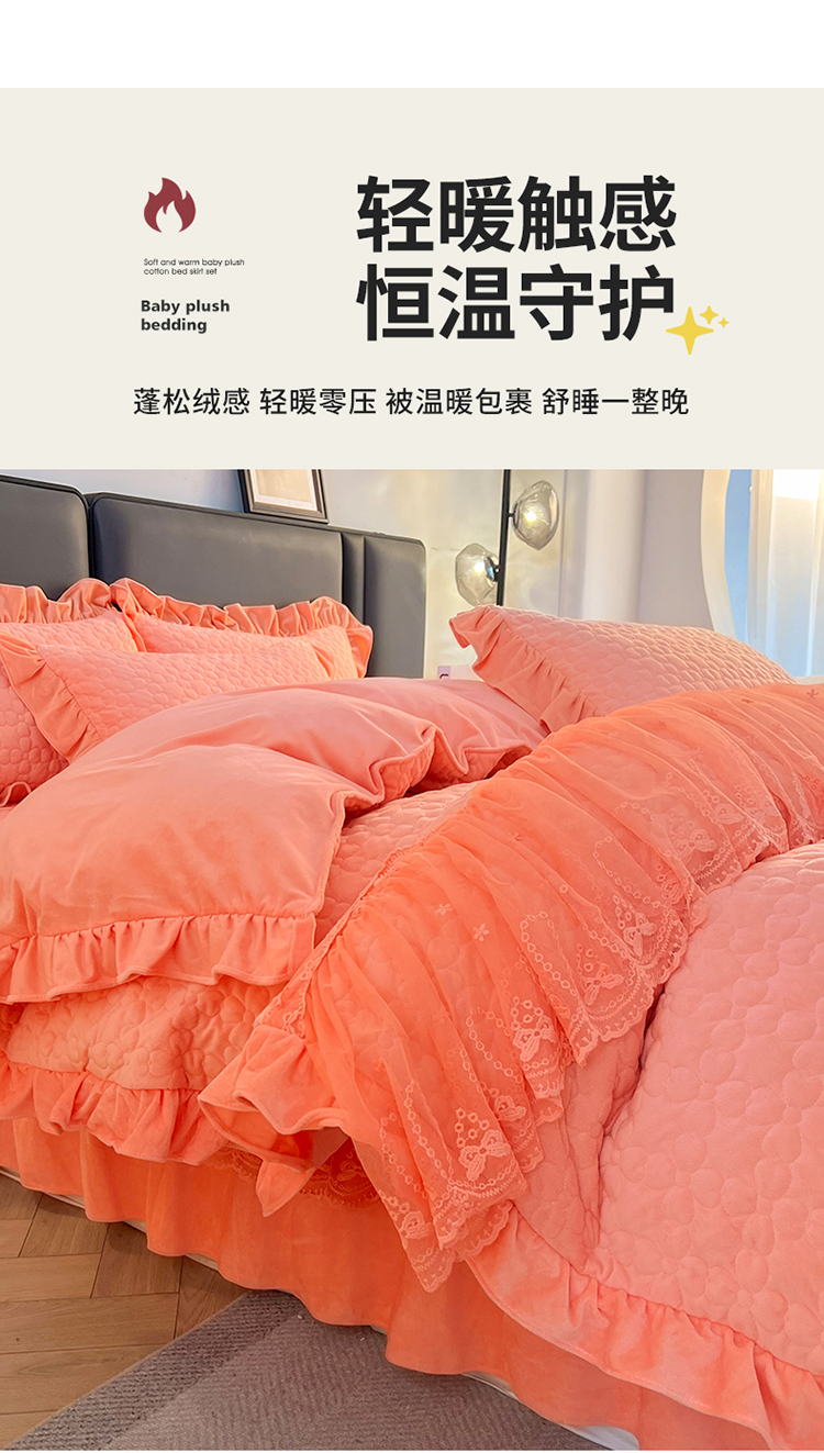 当前位置: 91家纺网 > 商品网购 > 床品套件 > 四件套 > 其它四件套 > 2024新款A类柔暖婴儿绒夹棉床裙四件套-倾世温柔 倾世温柔 柔玉