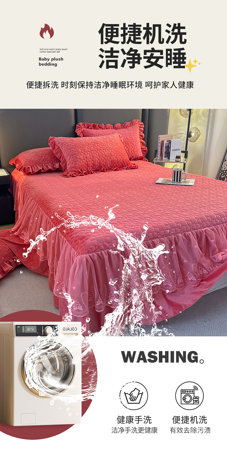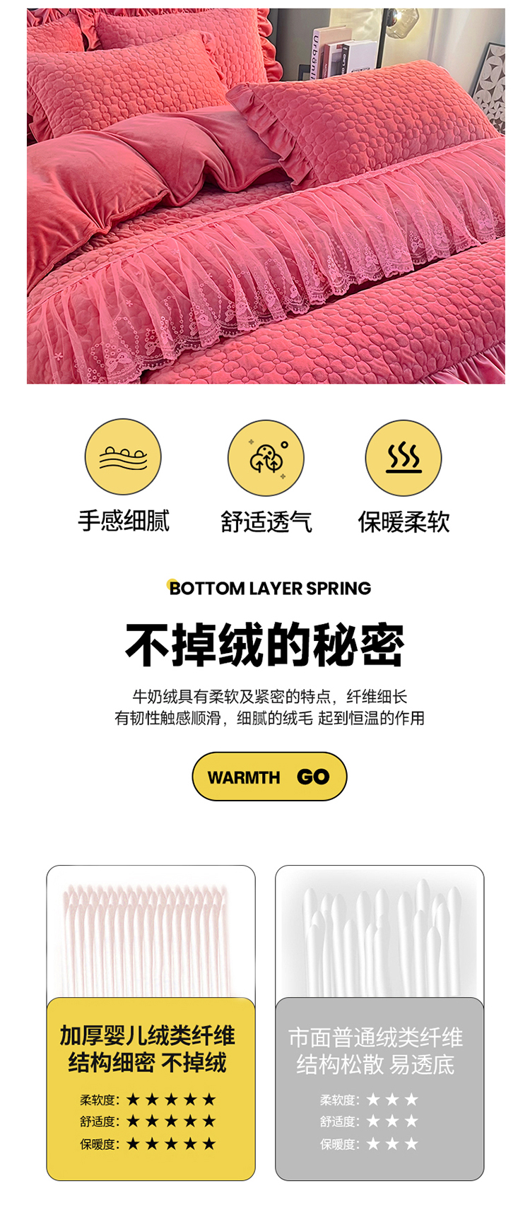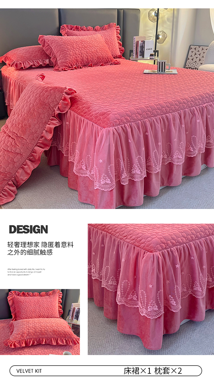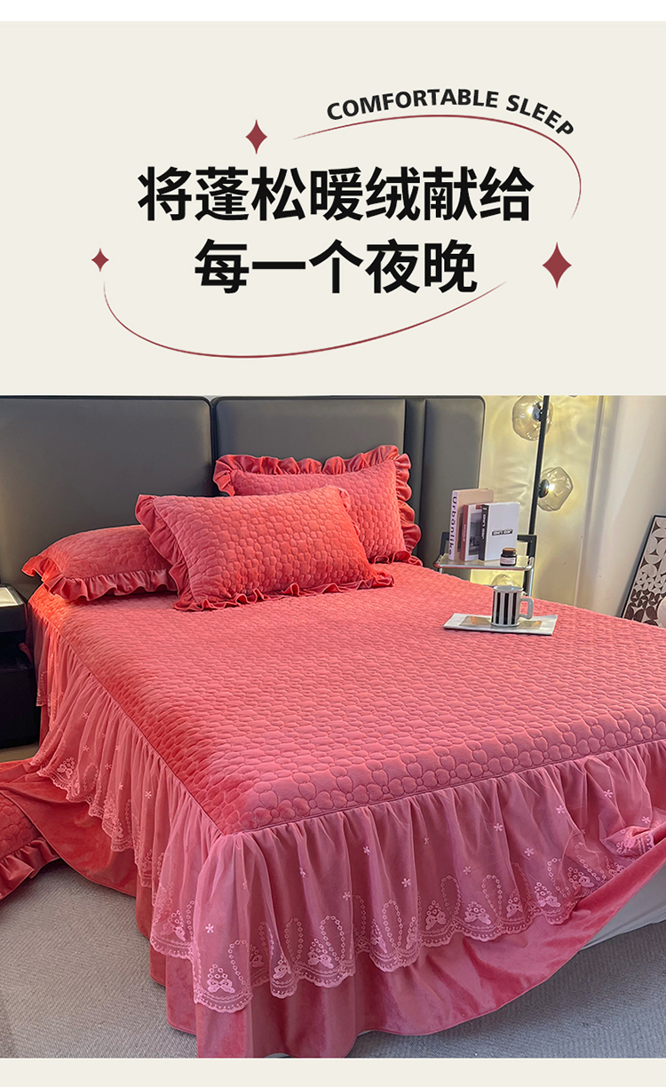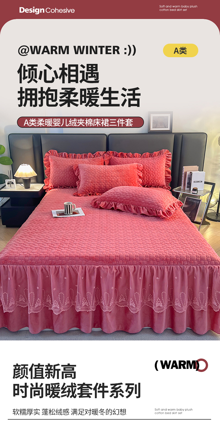 • 91家纺网 家纺一手货源 找家纺 2024新款A类柔暖婴儿绒夹棉床裙三件套-倾世温柔 倾世温柔 玫粉