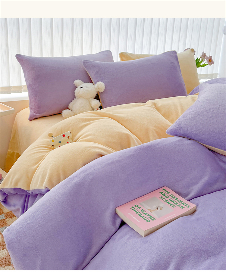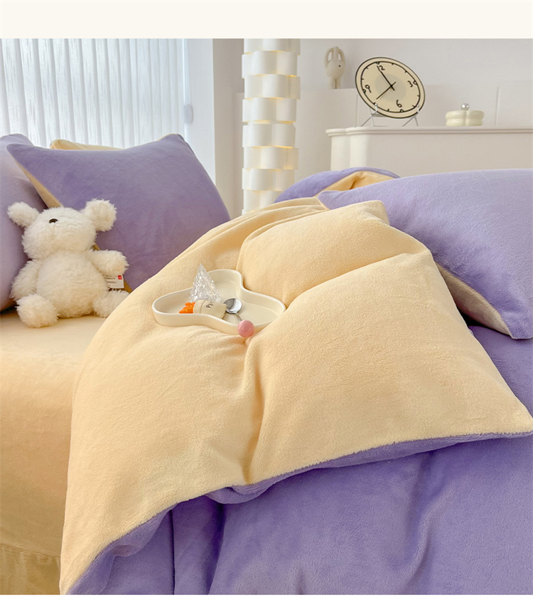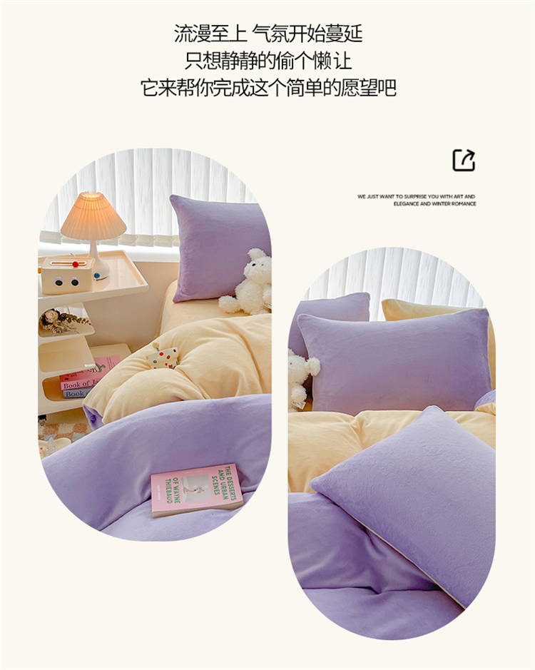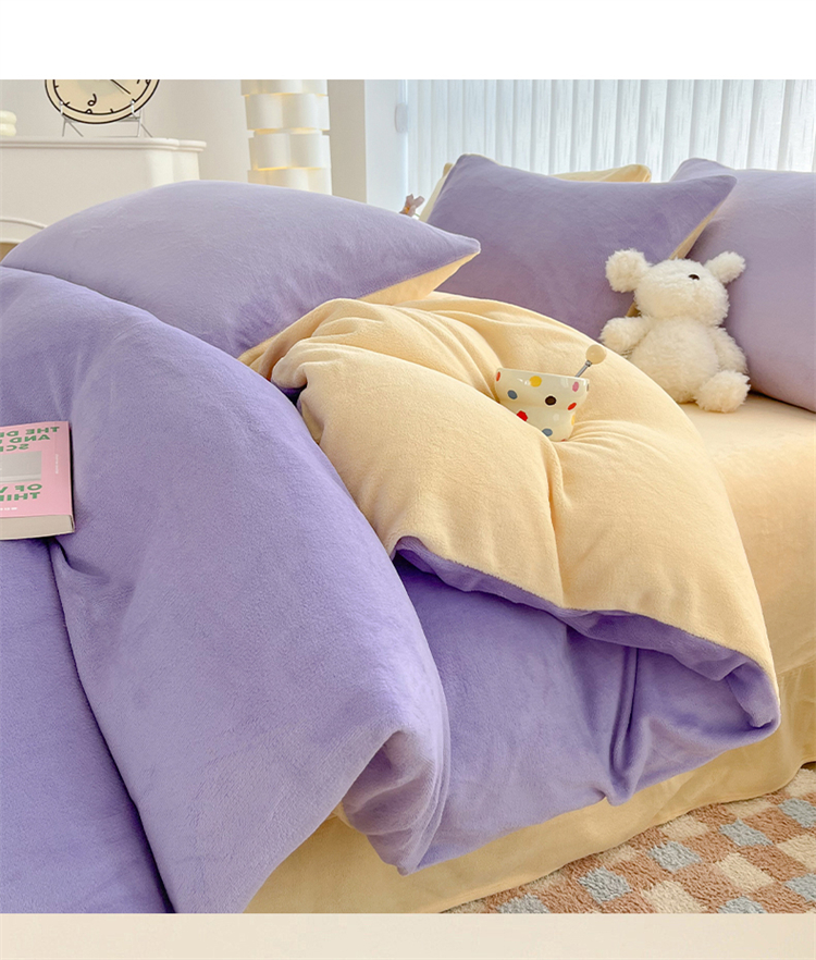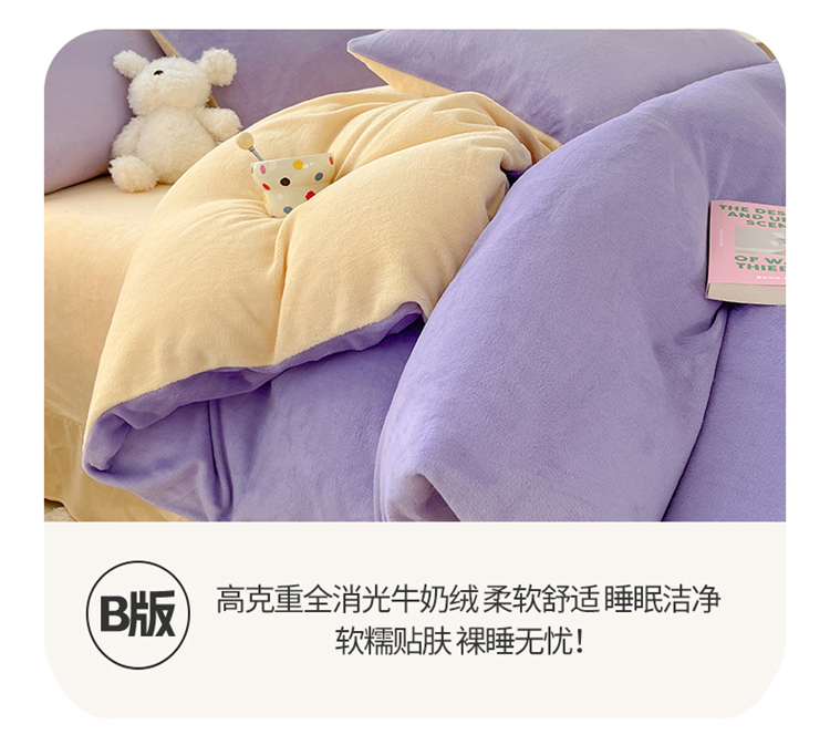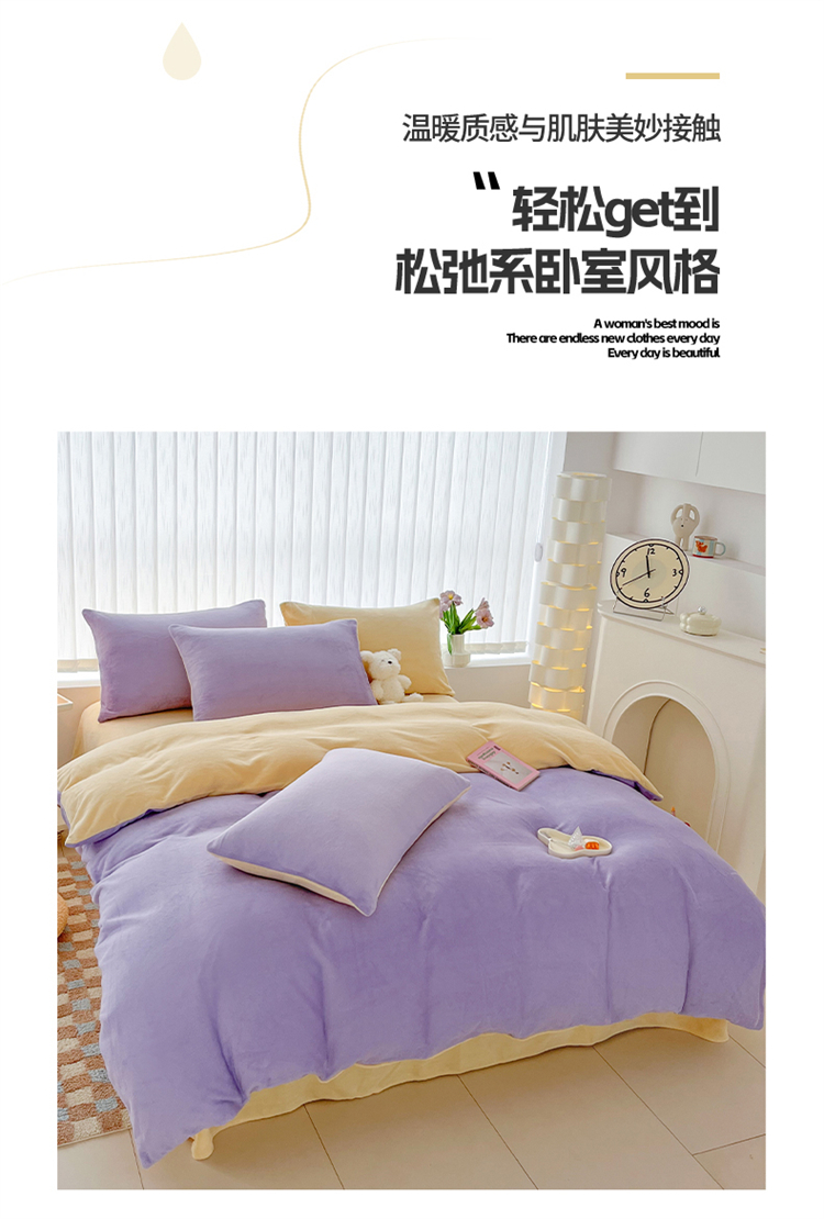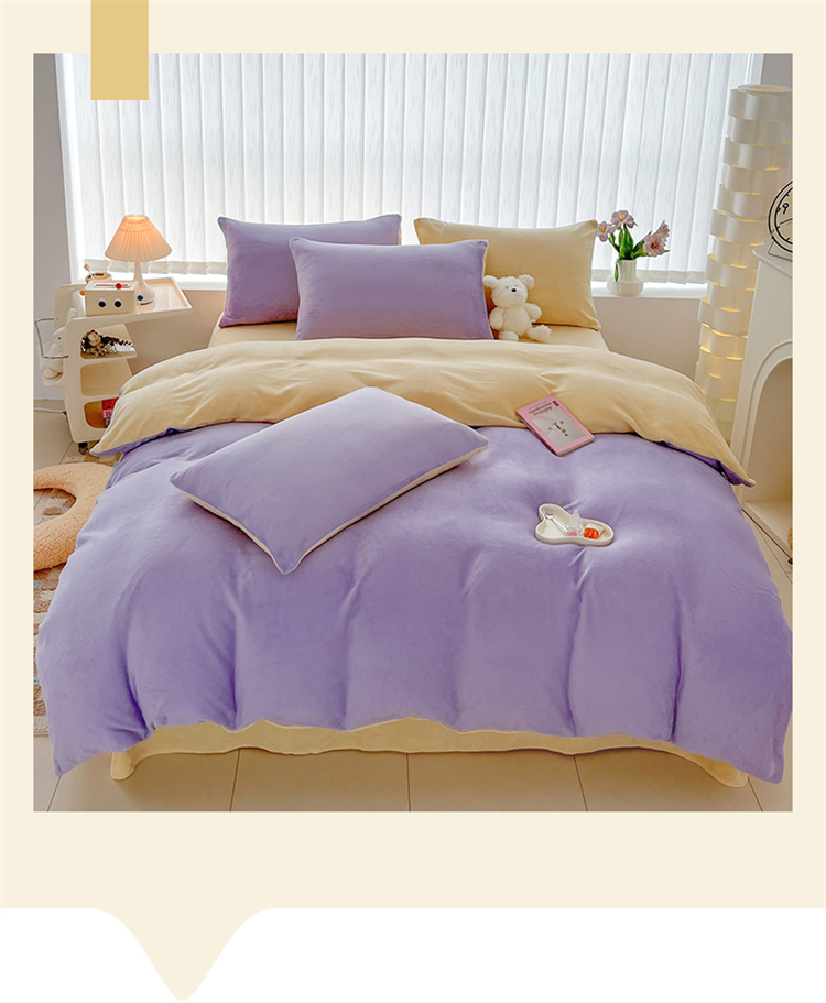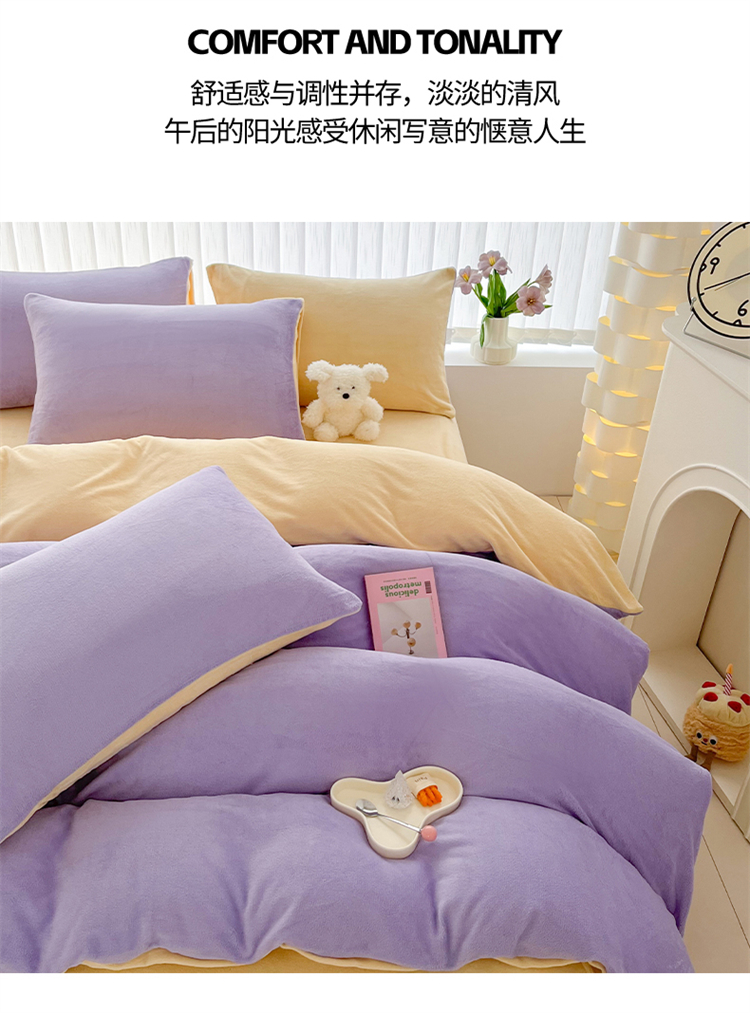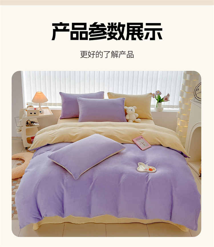 商品名称:言熙居 2024新款纯色双拼30克8一9斤牛奶绒四件套 浅紫拼奶黄