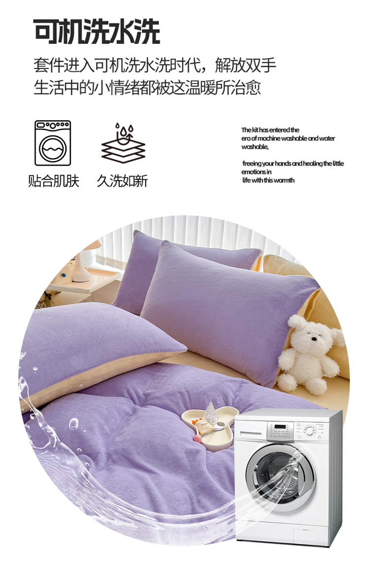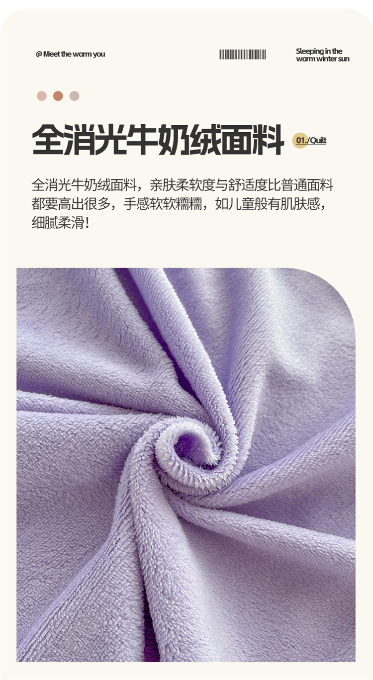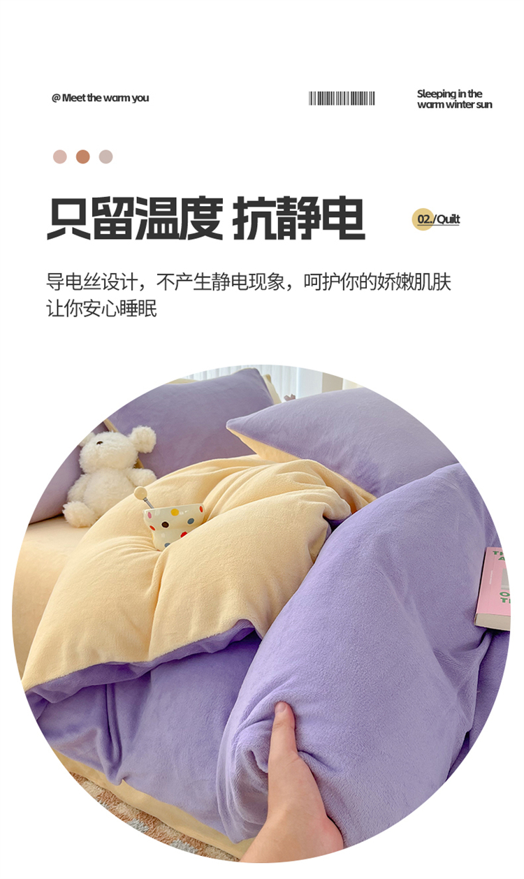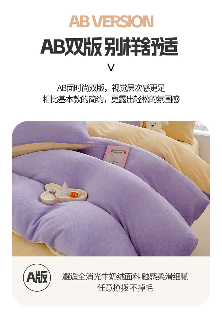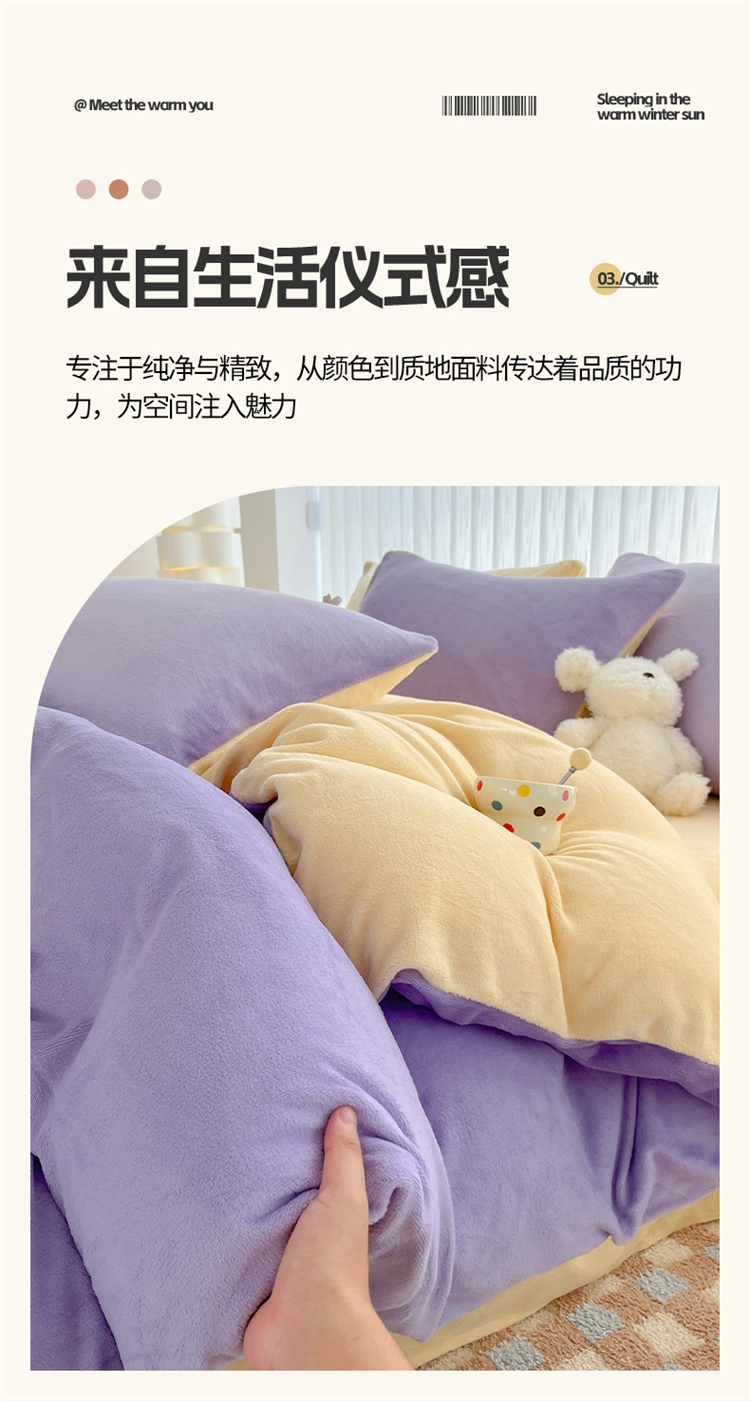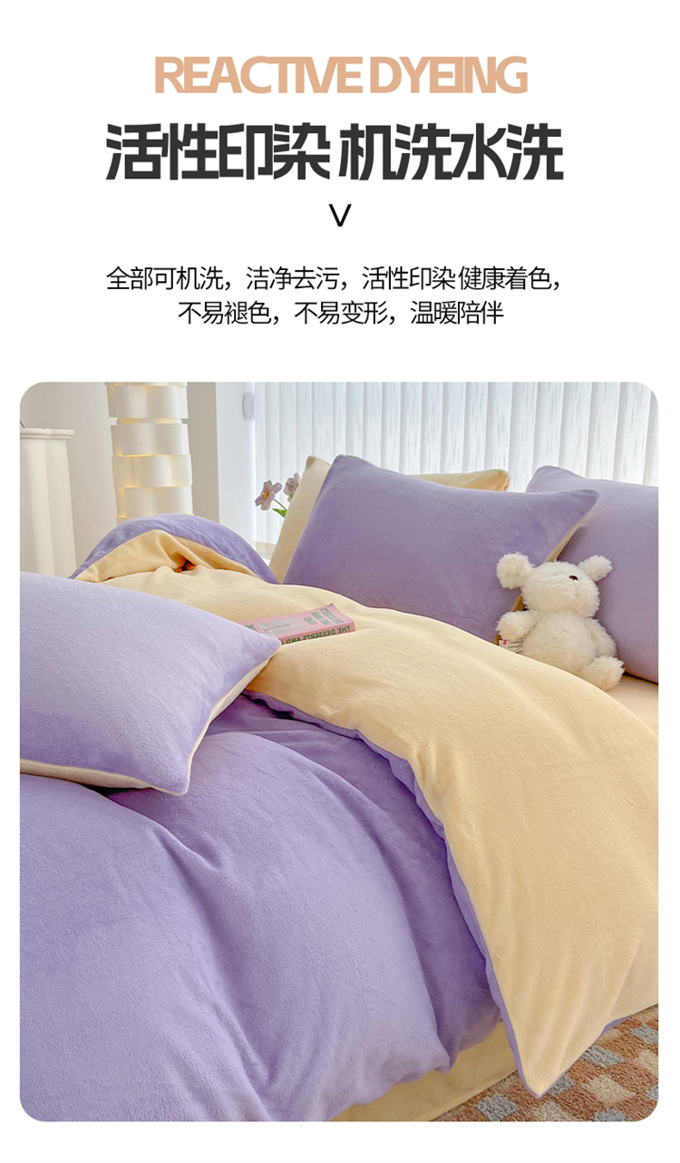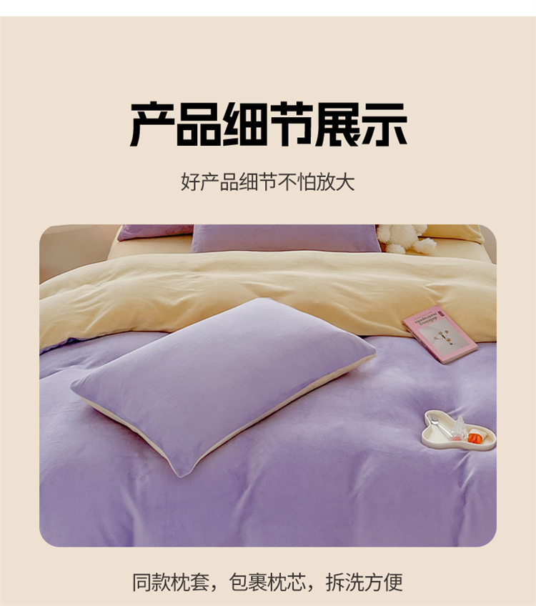 商品名称:言熙居 2024新款纯色双拼30克8一9斤牛奶绒四件套 浅紫拼奶黄