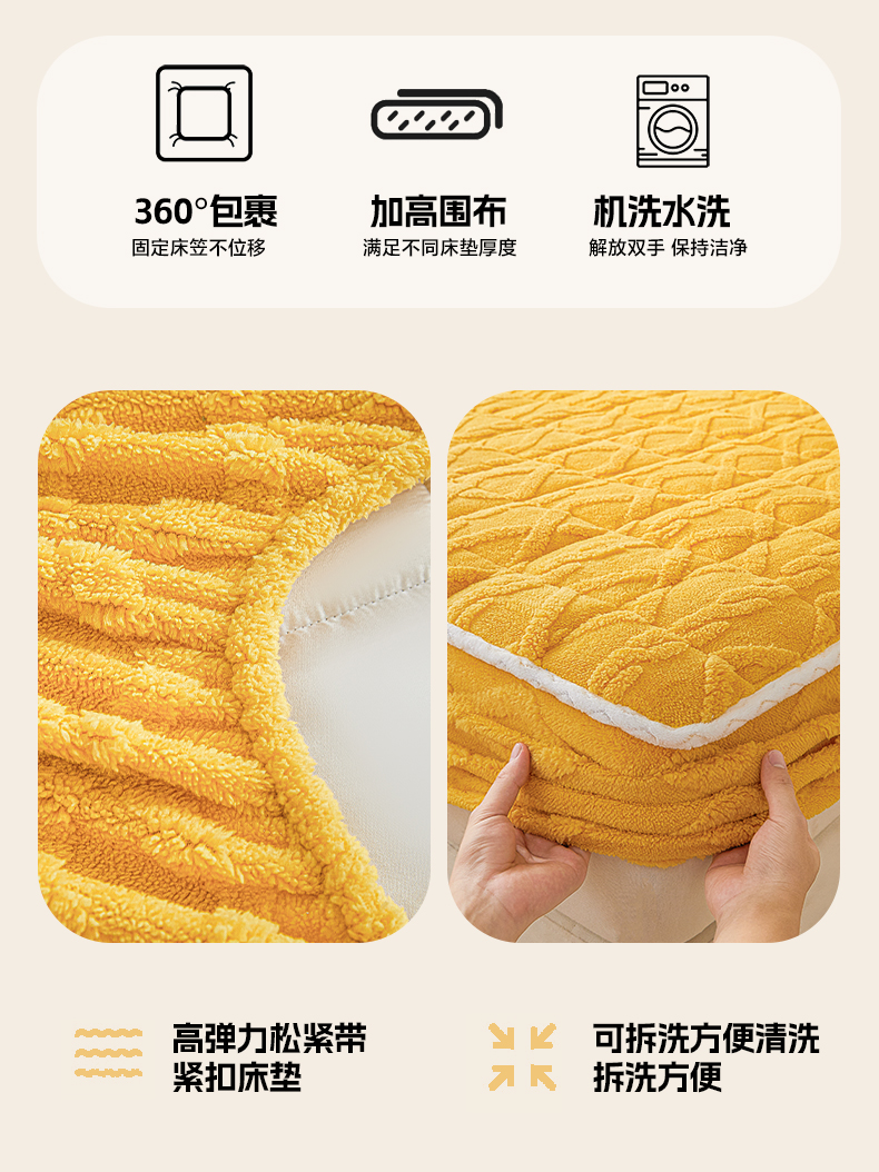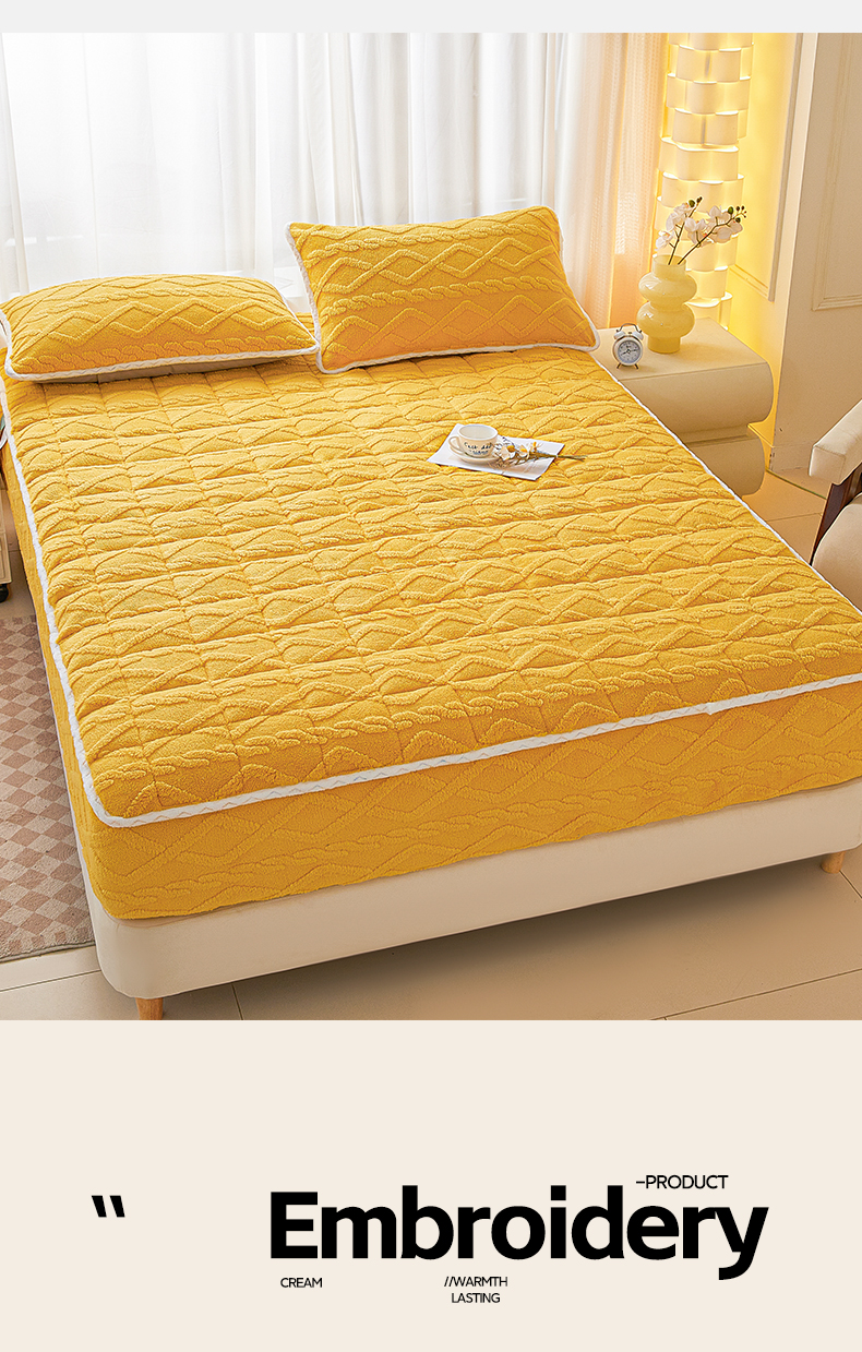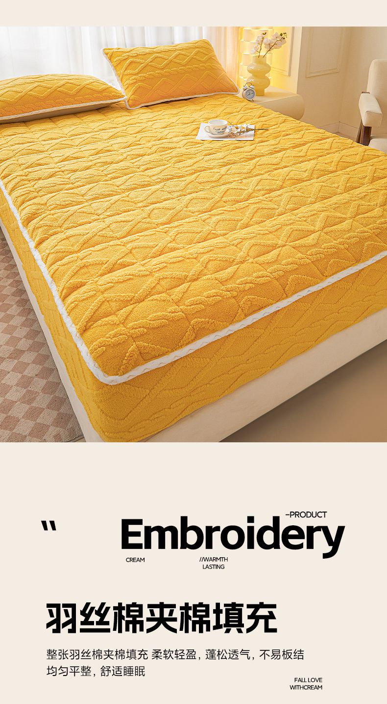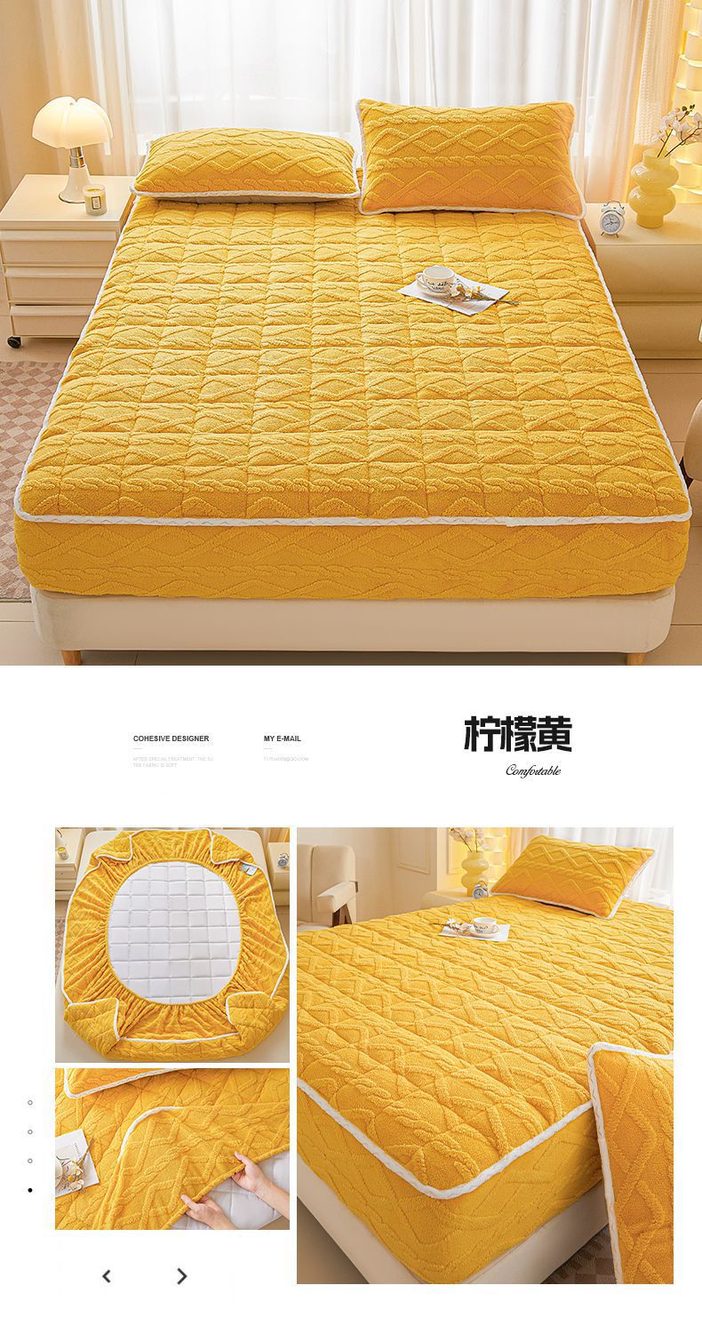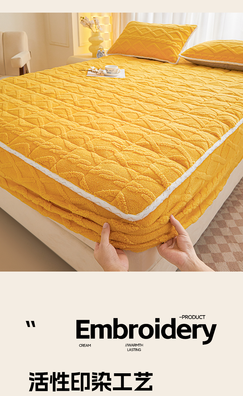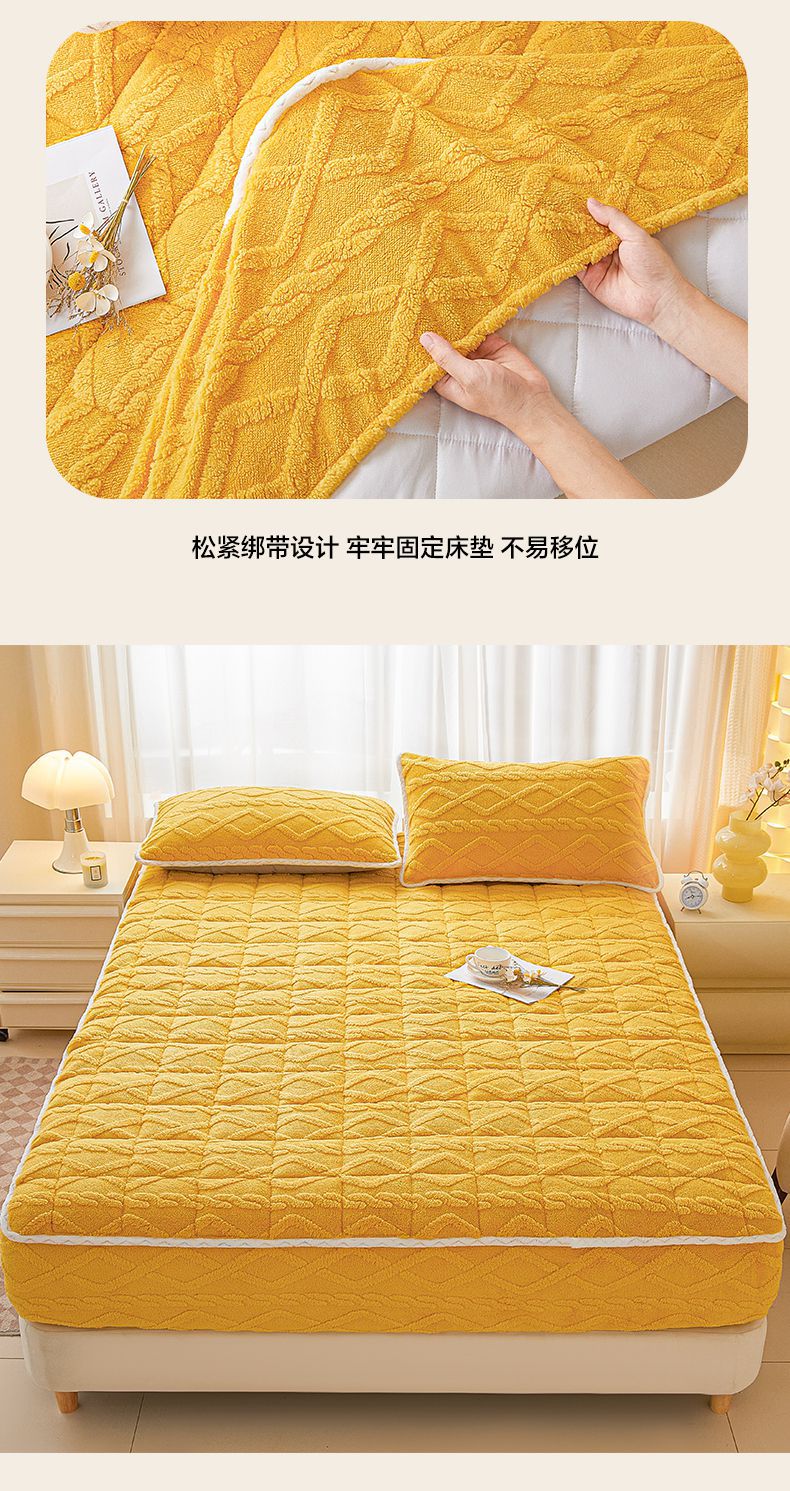 • 91家纺网 家纺一手货源 找家纺 2025塔芙绒加厚保暖床笠双人单人夹棉床笠保护套 柠檬黄