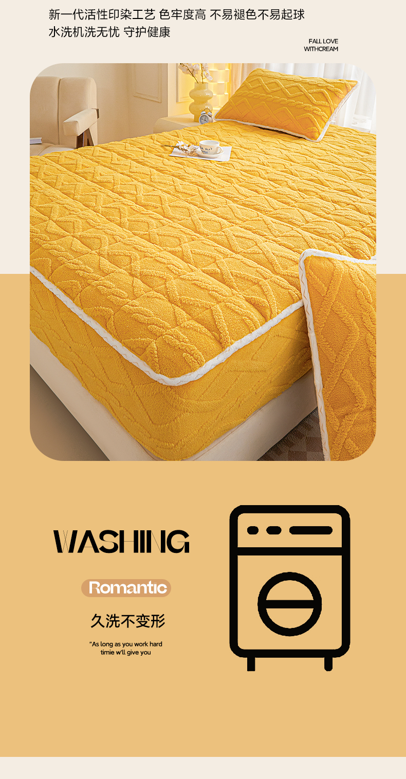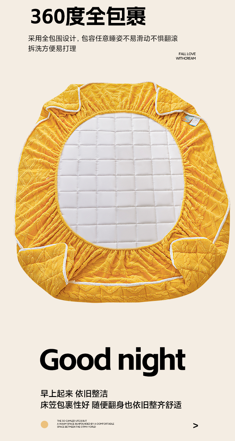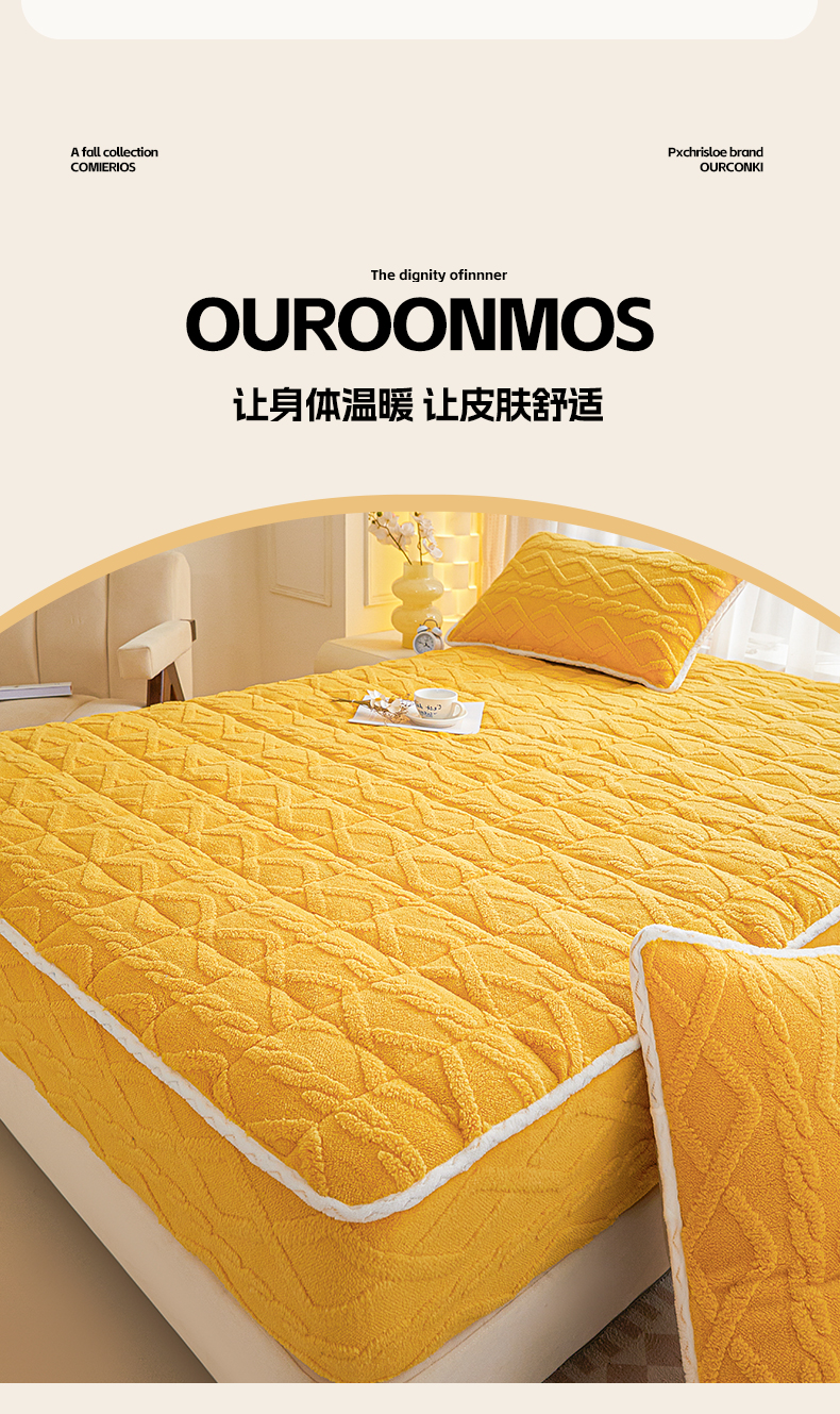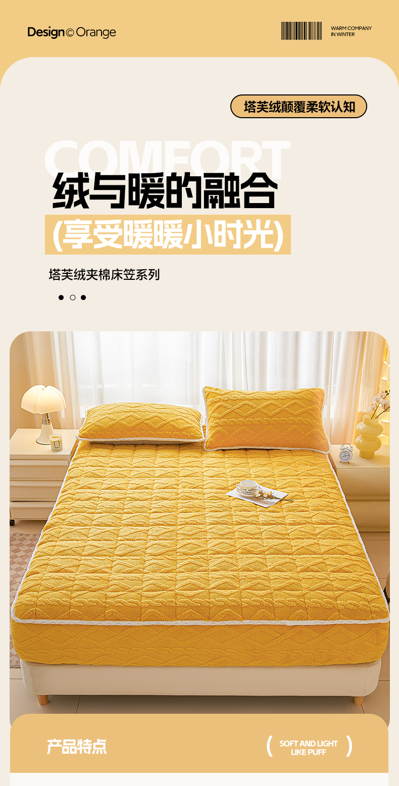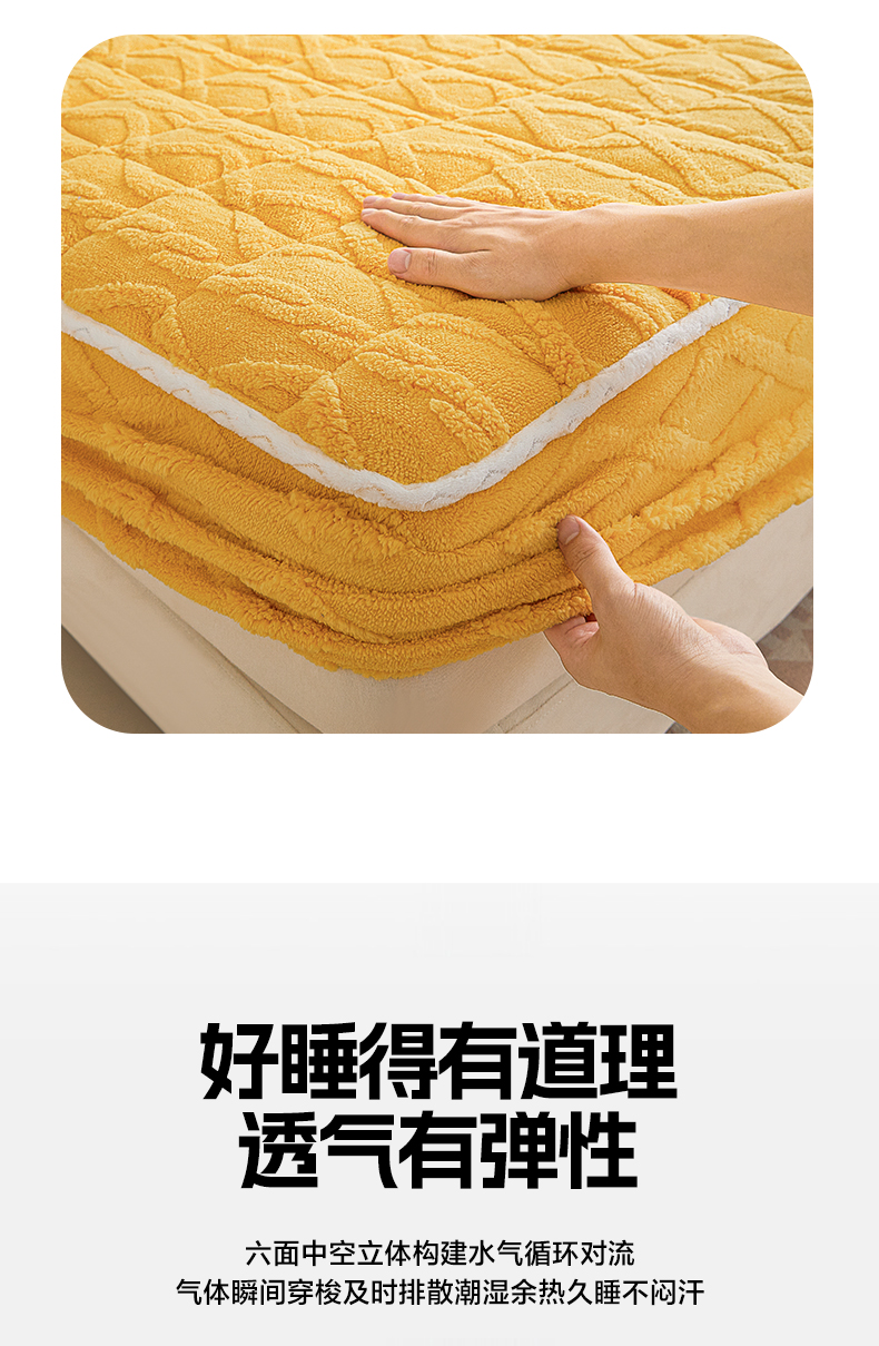 • 91家纺网 家纺一手货源 找家纺 2025塔芙绒加厚保暖床笠双人单人夹棉床笠保护套 柠檬黄