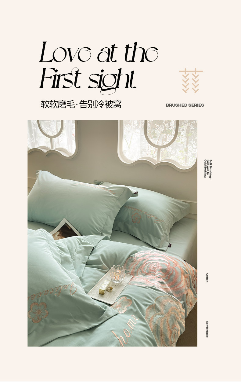 商品名称: 【秋冬爆款】A类母婴级全棉磨毛四件套纯棉重工刺绣花轻奢风床单床笠款新疆棉高奢床上用品 缇菲-茶绿