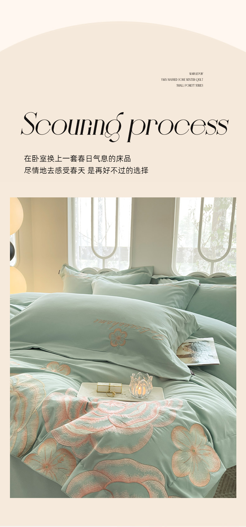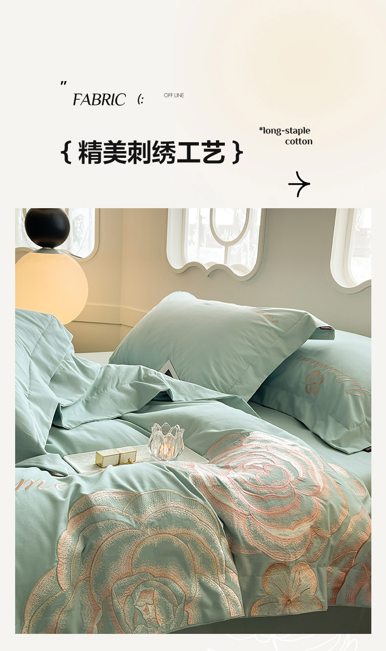 (总) 2025春夏长绒棉四件套纯棉全棉轻奢风床单被套重工刺绣床上用品,芊羽梦-白粉,芊羽梦-茶绿,芊羽梦-黛紫,芊羽梦-慕蓝,芊羽梦-颜粉