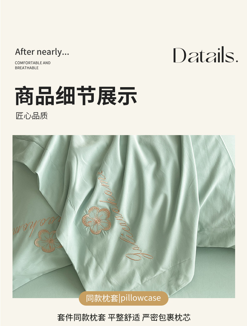 (总) 2026春夏新款轻奢纯色A类长绒棉纯棉全棉重工刺绣被套床单四件套床上用品云栀,云栀-白粉,云栀-茶绿,云栀-黛紫,云栀-慕蓝,云栀-颜粉