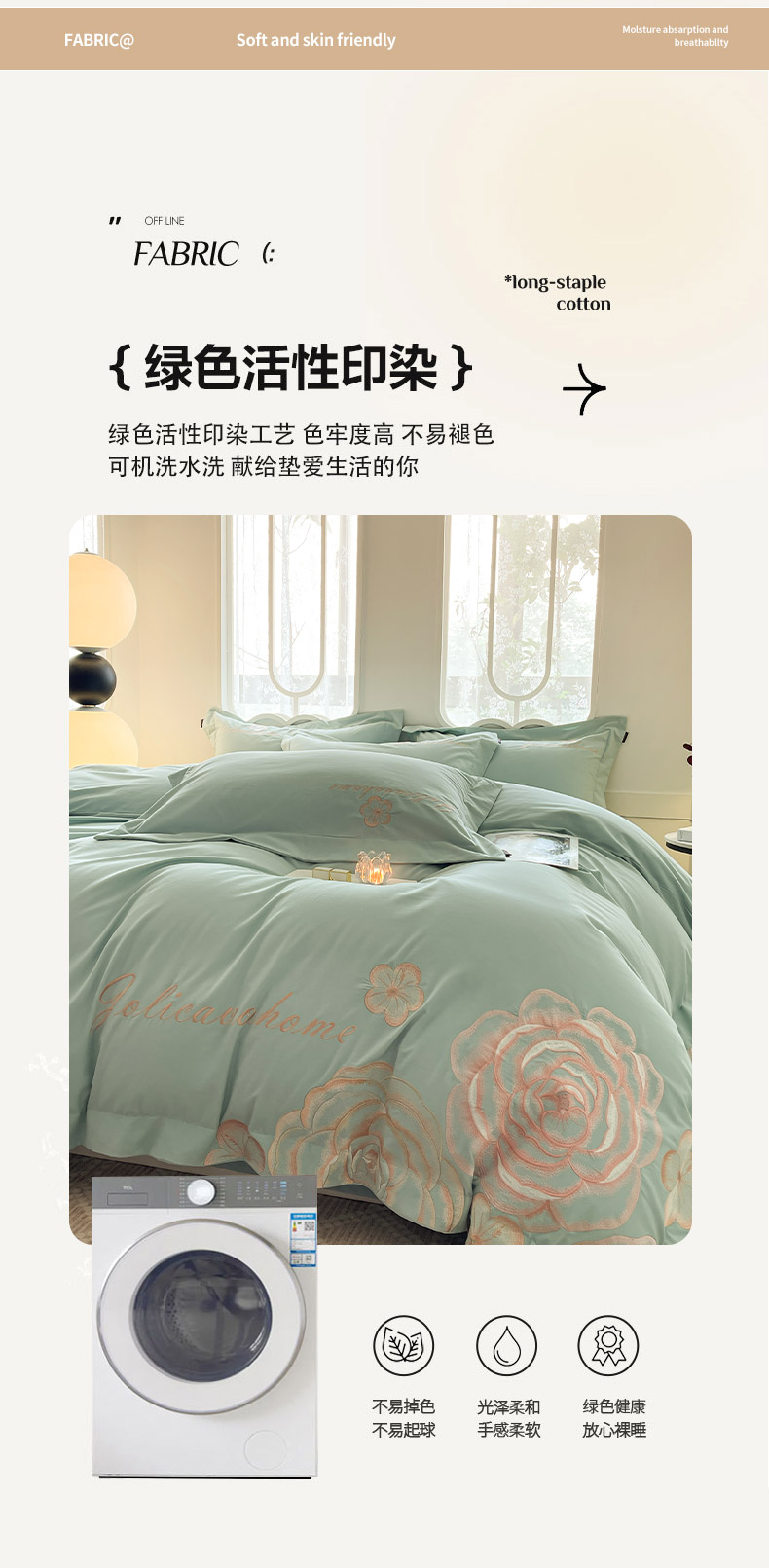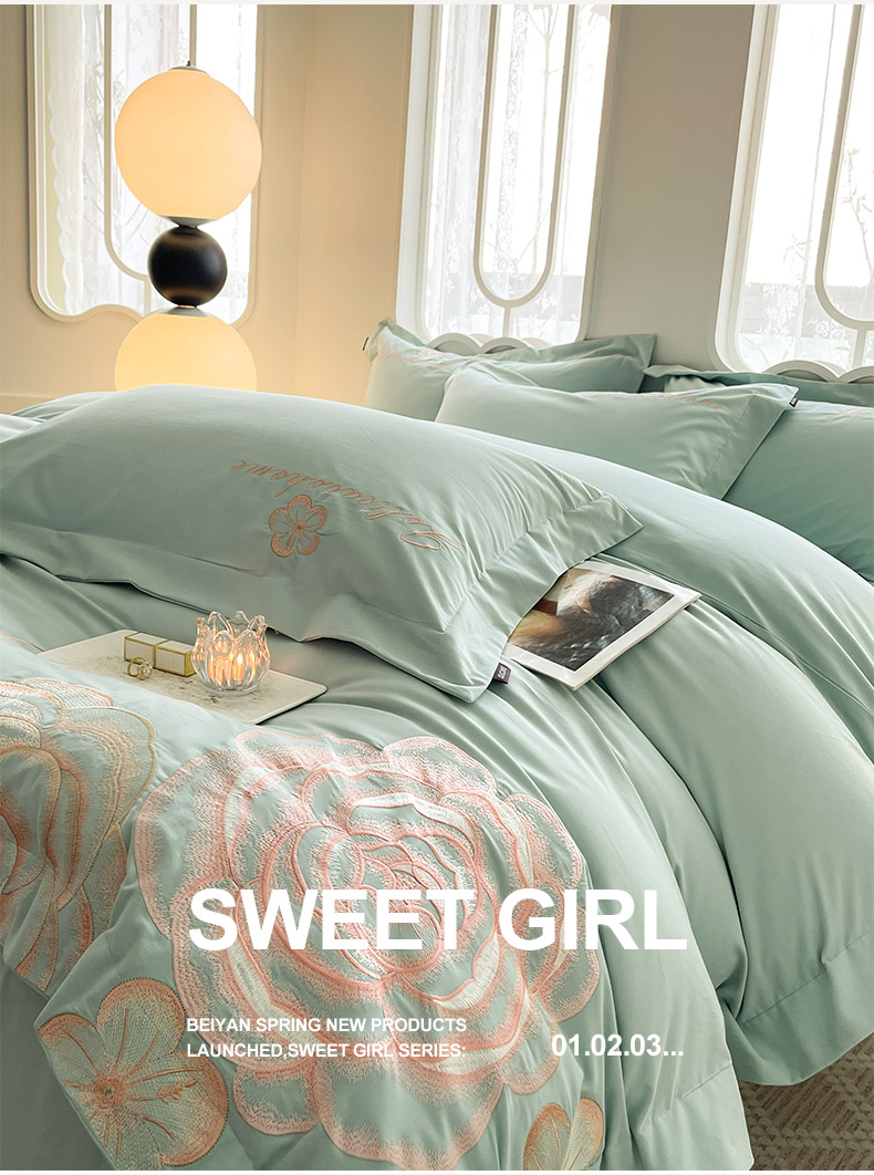 (总) 2026新款特供款A类长绒棉纯棉四件套100全棉少女心刺绣被套床单床笠床上用品,花若梦-慕蓝,花若梦-清绿,花若梦-颜粉,花若梦-幽紫