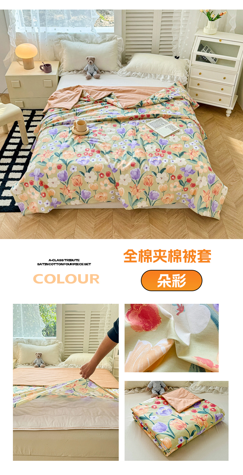 商品名称:舒慕家纺 2025新款全棉单被套全棉夹棉被套夹棉四件套 朵彩