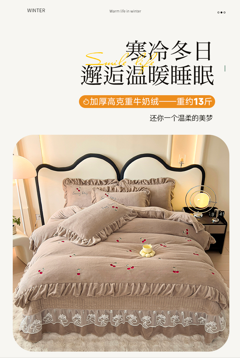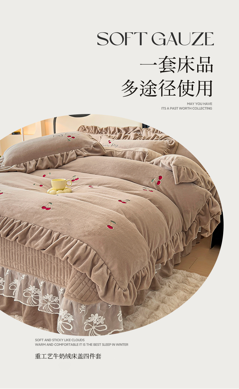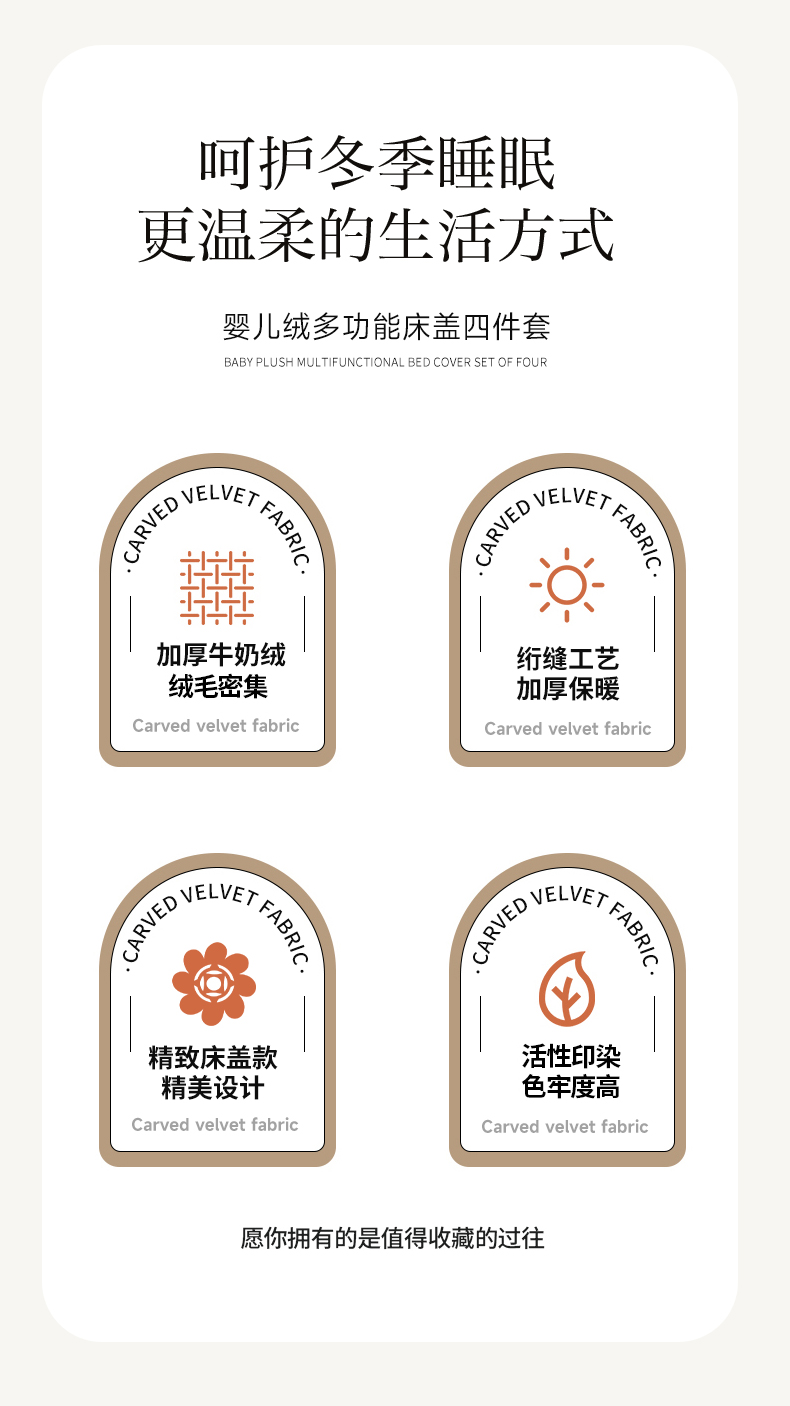 当前位置: 91家纺网 > 商品网购 > 床品套件 > 四件套 > 牛奶绒四件套 > 找底底家纺 2024新款加厚高克重14斤牛奶绒床盖四件套满版刺绣纯色牛奶绒床盖四件套(有量有价,提供买家秀) 4加厚咖色