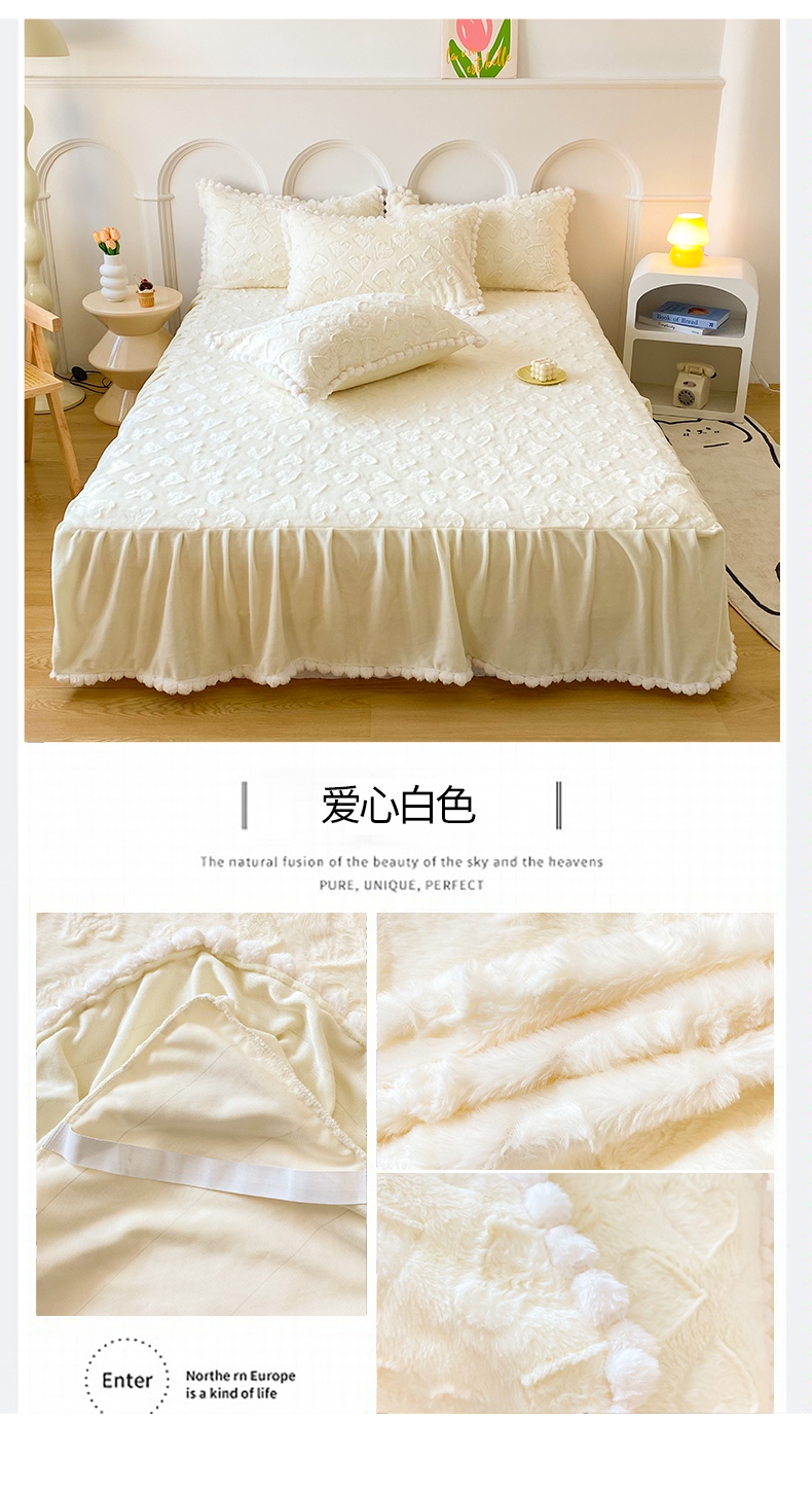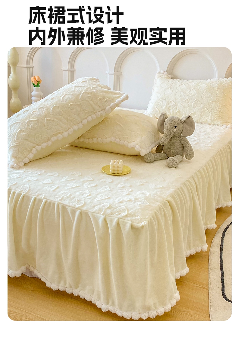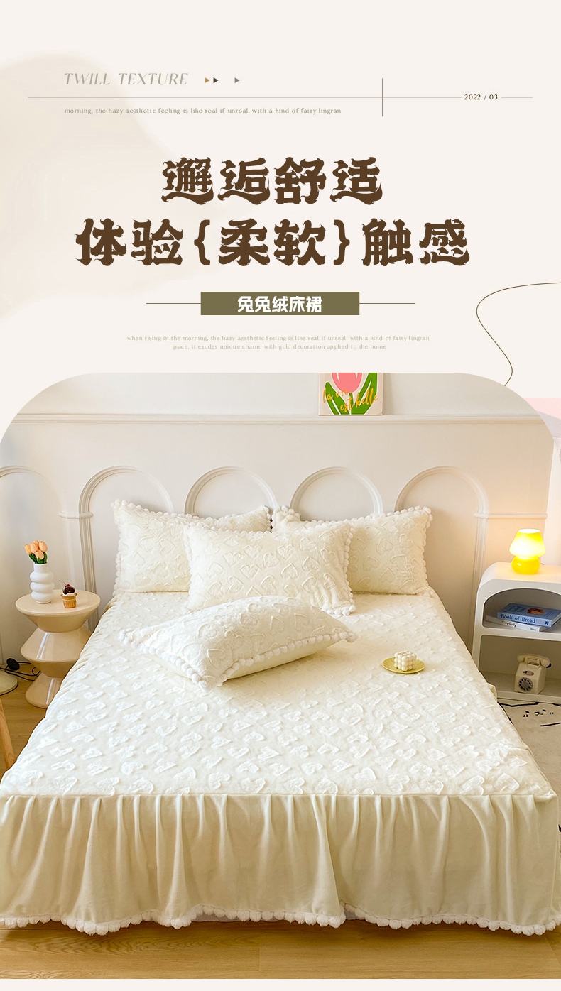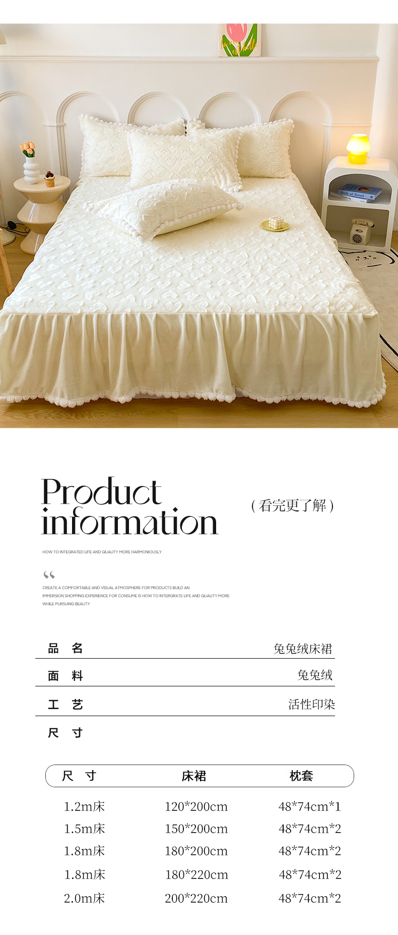 商品名称:禧缘家纺(原梦想家) 2024新款兔兔绒花边床裙 爱心白色