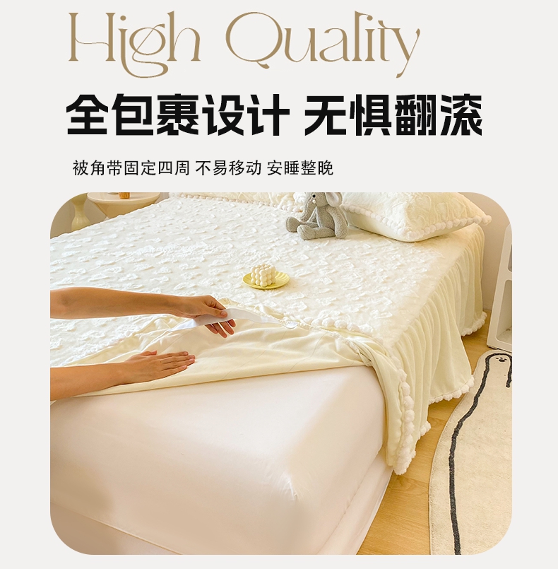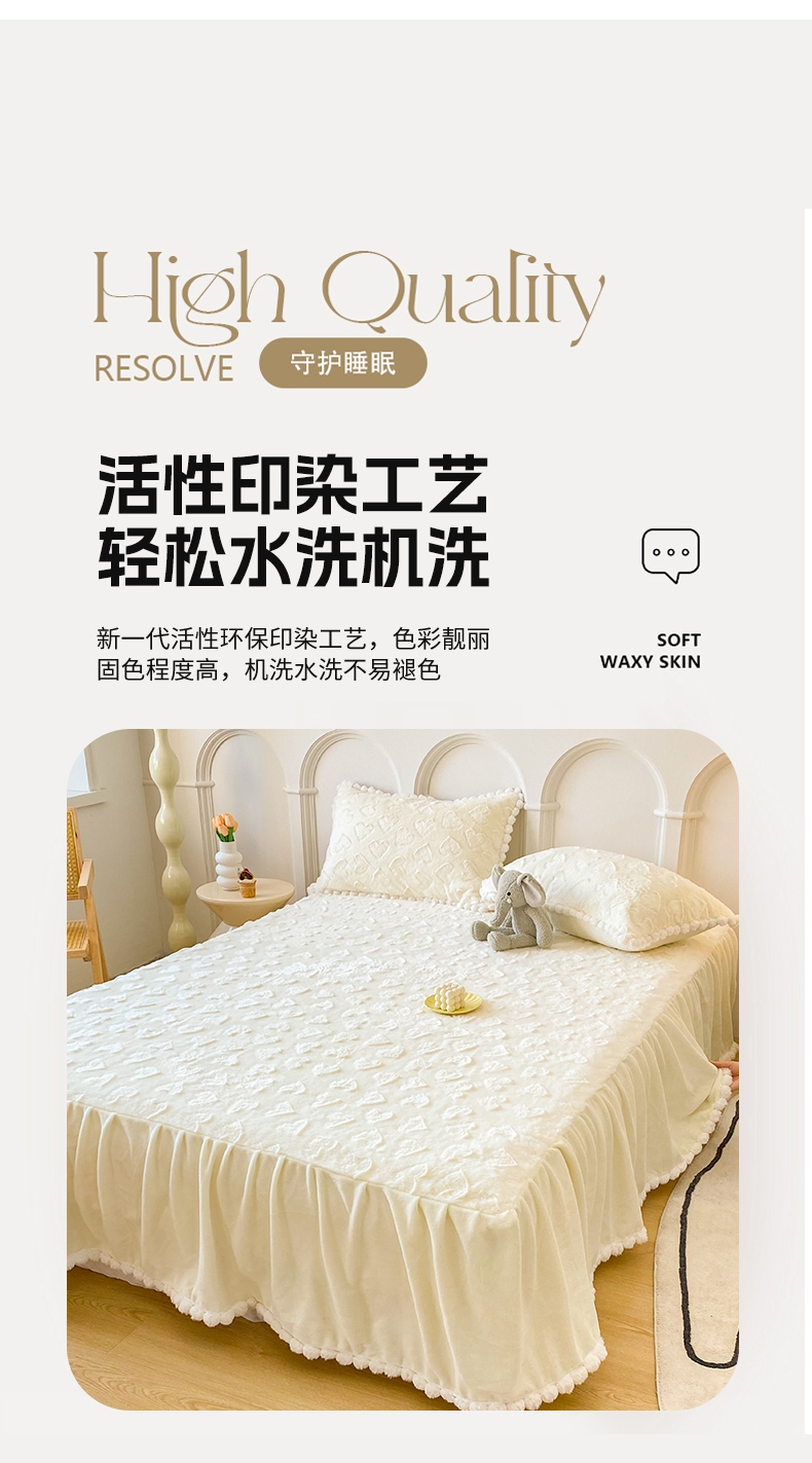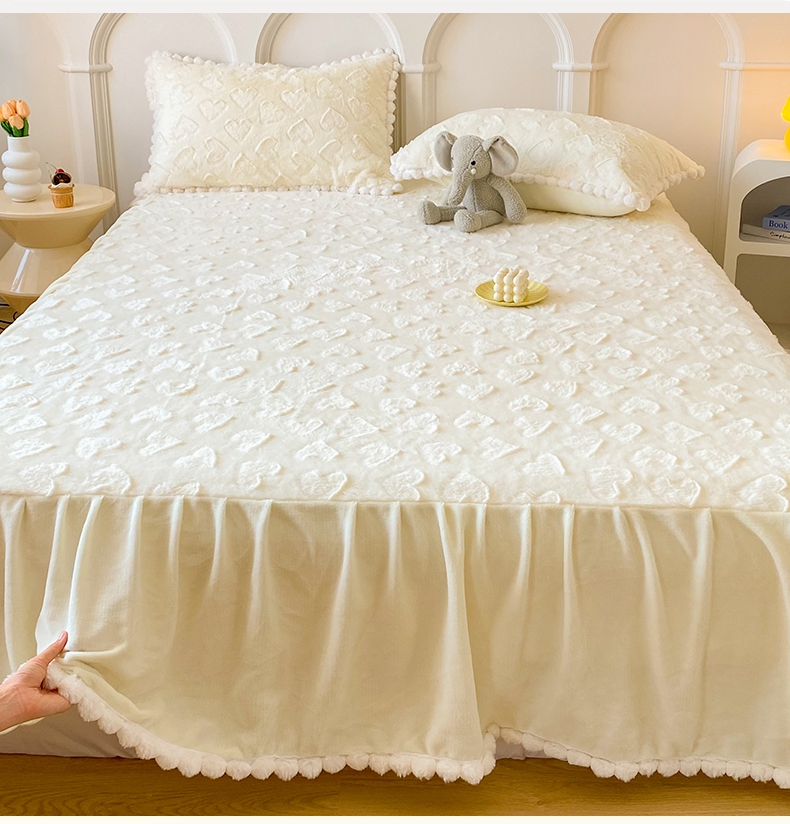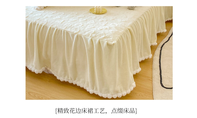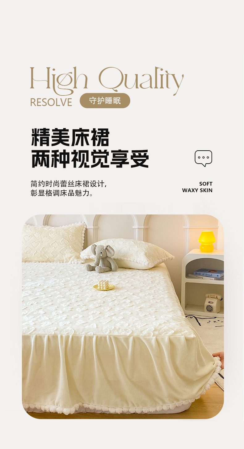 商品名称:禧缘家纺(原梦想家) 2024新款兔兔绒花边床裙 爱心白色
