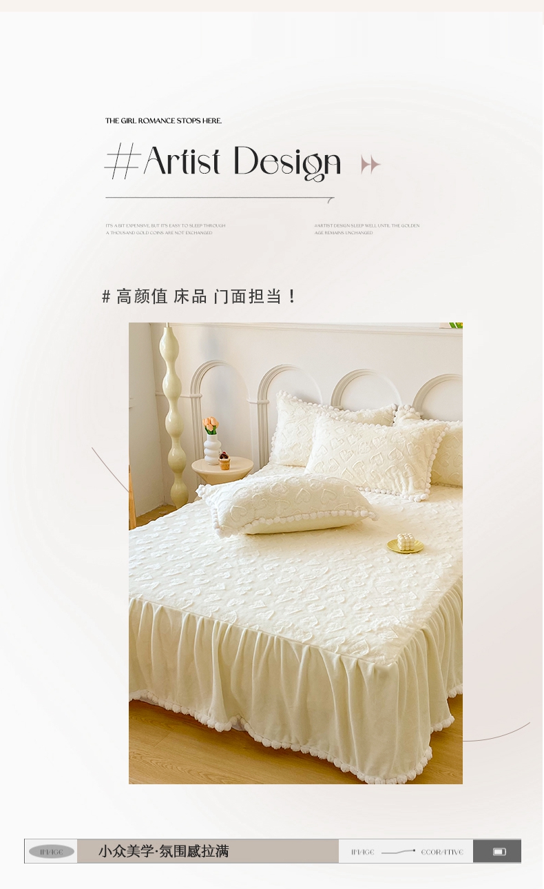 (总)禧缘家纺(原梦想家) 2025新款夹棉双层花边牛奶绒床笠三件套系列,布布乐园,步步生花,杏花微雨,雾都茶花,摩卡小镇,猫咪心事,浪漫花开,蓝铃风语,狗狗岛屿,落日云舒