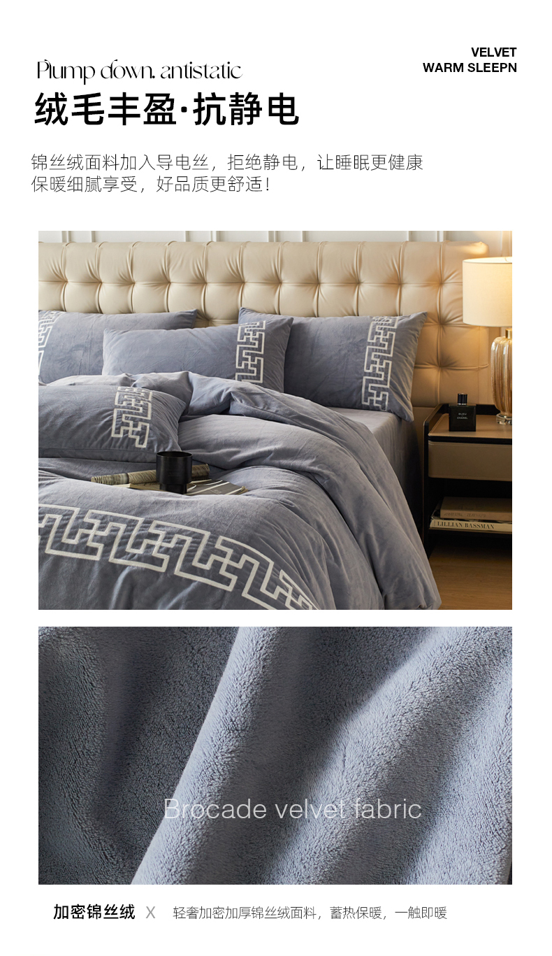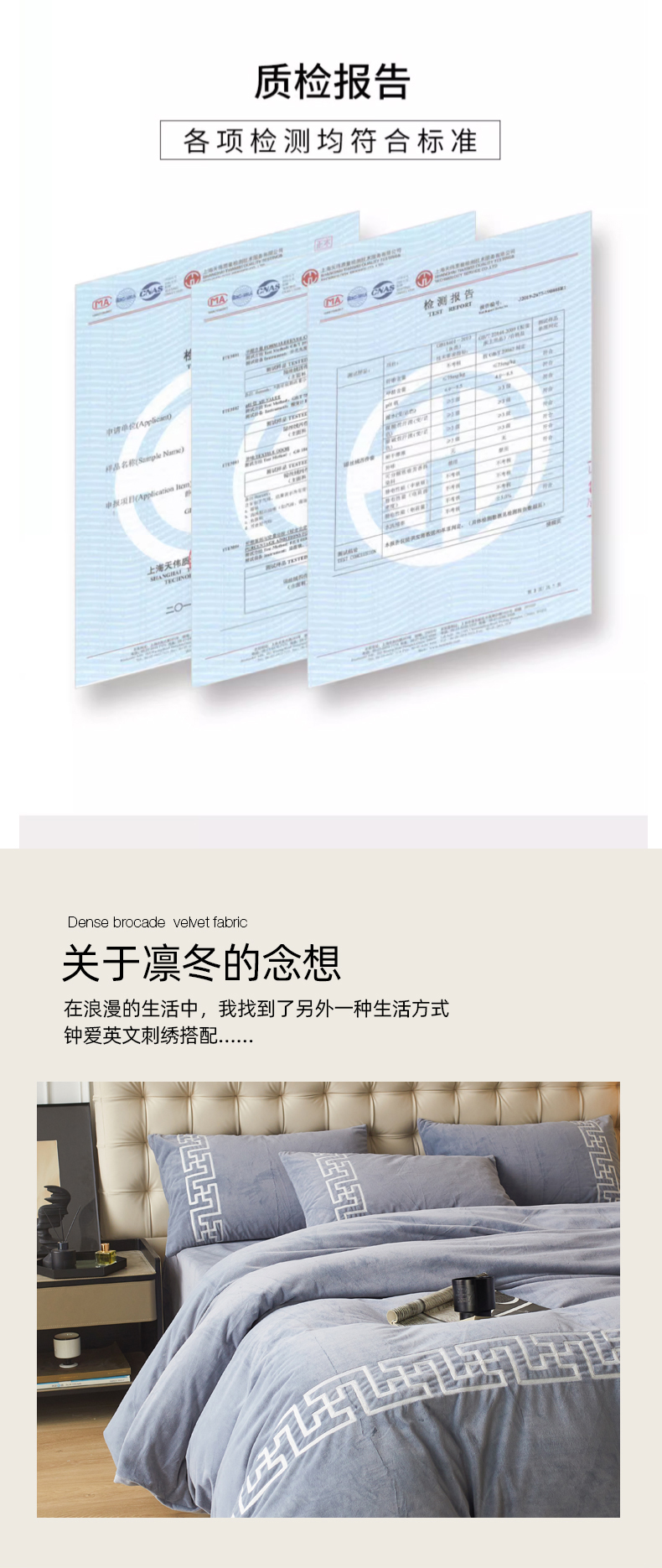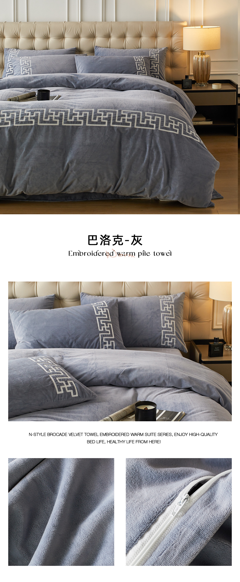 商品名称:2024新款锦丝绒美式毛巾绣四件套-巴洛克 巴洛克-灰