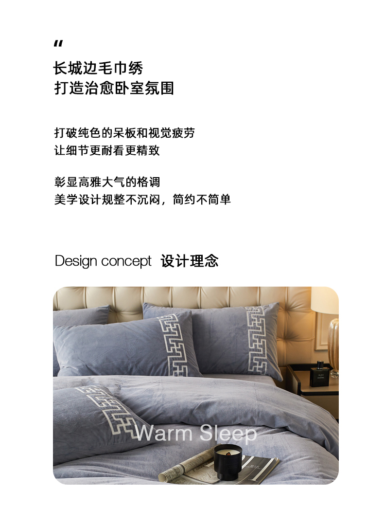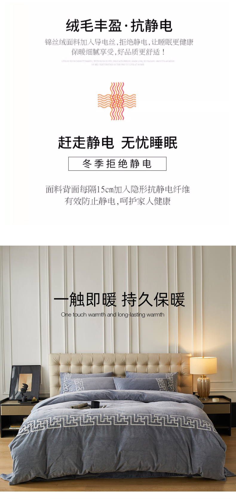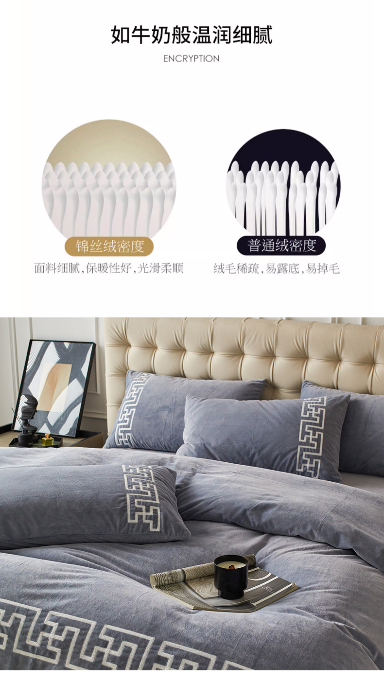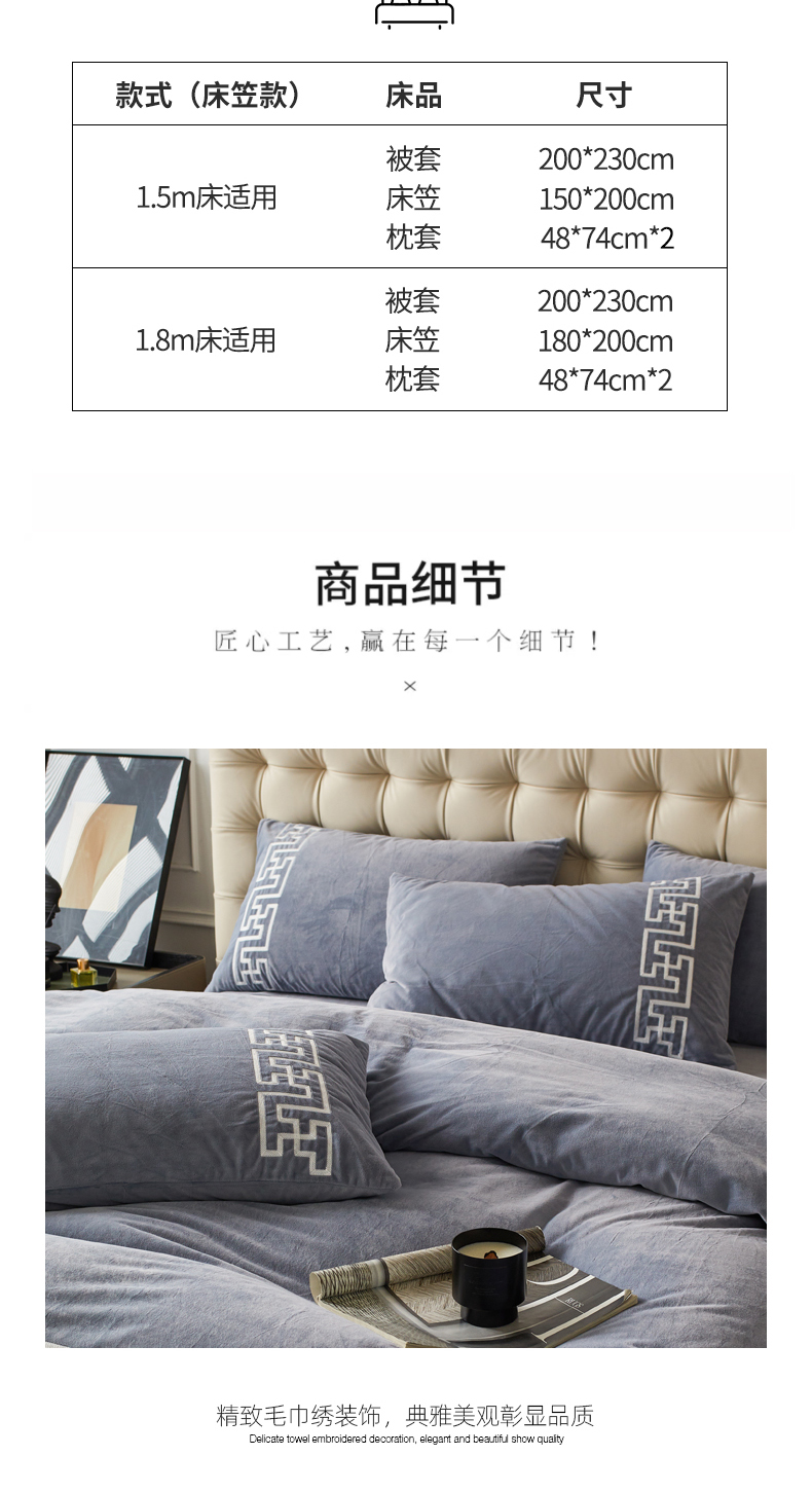 商品名称:2024新款锦丝绒美式毛巾绣四件套-巴洛克 巴洛克-灰