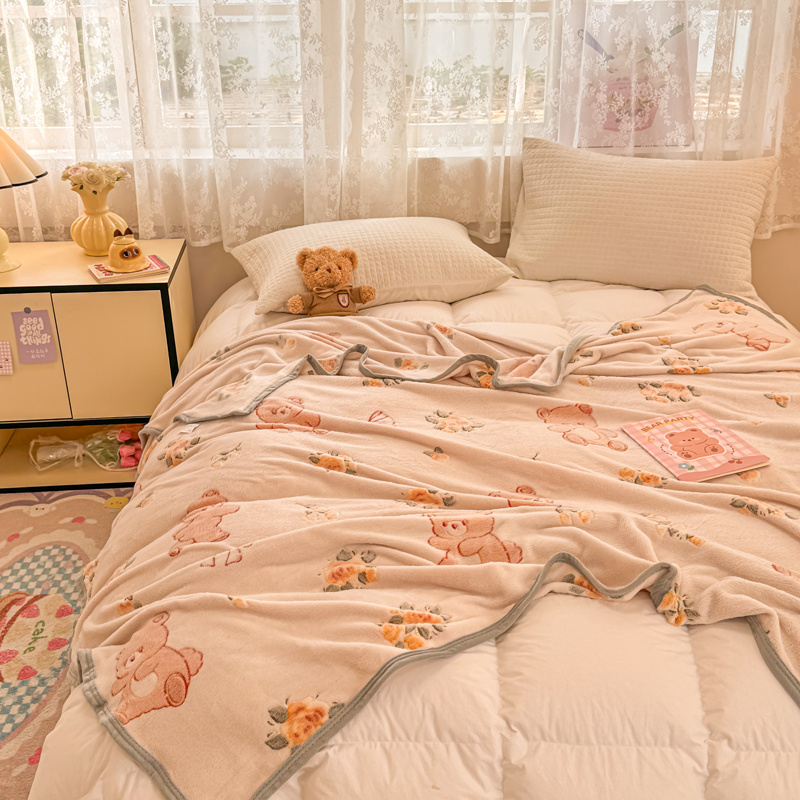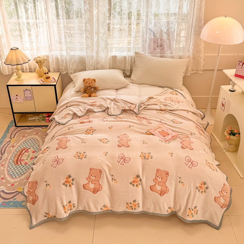 慕尚家纺 2025新款高克重加厚雪花绒毛毯毯子 糯米熊