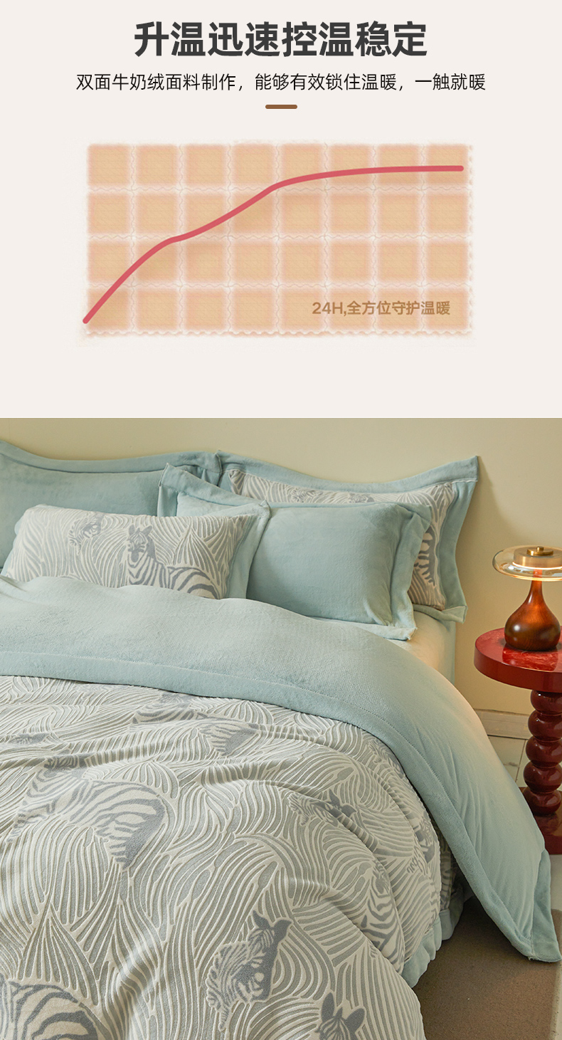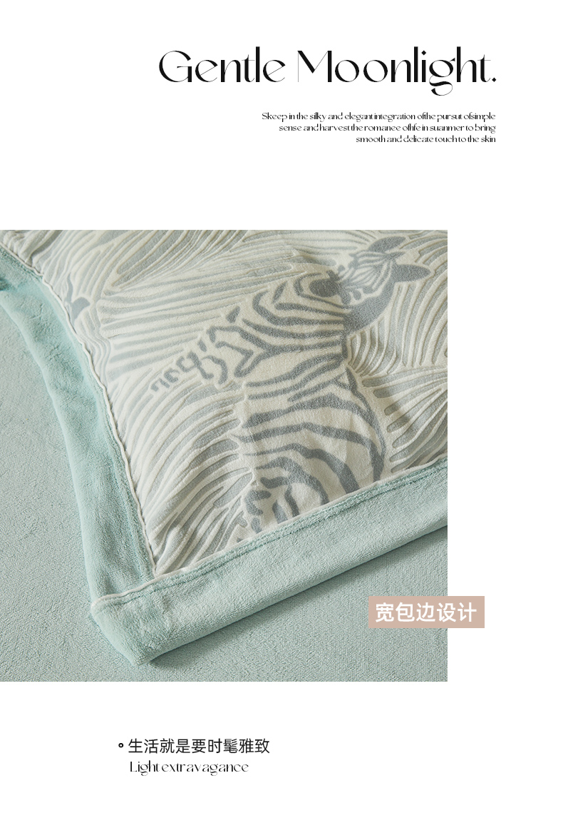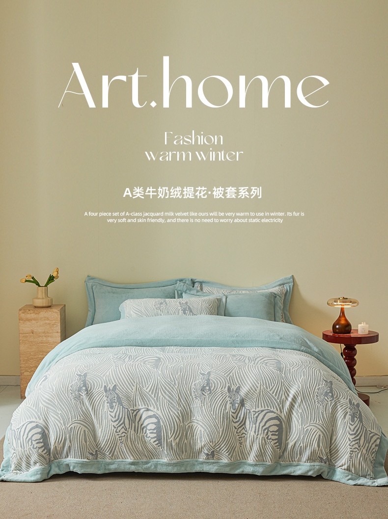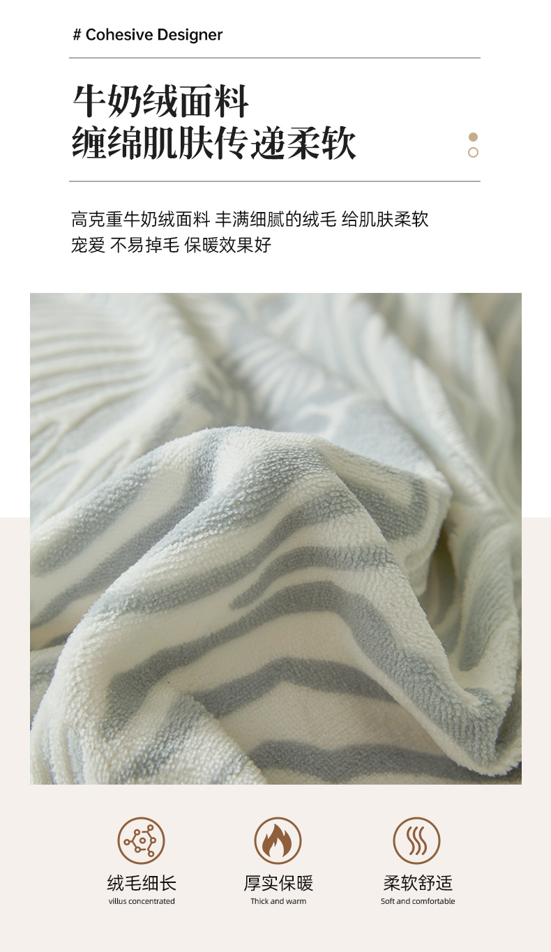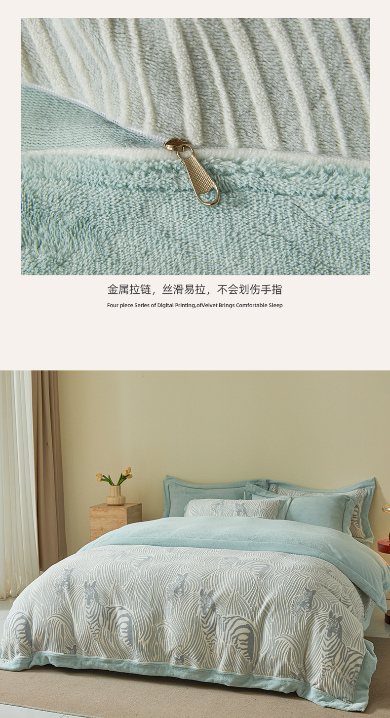 商品名称:全季家居 2024新款A类高克重5D立体浮雕宽边牛奶绒加厚保暖被套单件 斑马蓝