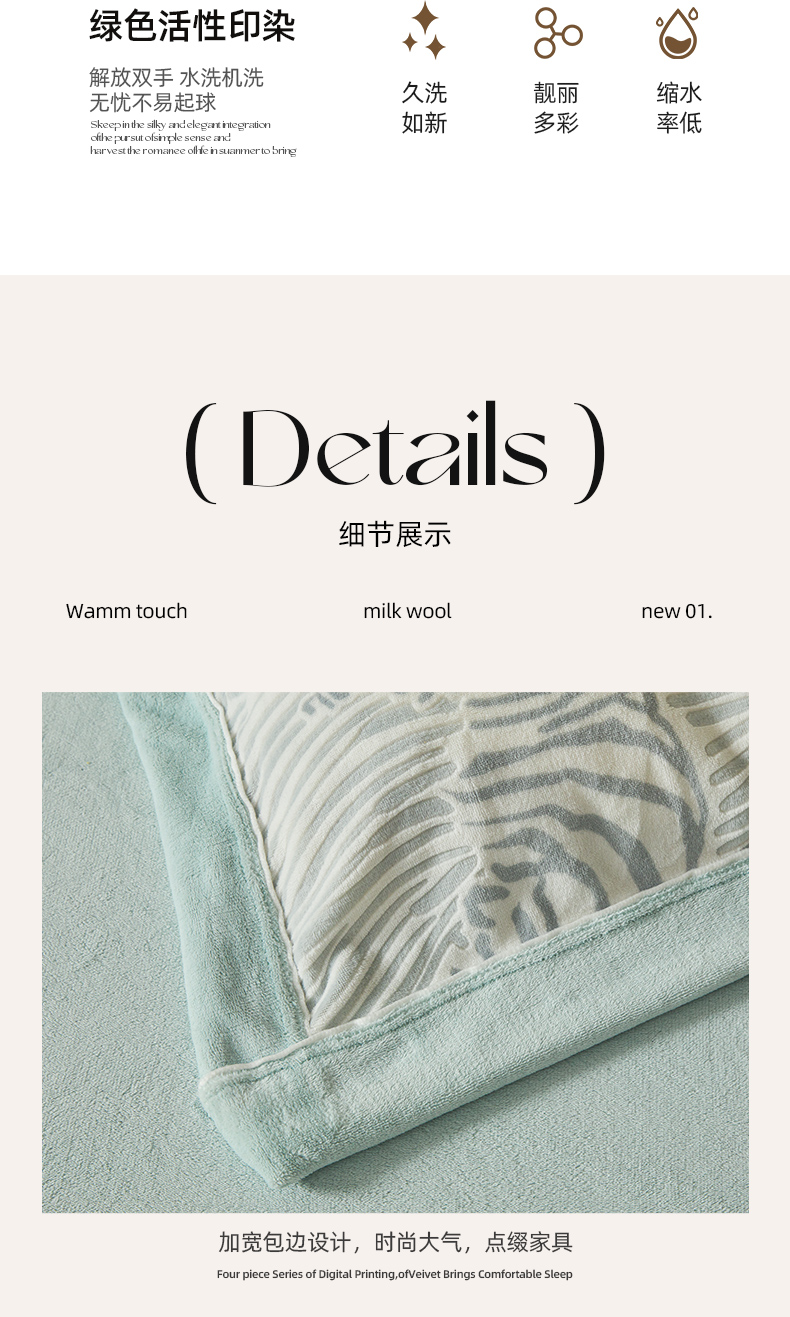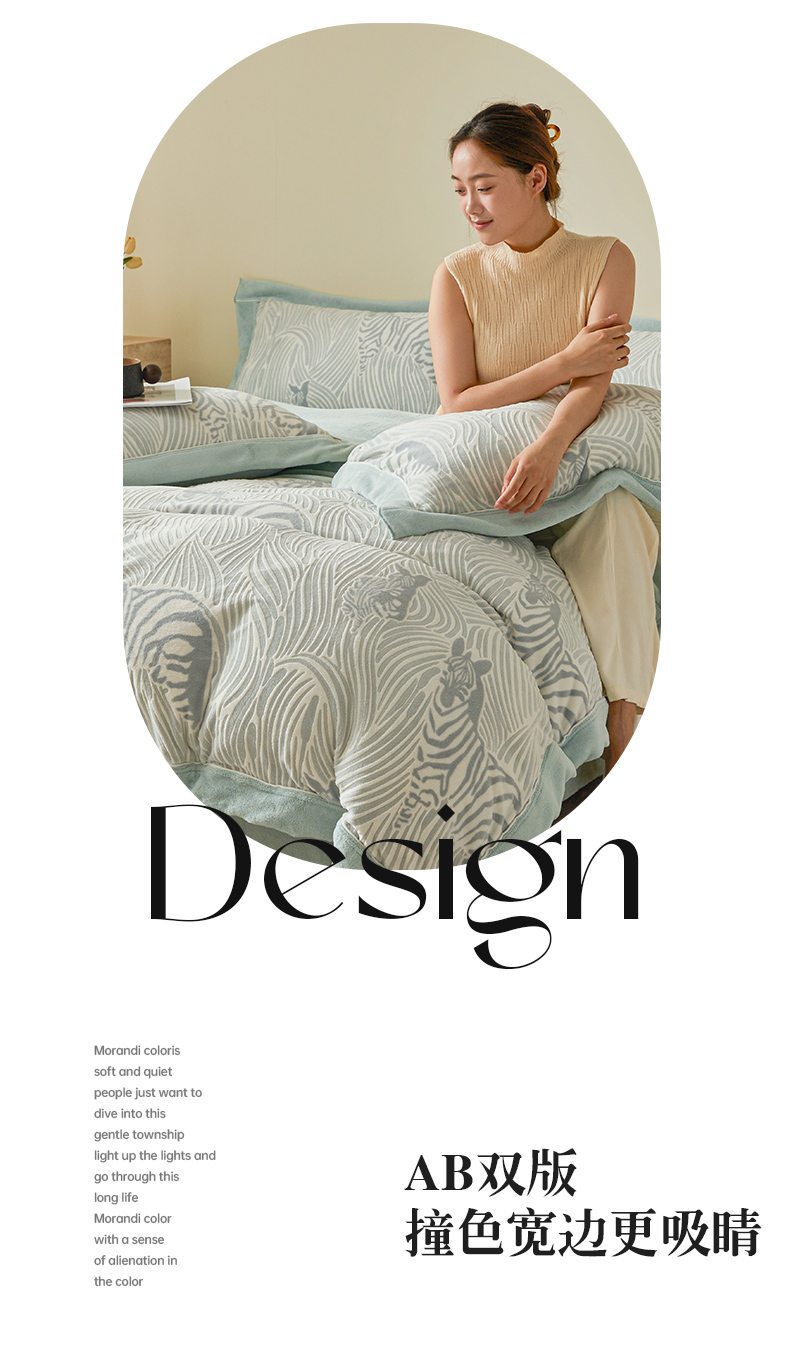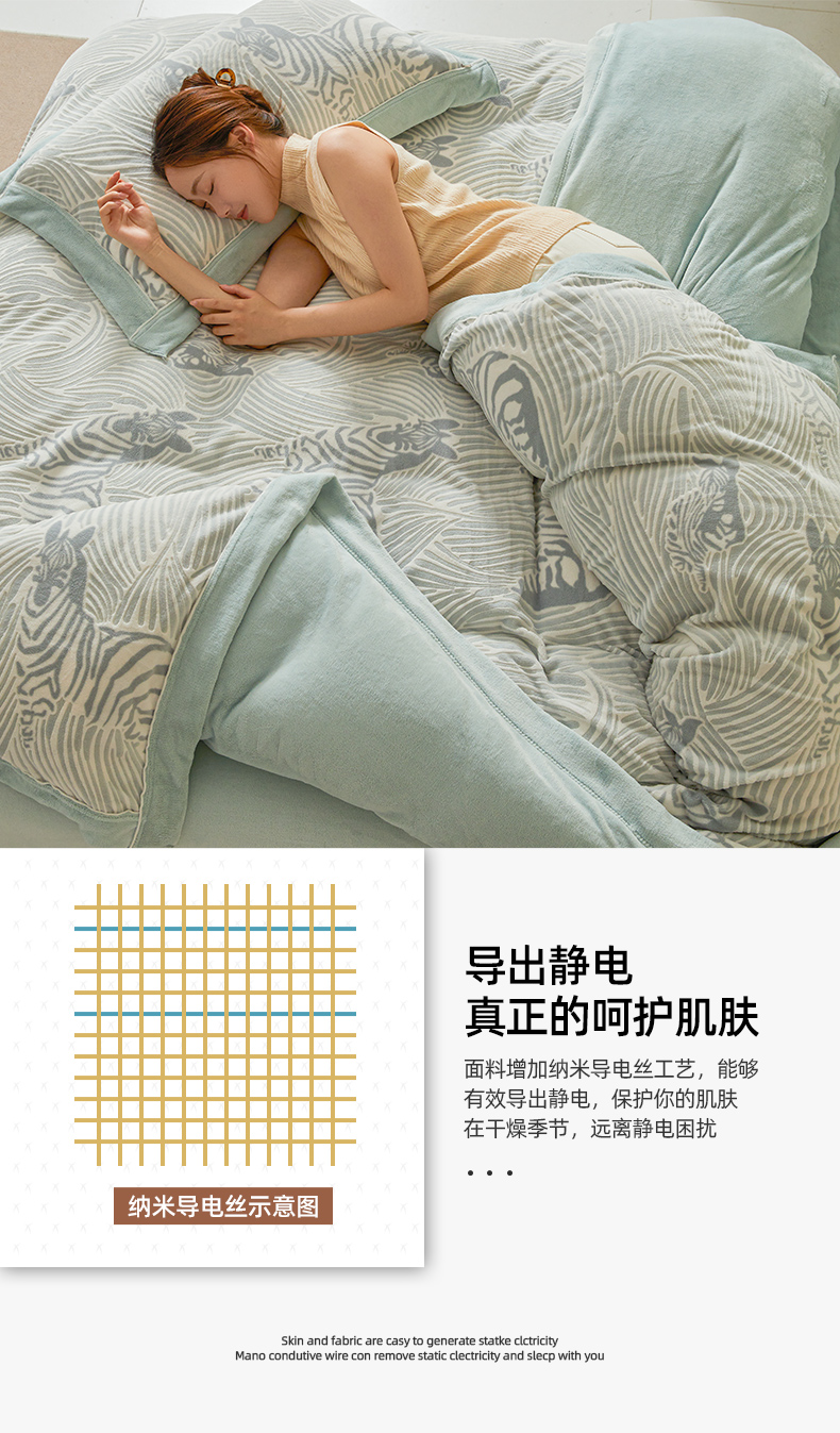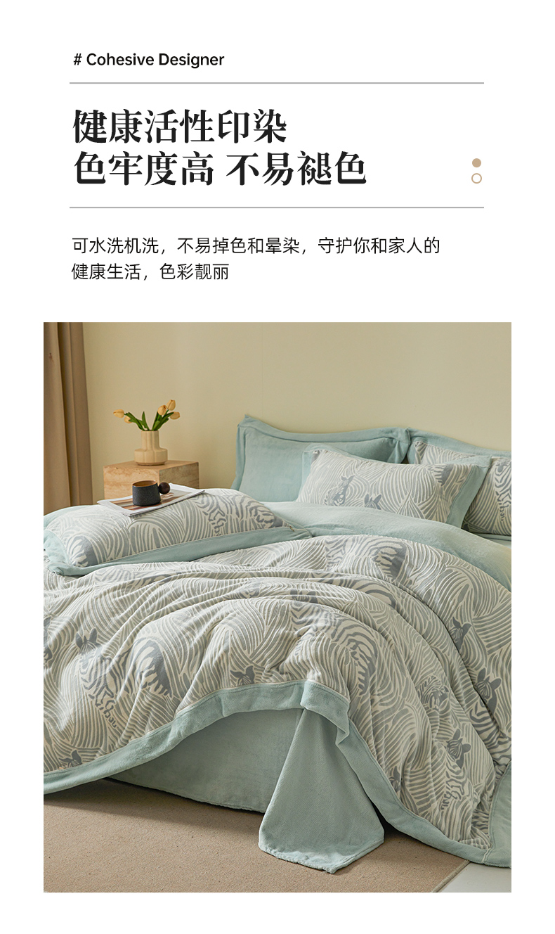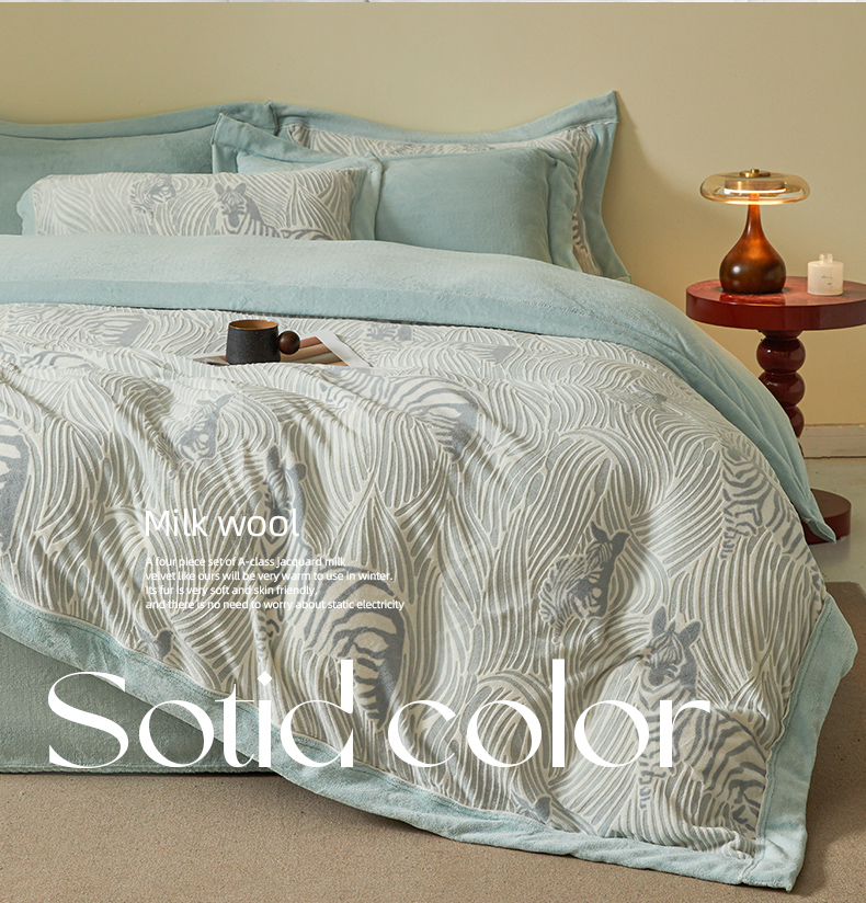 商品名称:全季家居 2024新款A类高克重5D立体浮雕宽边牛奶绒加厚保暖被套单件 斑马蓝