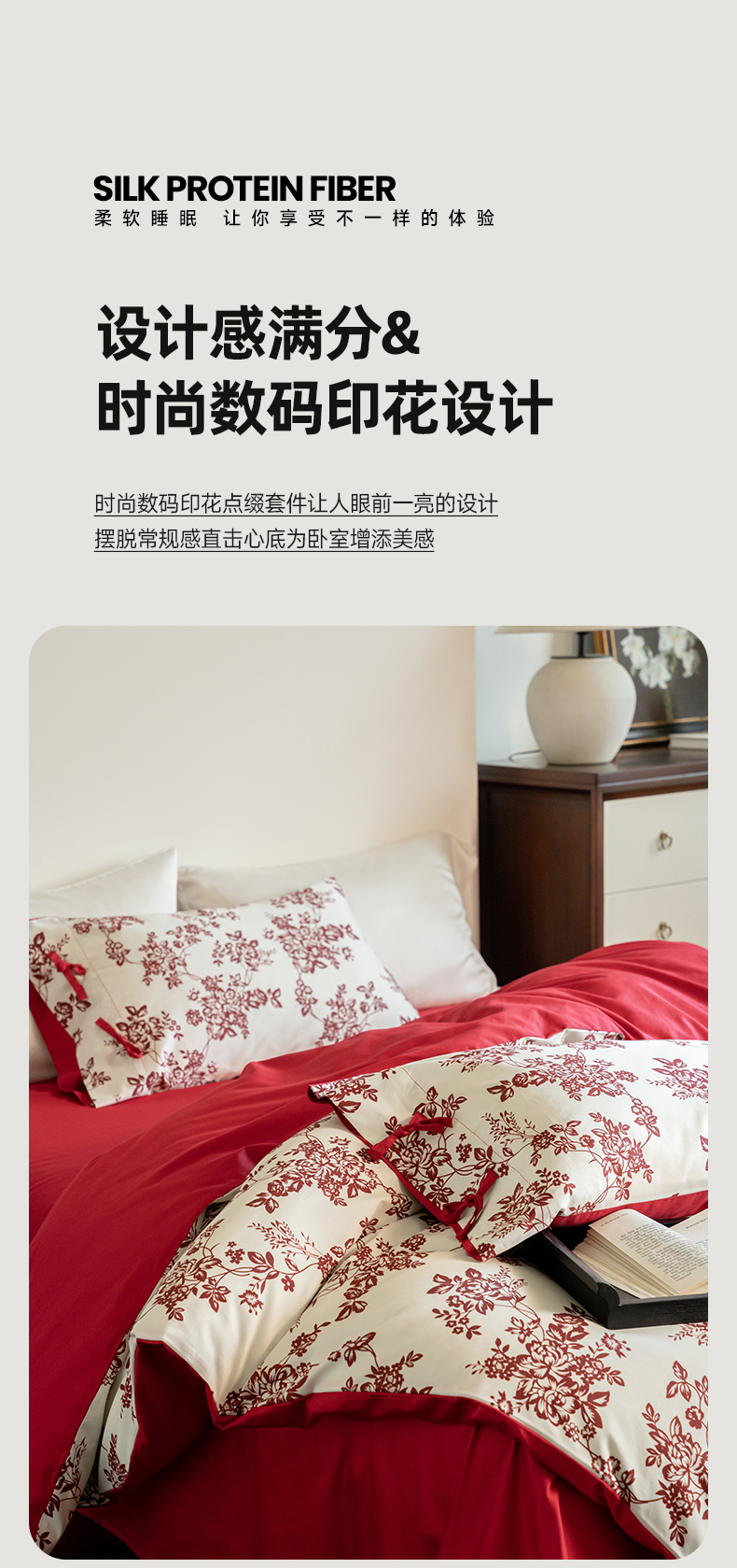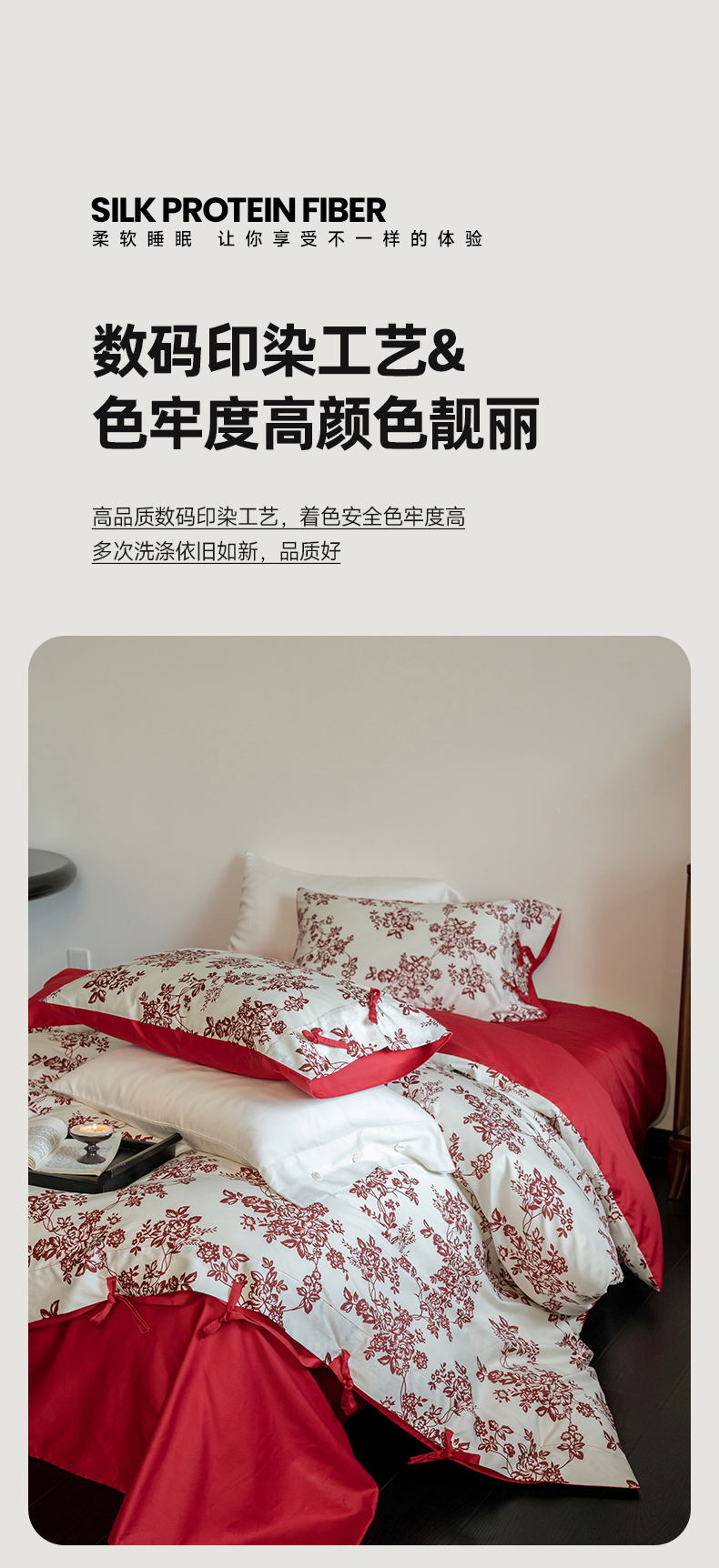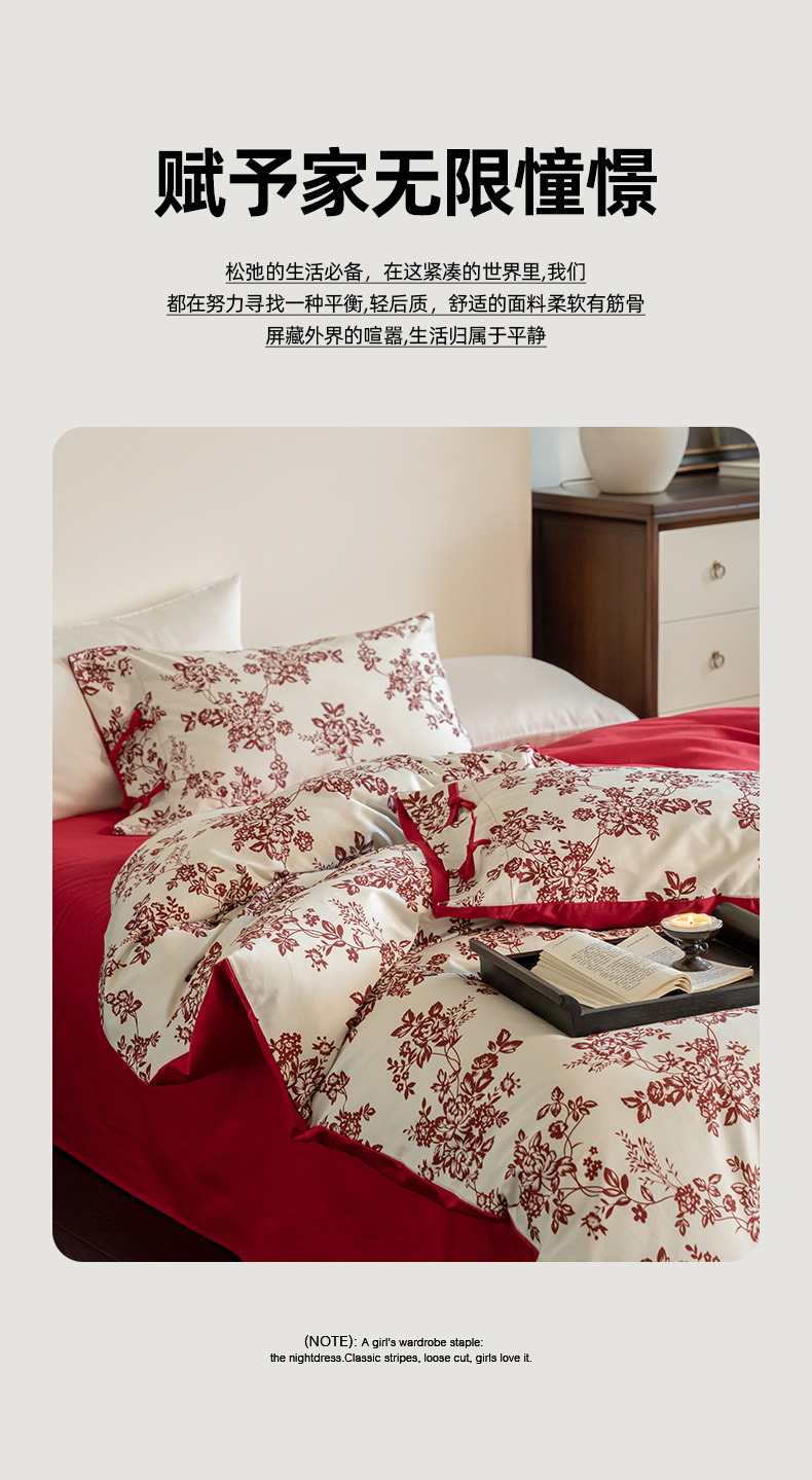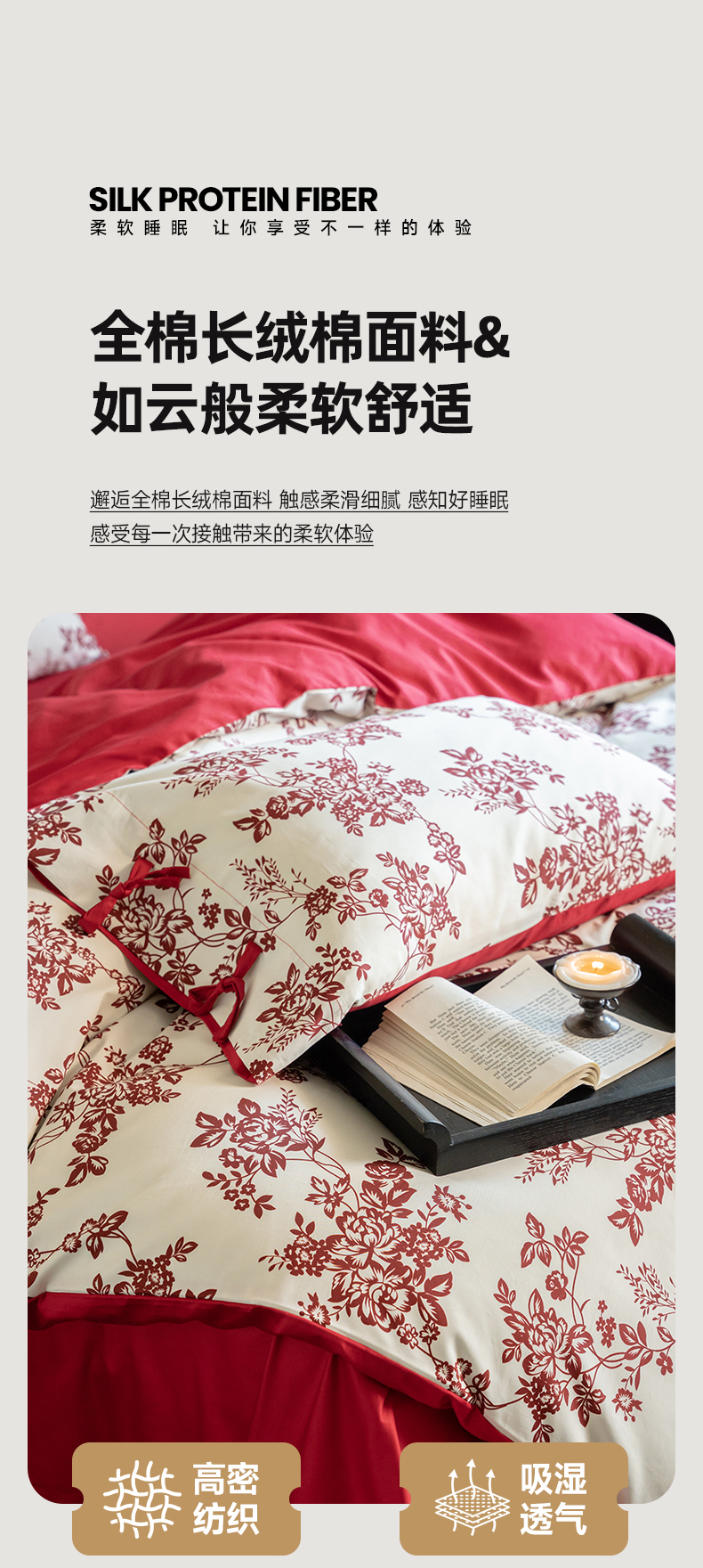 商品名称:华超针织 2024新款长绒棉5050数码印花四件套 木槿