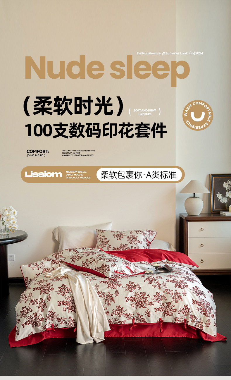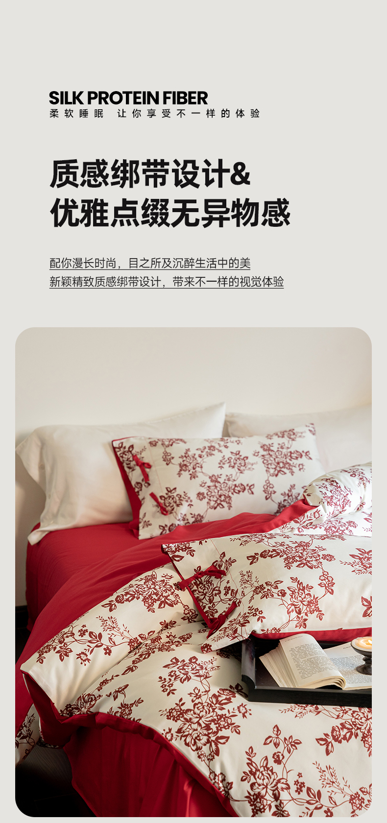 (总)华超针织 2025新款亲肤舒适全棉纯棉针织五件套四件套,奶糖+樱桃,杏粉+花田,杏灰+玫瑰