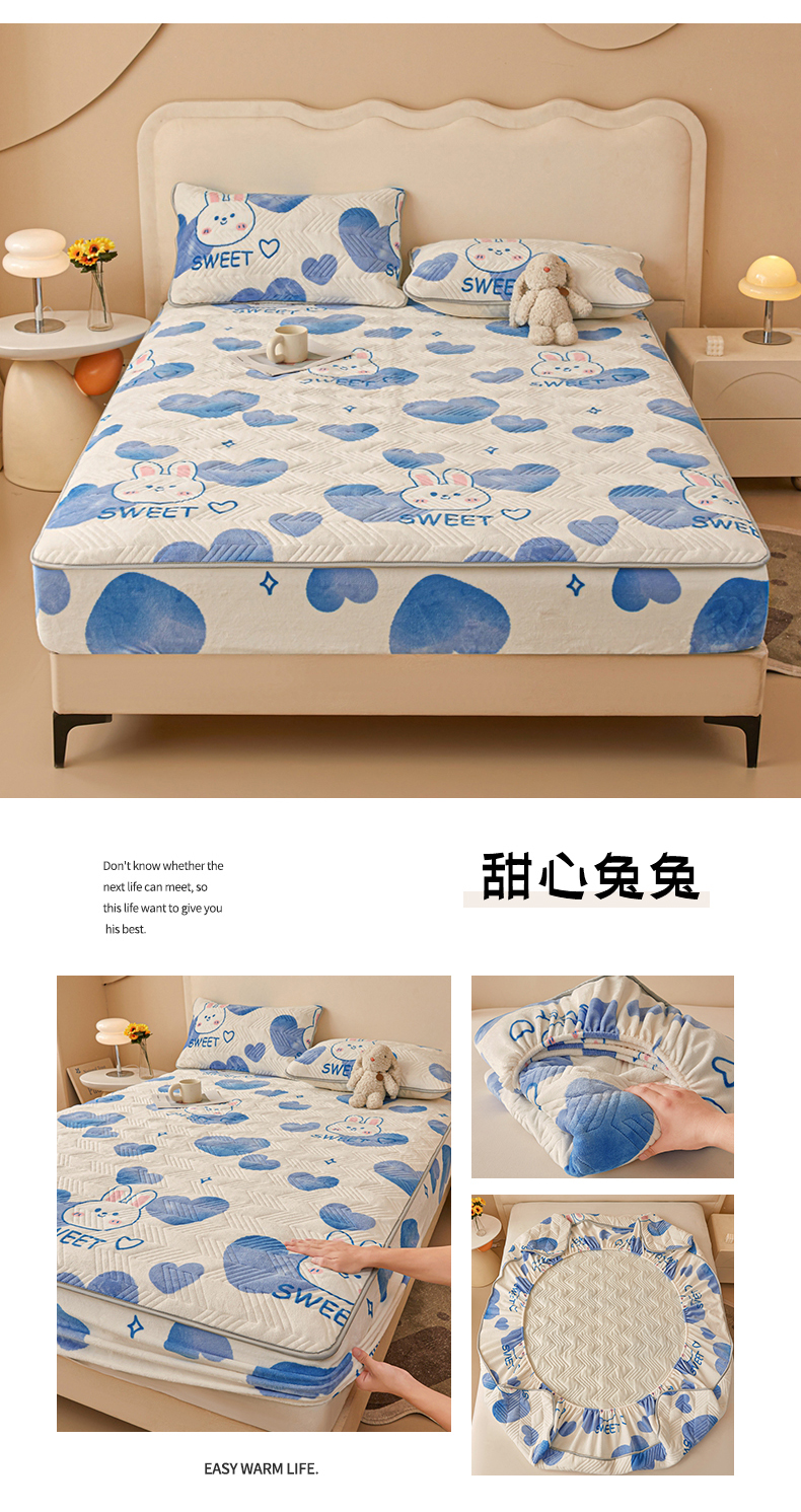 (总)湘之帛 2024新款牛奶绒印花夹棉床笠