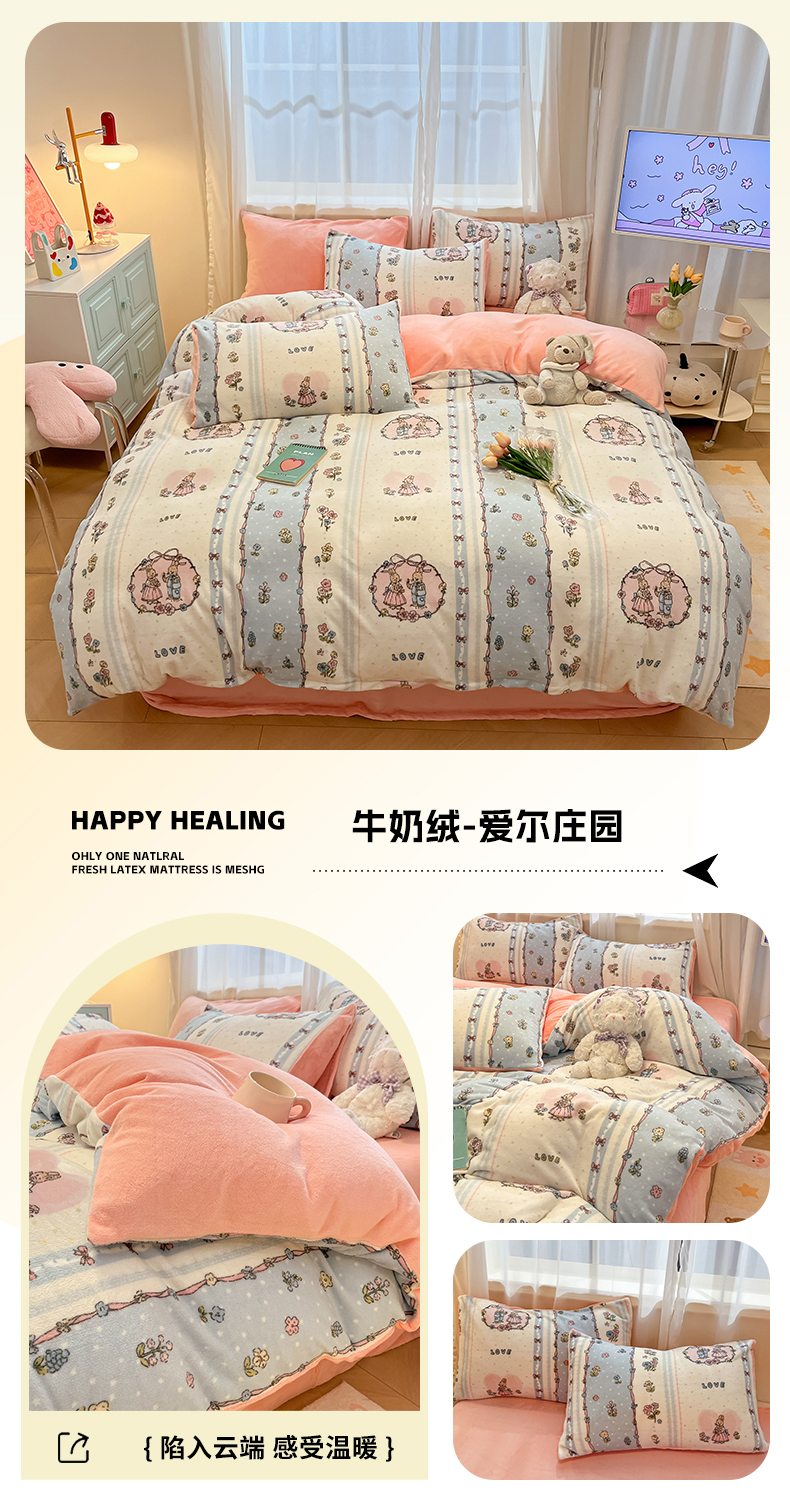 (总)海岛哥哥 2025新款ins风小清新印花牛奶绒四件套,牛奶绒-爱尔庄园,牛奶绒-彩虹小狗,牛奶绒-黛菲,牛奶绒-蛋糕娃娃,牛奶绒-蝶舞,牛奶绒-复古小兔,牛奶绒-快乐元素,牛奶绒-铃兰花,牛奶绒-俏皮小狗,牛奶绒-小煤球