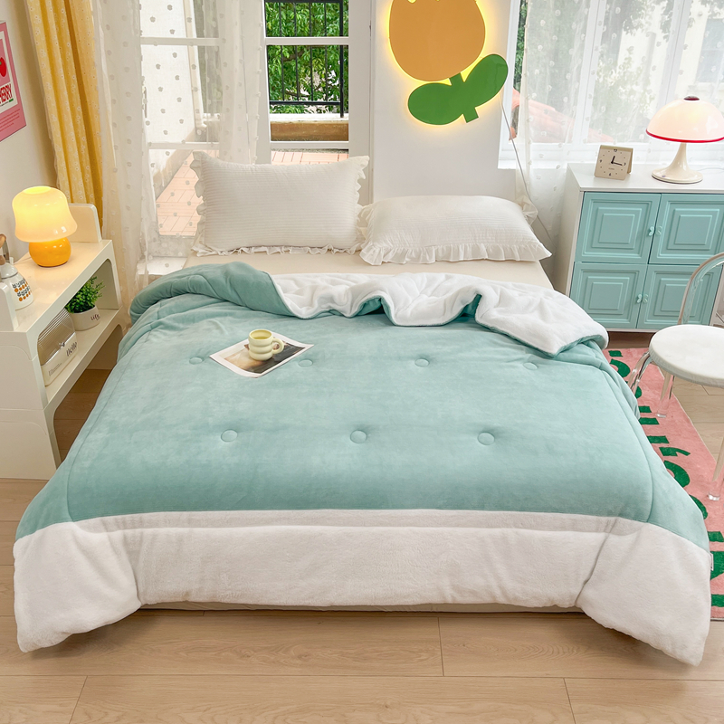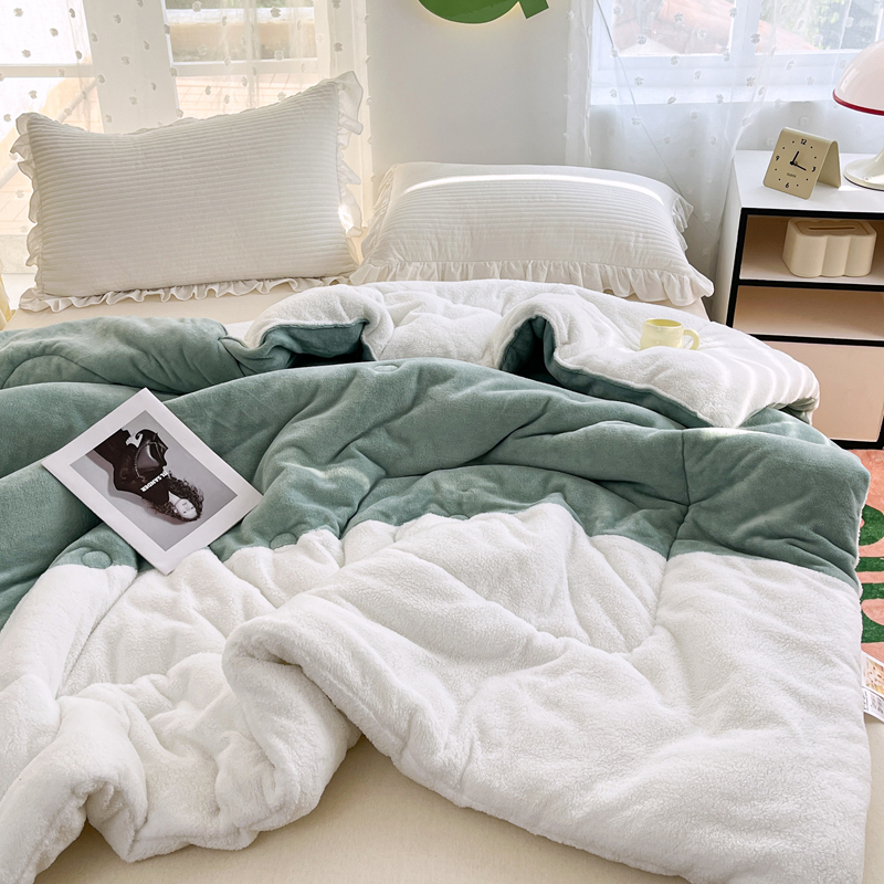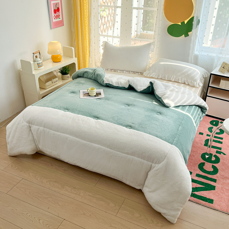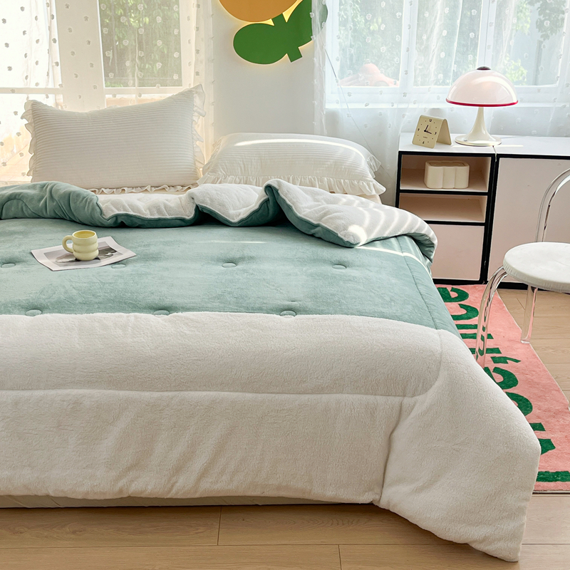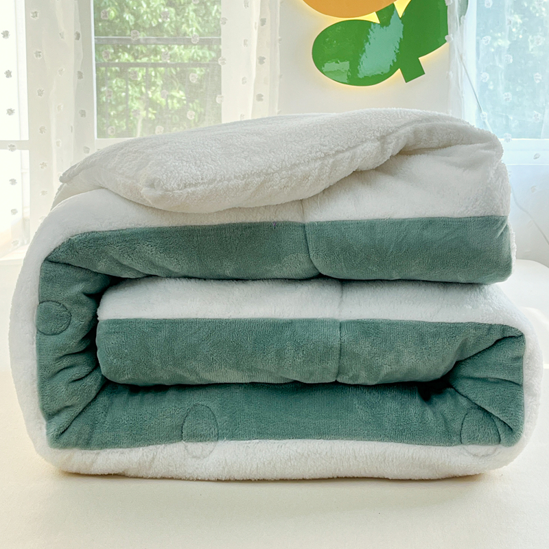 • 91家纺网 家纺一手货源 找家纺 默忆 2025新款牛奶绒冬被羊羔绒冬被被子被芯春秋被 绿白