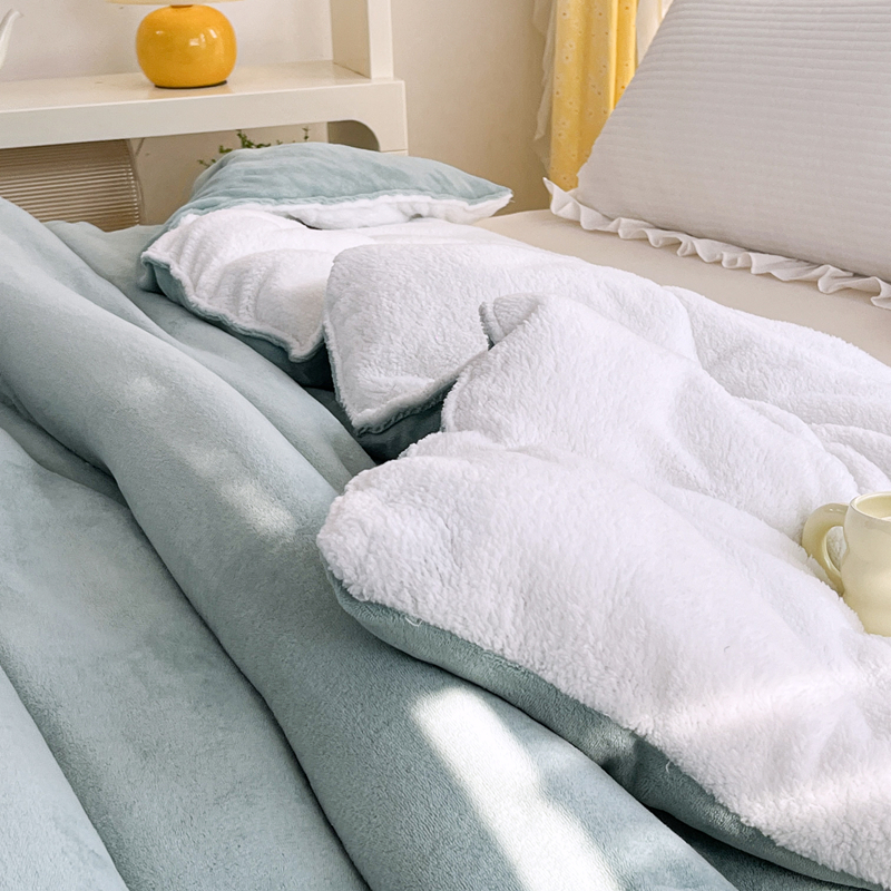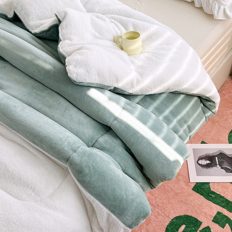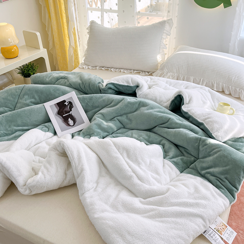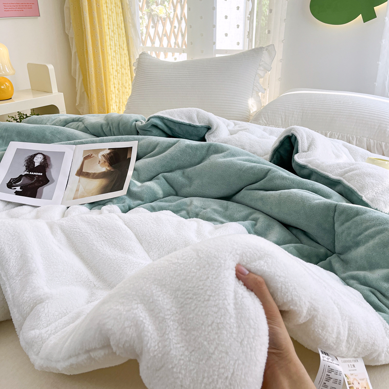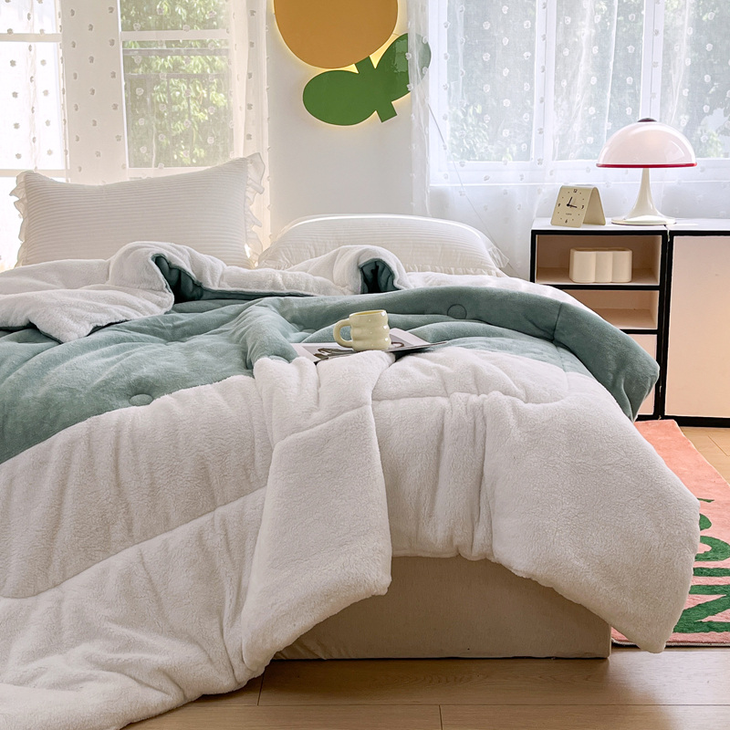 • 91家纺网 家纺一手货源 找家纺 默忆 2025新款牛奶绒冬被羊羔绒冬被被子被芯春秋被 绿白